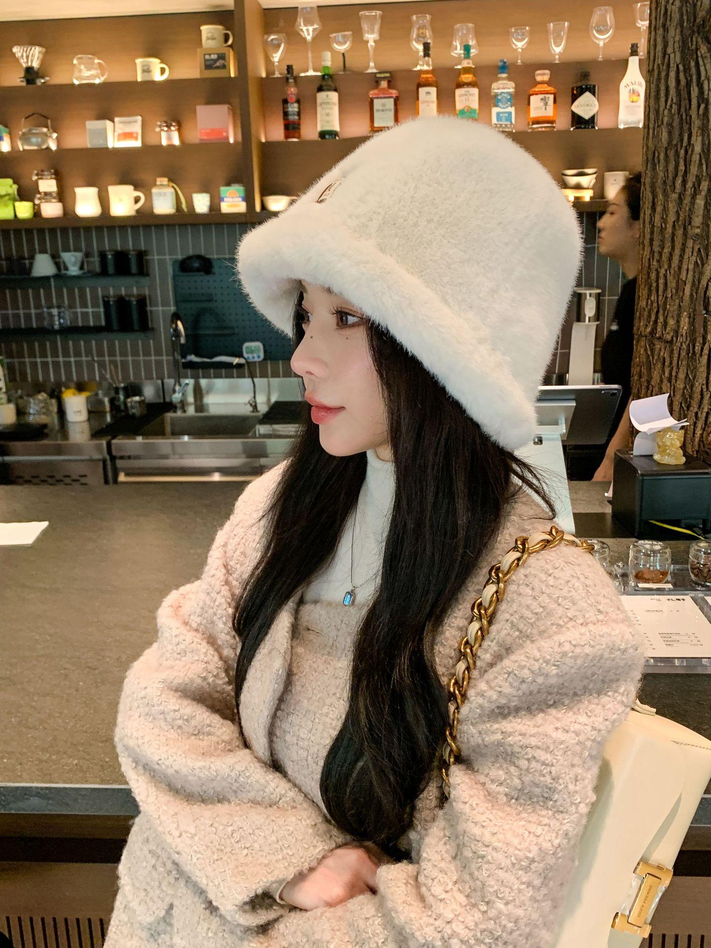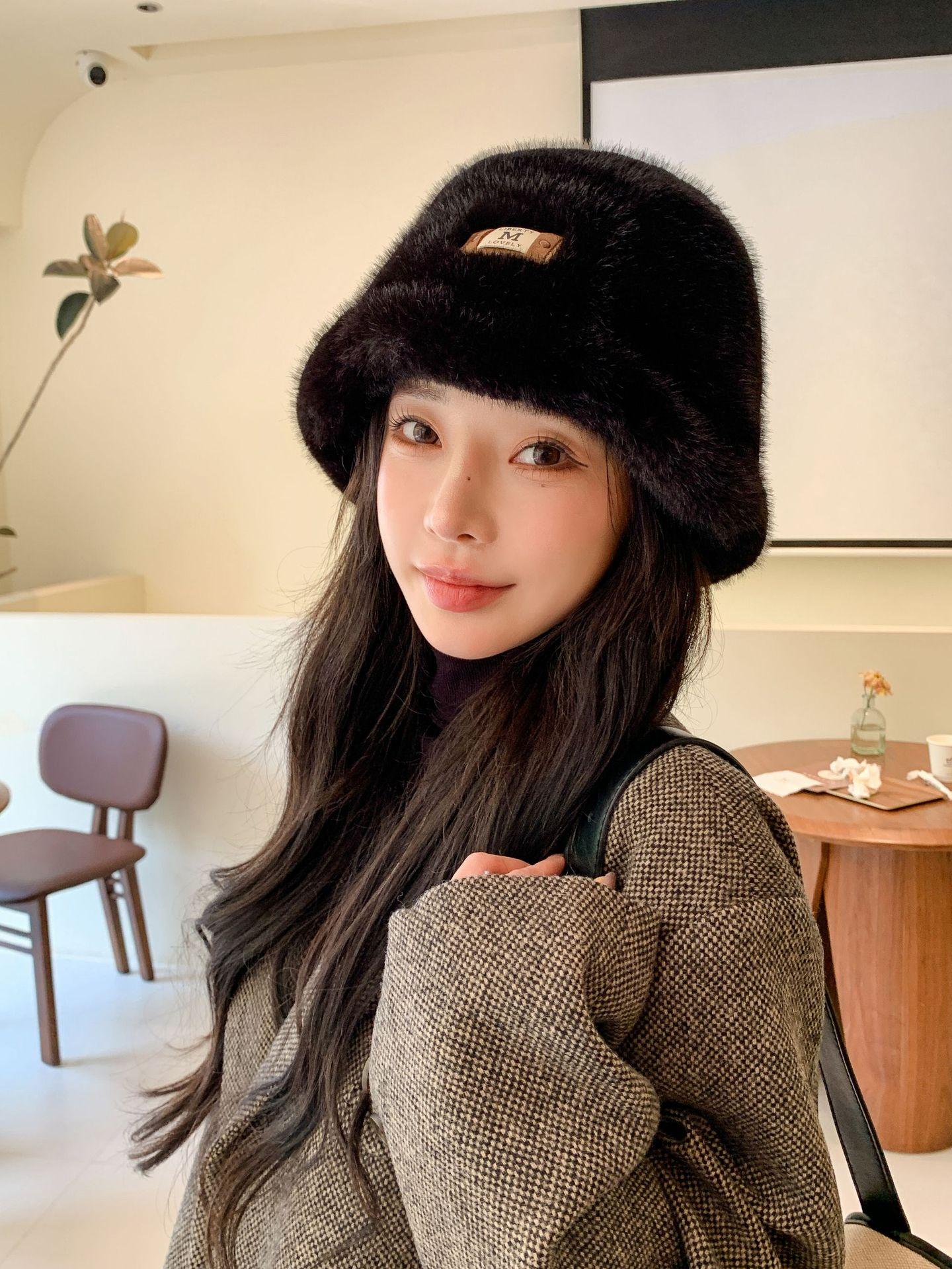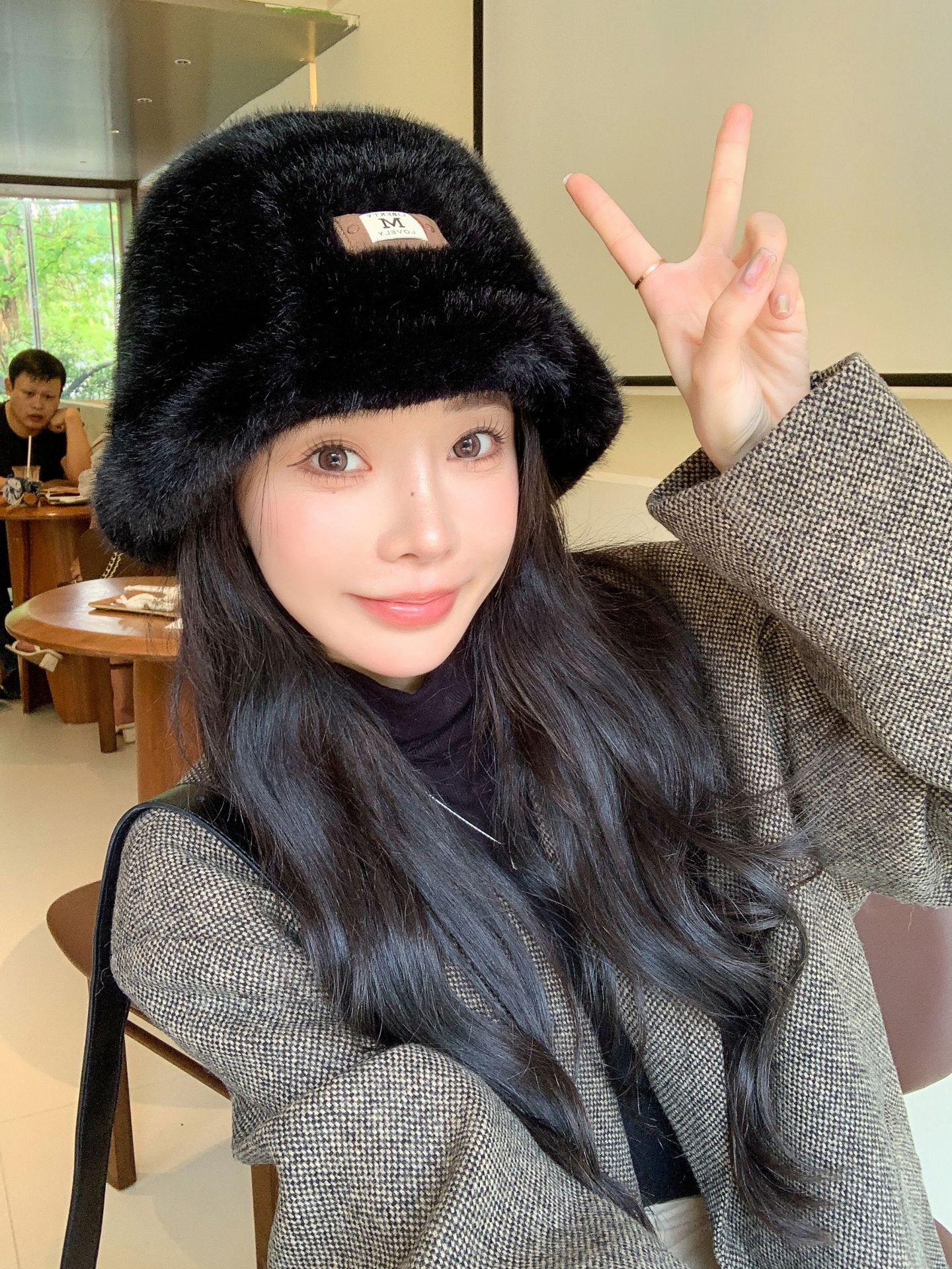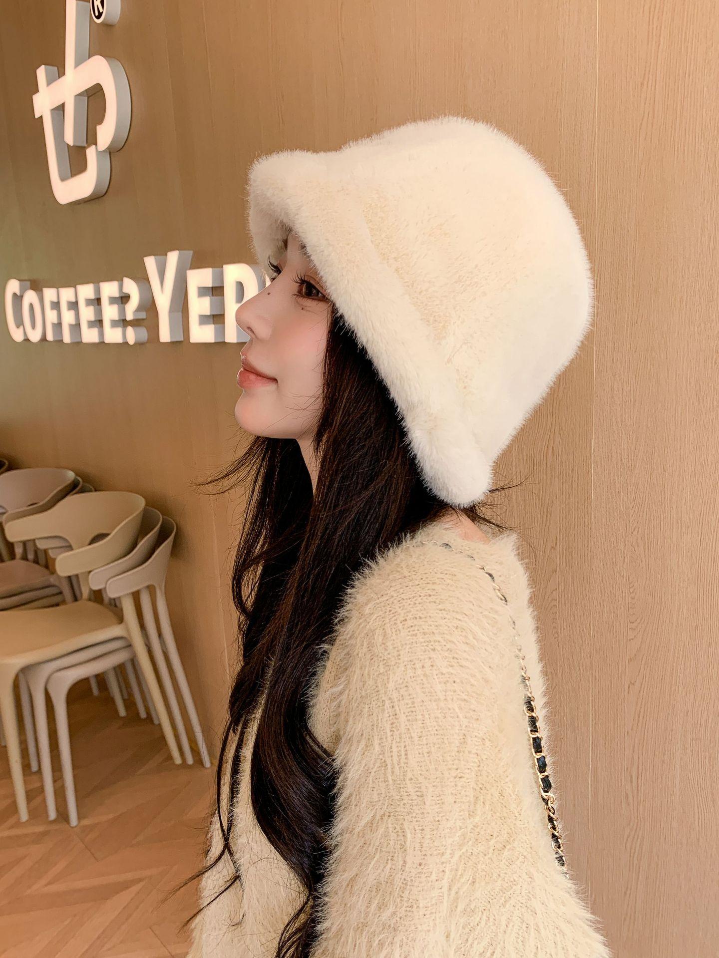 Nuevo Sombrero de Pescador Peludo Combinable Estilo Coreano Otoño e Invierno para Mujer, Moderno, Elegante, Cálido, a Prueba de Frío, Cubre la Cara, con Etiqueta de Tela Pequeña, Sombrero de Cubeta