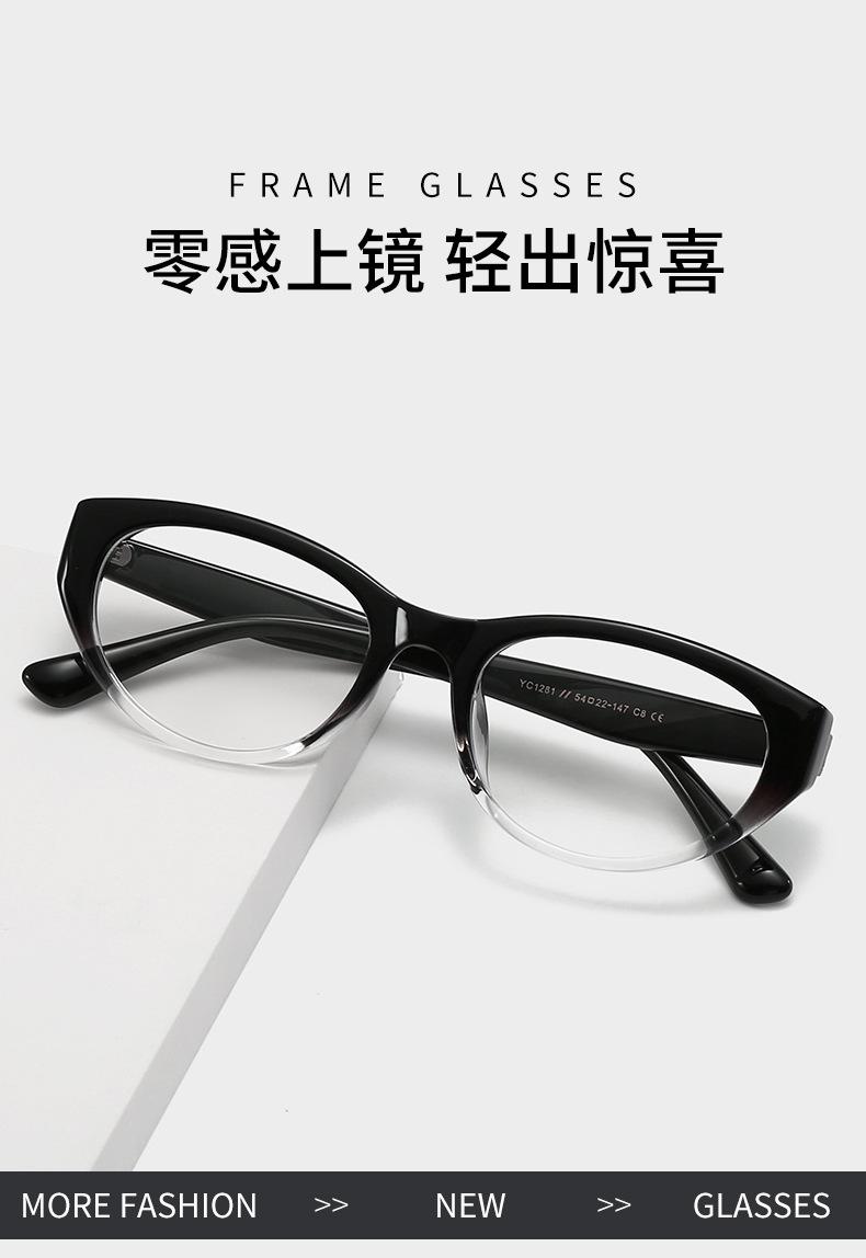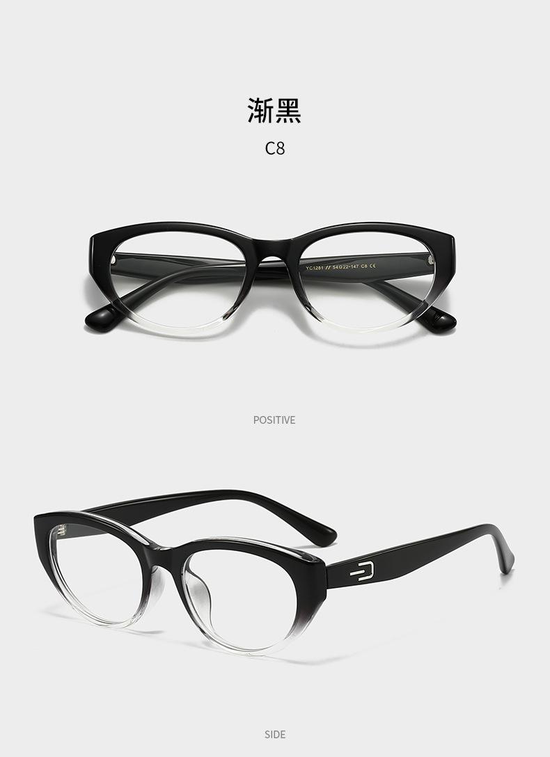 Estilo K de Gafas Ojo de Gato Degradadas para Mujer, Montura Pequeña Lisa Reductora de Edad Estilo Ins, Se Pueden Equipar con Montura para Gafas Miopes 1281