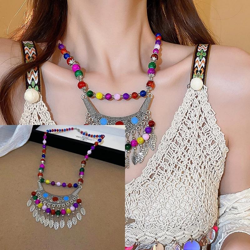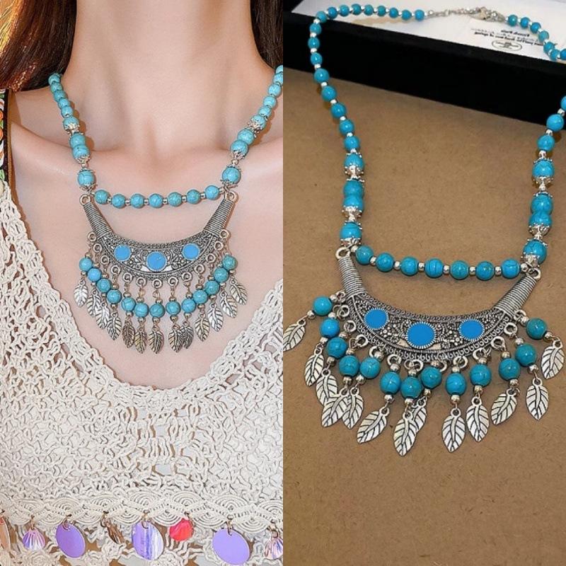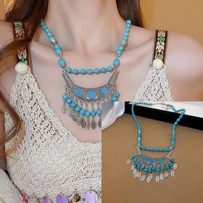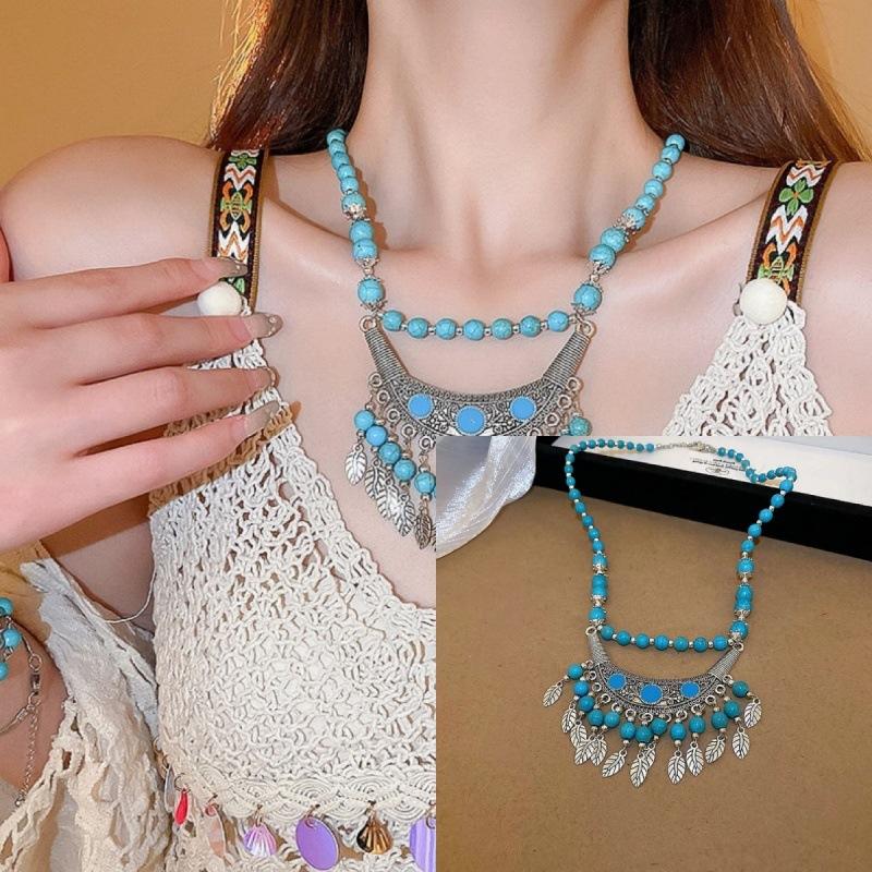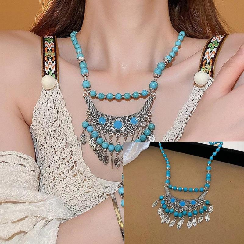 Nuevo collar con borlas de hoja en forma de media luna, estilo étnico exótico retro, para mujer, con diseño de nicho de temperamento a la moda, con sentido de cadena de clavícula.