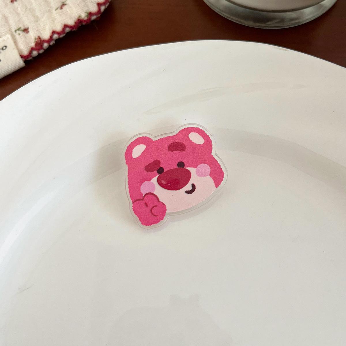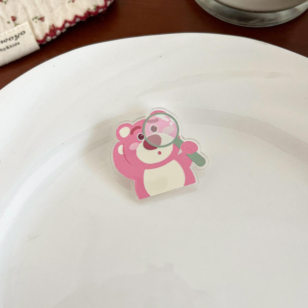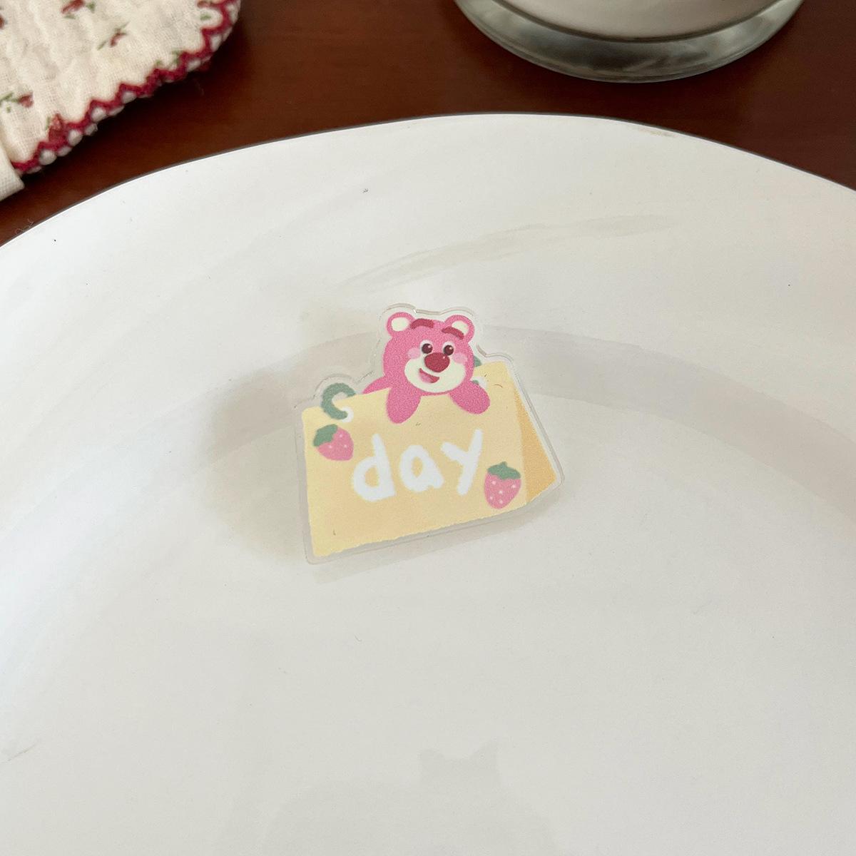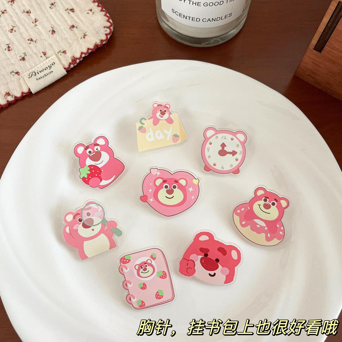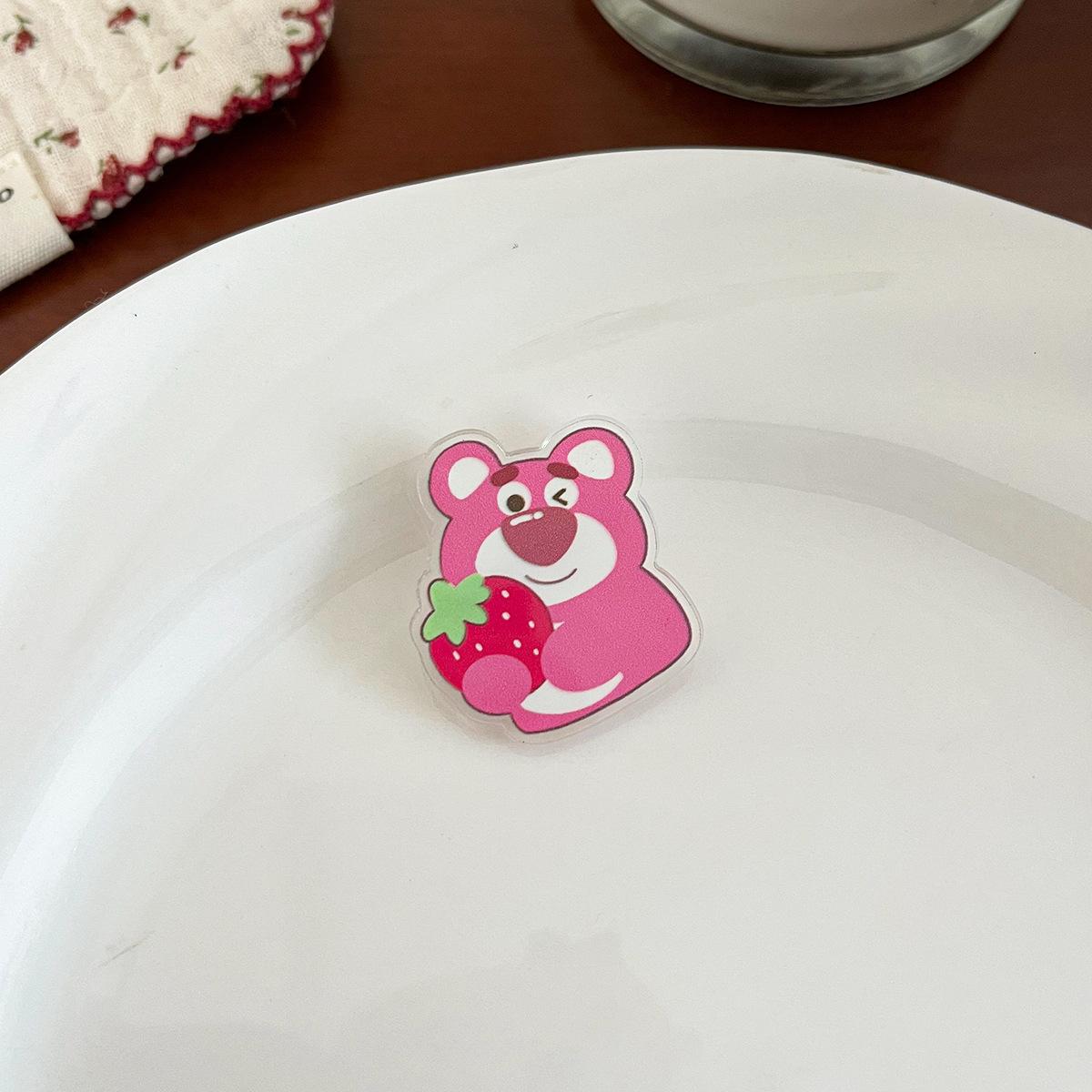 Broche Oso Fresa Animal Lindo Dibujo Animado Pin Acrílico Insignia Colgante Baratija Regalo Puesto Callejero