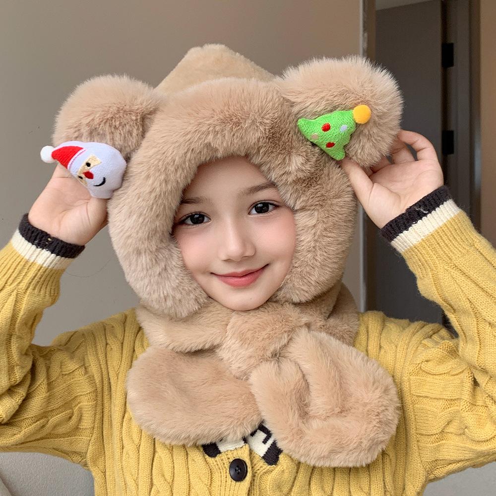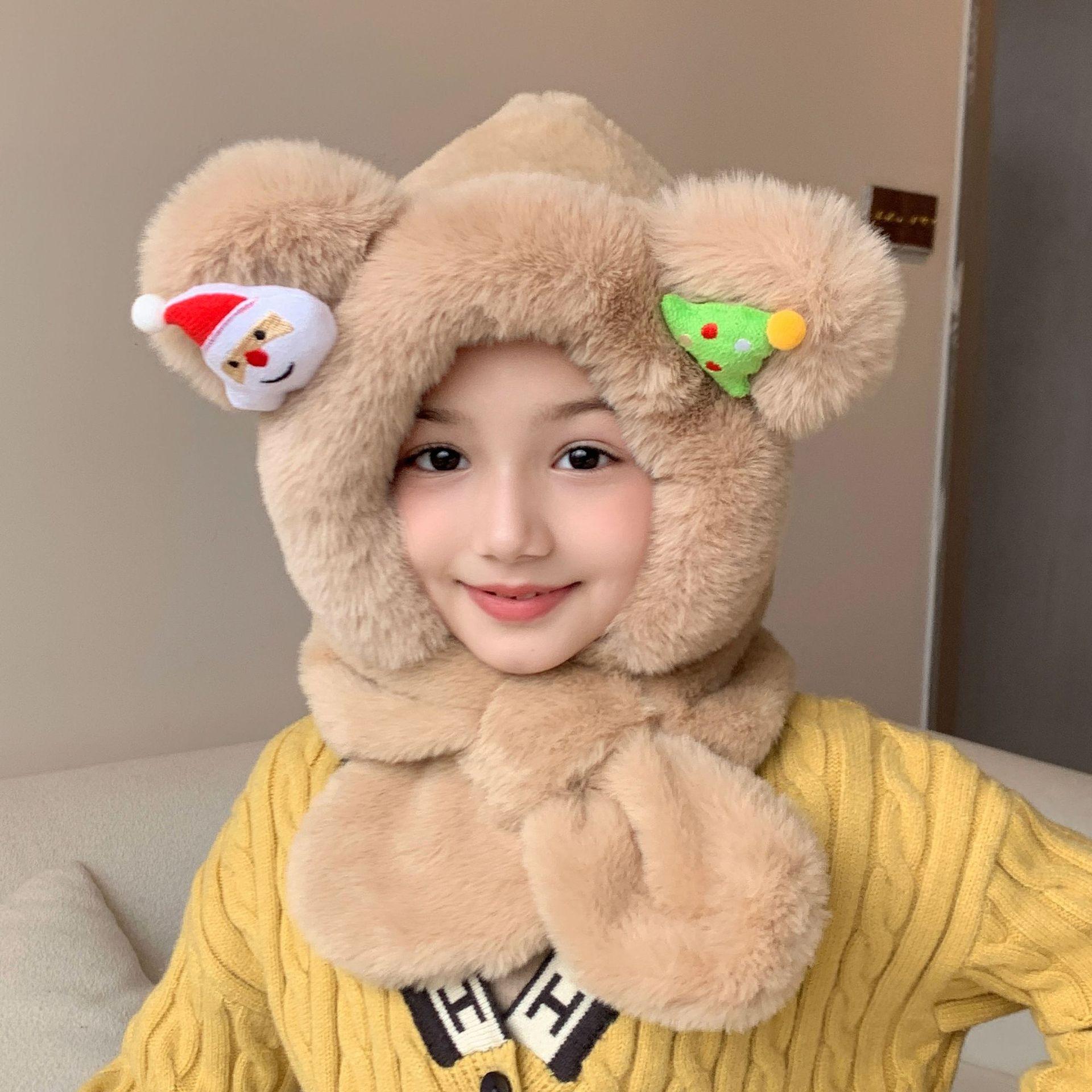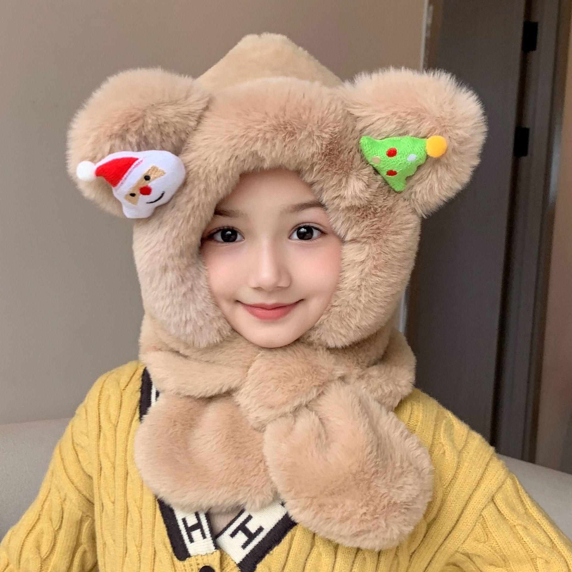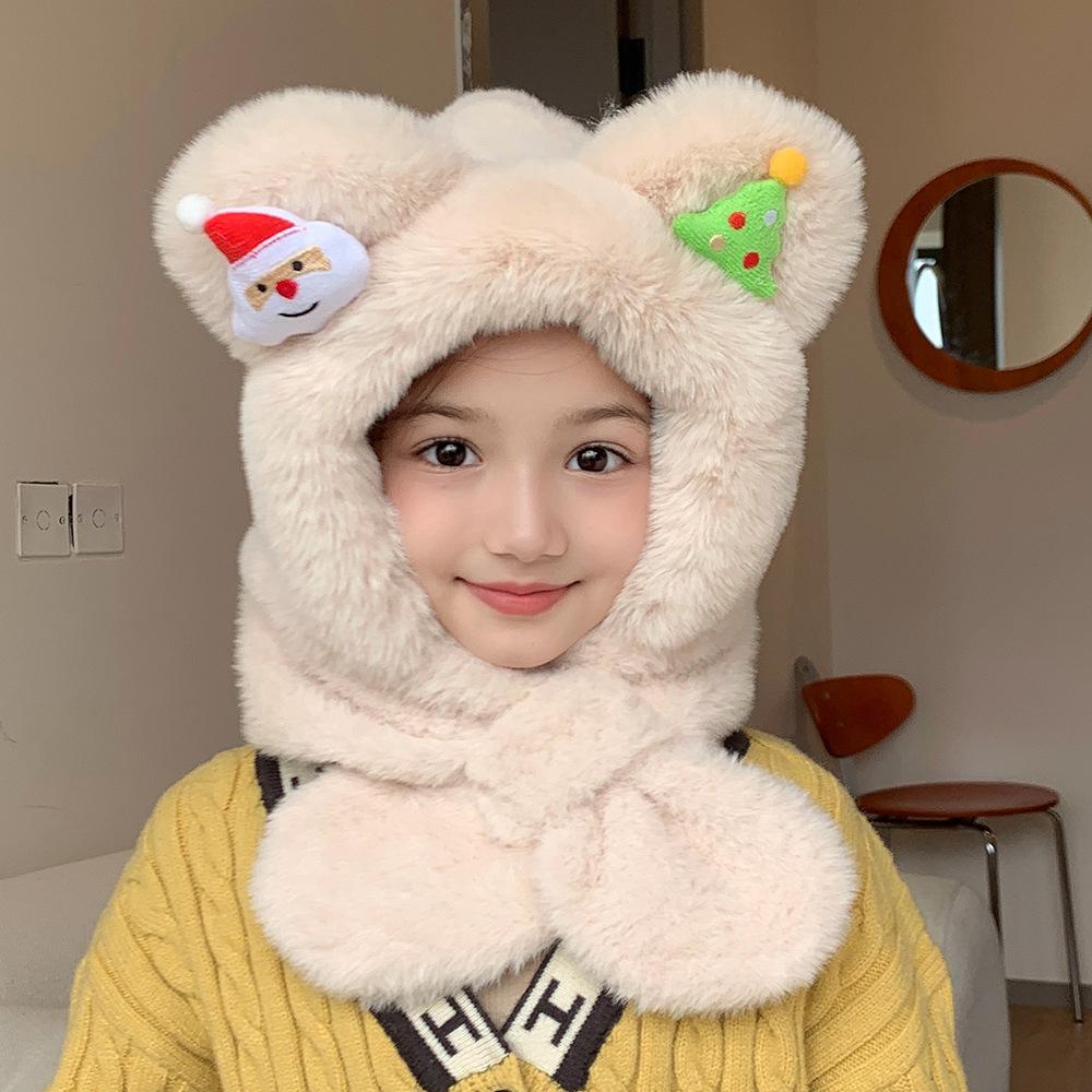 Set de dos piezas de bufanda y gorro navideños para niños, engrosado para el invierno, calentador de cuello de felpa cálido y lindo, versátil
