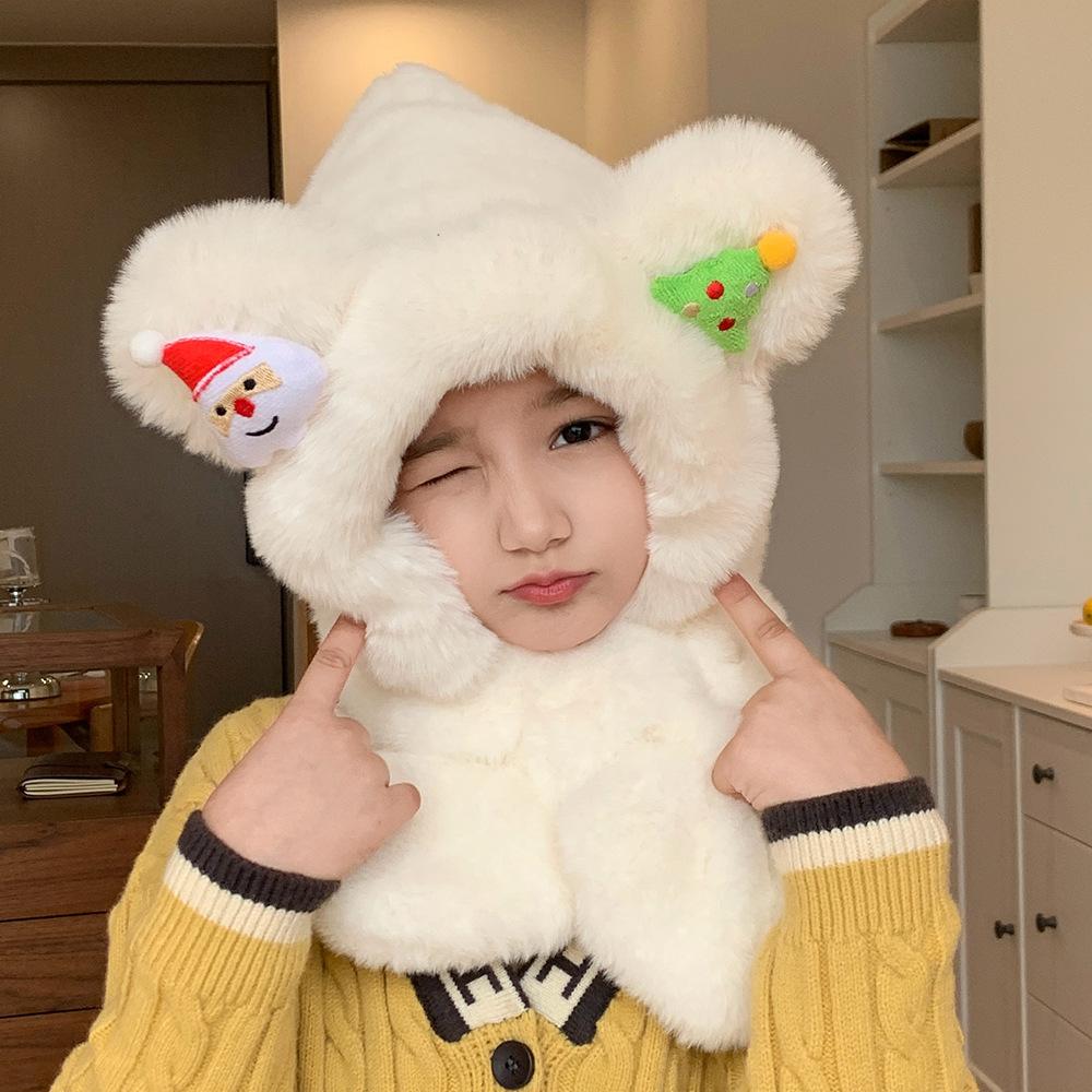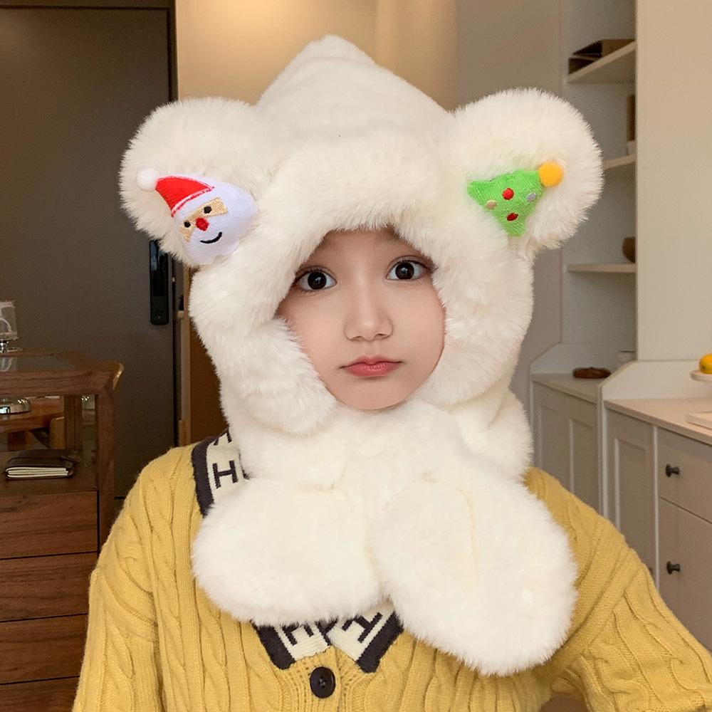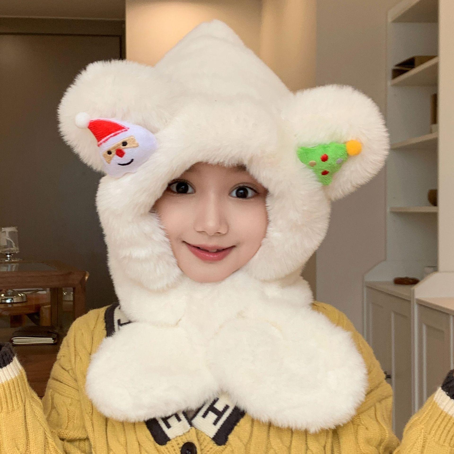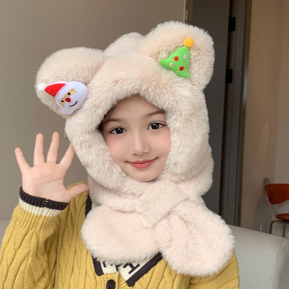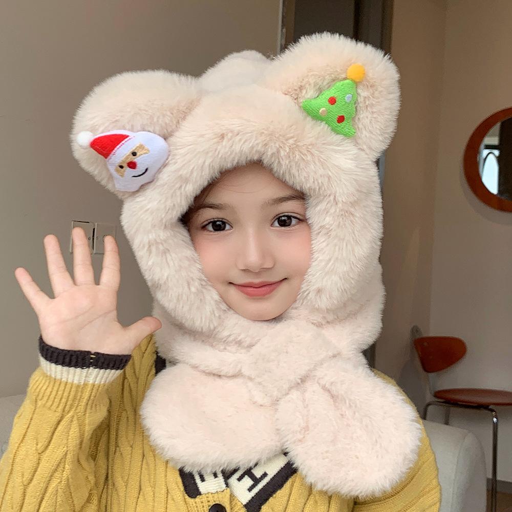 Set de dos piezas de bufanda y gorro navideños para niños, engrosado para el invierno, calentador de cuello de felpa cálido y lindo, versátil