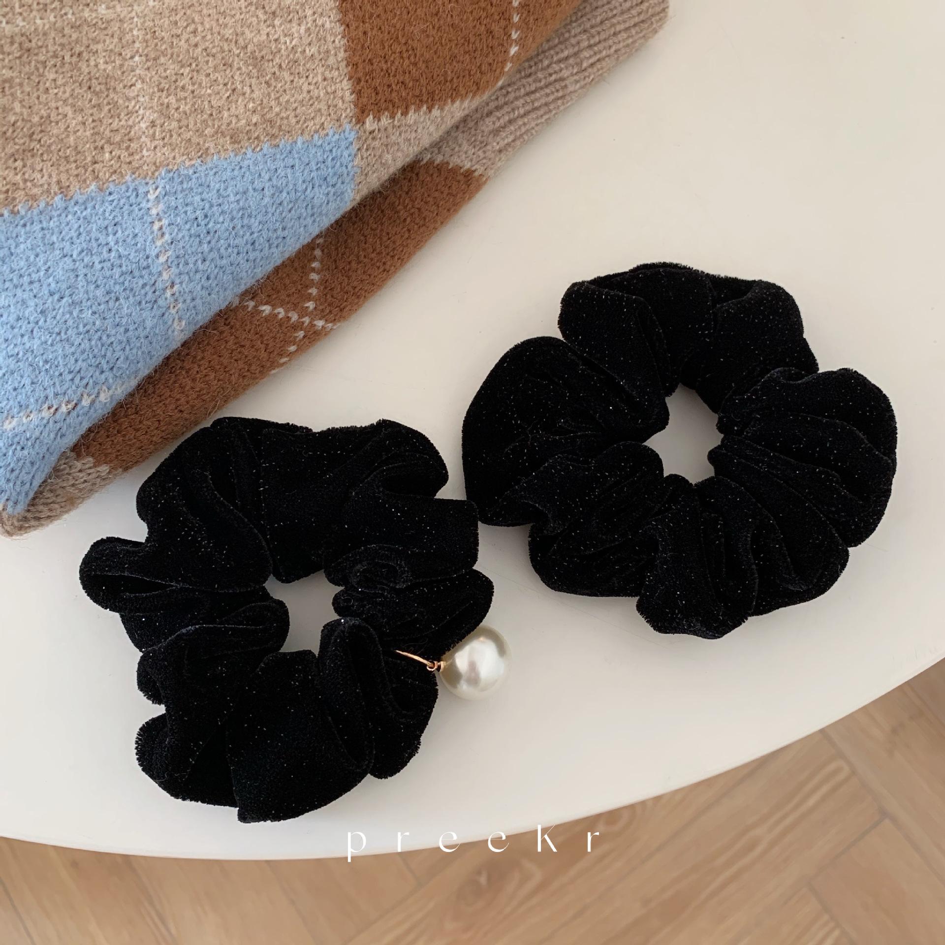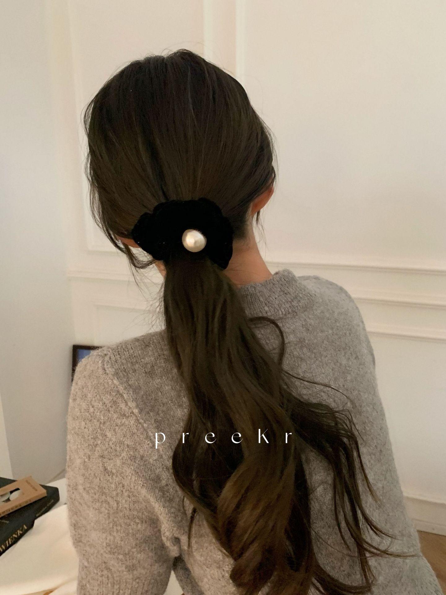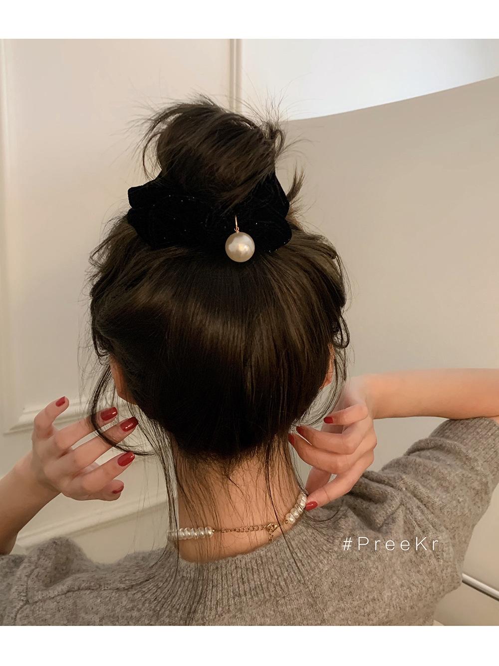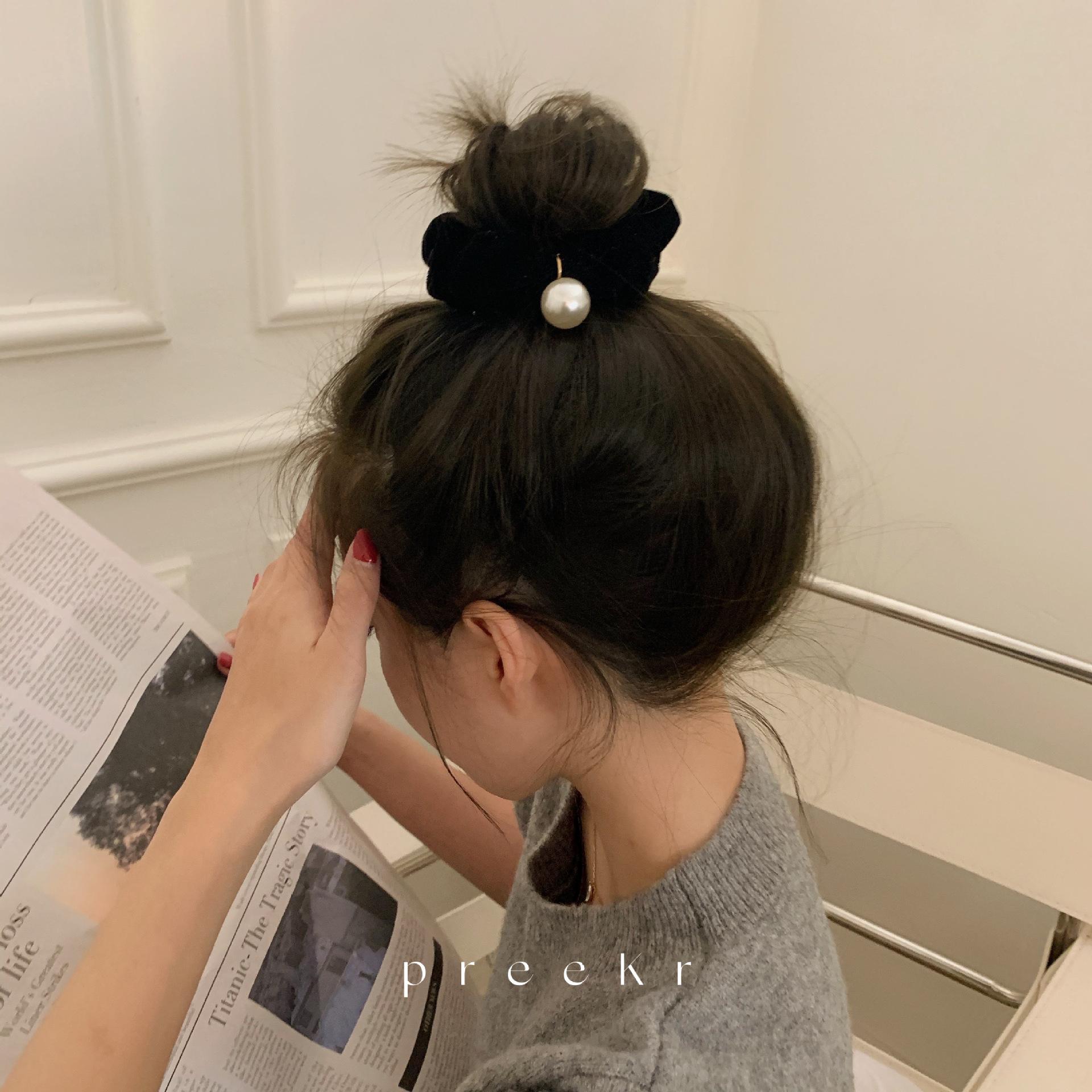 Elegantes sencillos accesorios de otoño e invierno para mujer 2022 terciopelo negro perla blogger de Corea del Sur para combinar con todo anillo para el cabello anillo intestino grueso