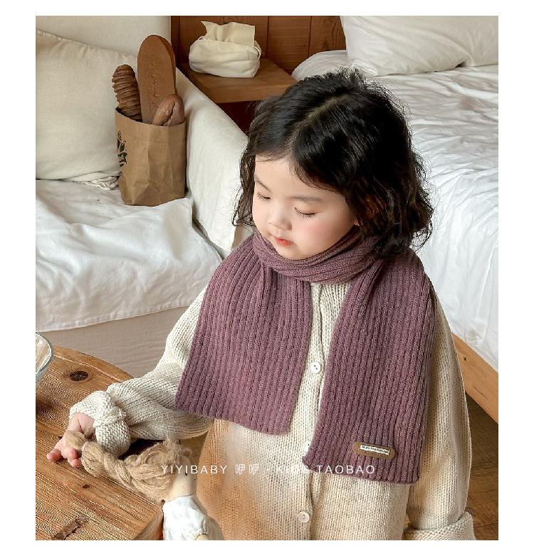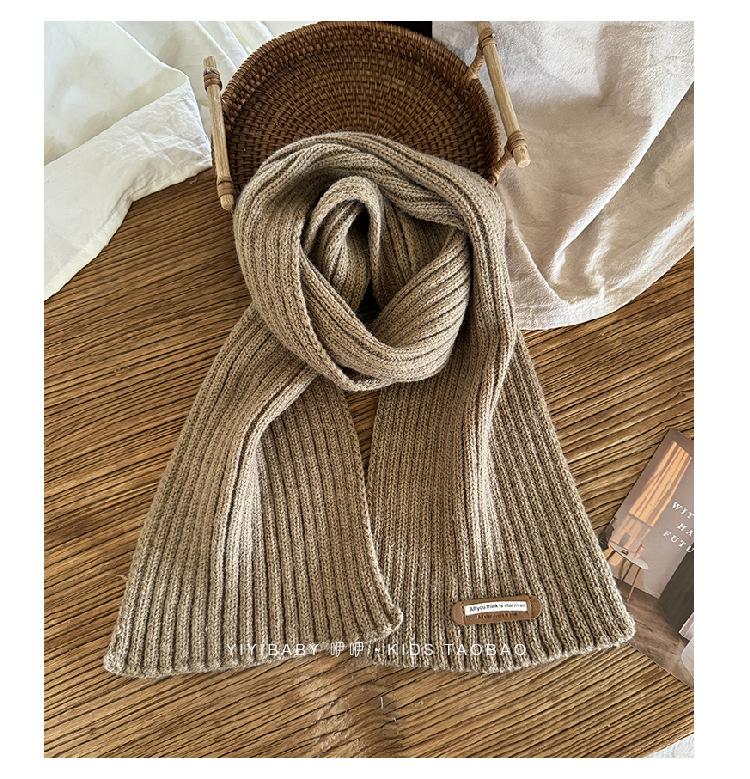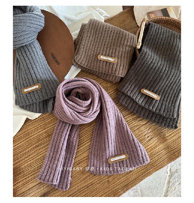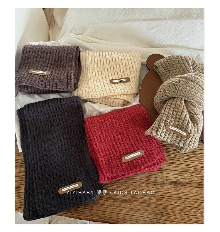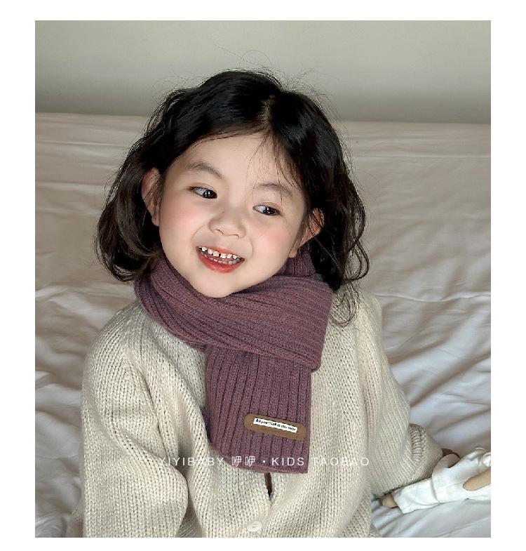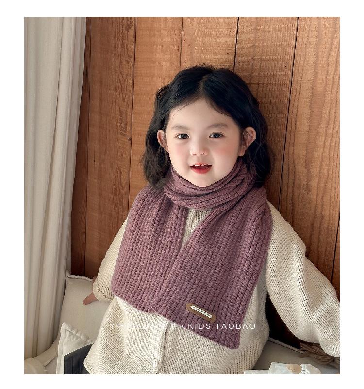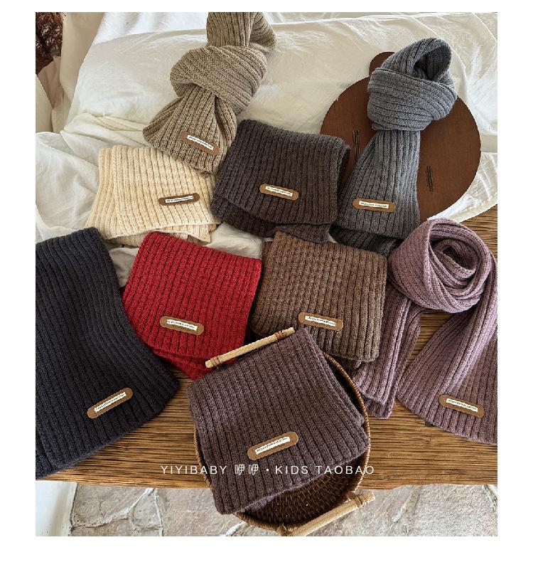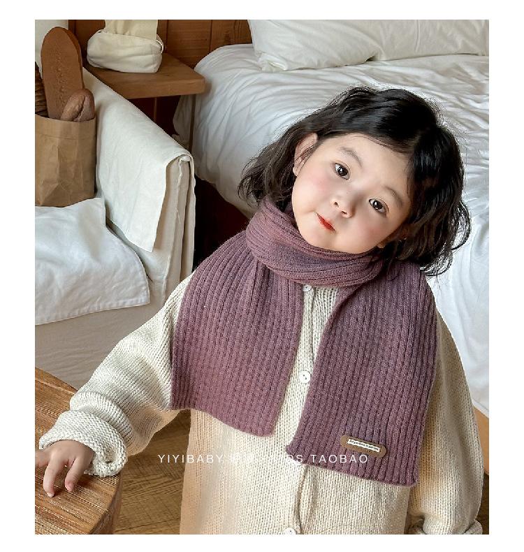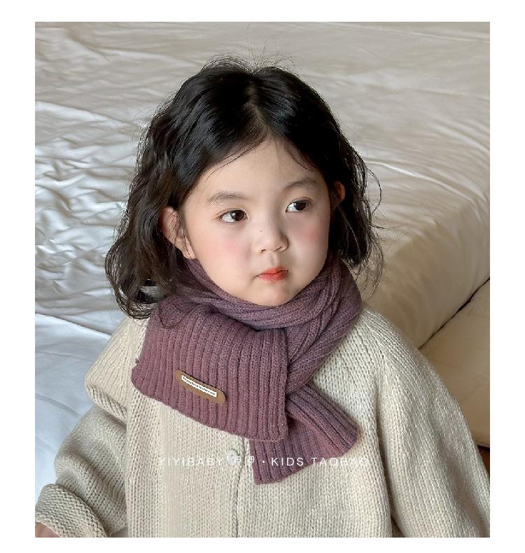 Bufanda infantil estilo coreano con etiquetado estilo extranjero color sólido combinable tejido otoño e invierno cálida bufanda resistente al viento para bebés niños y niñas