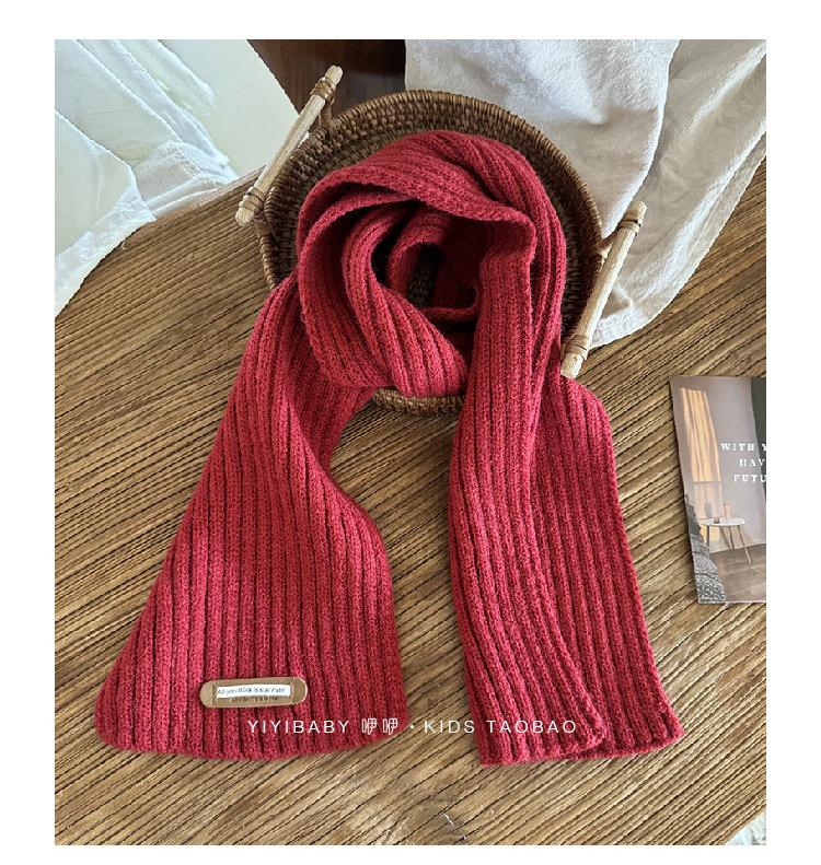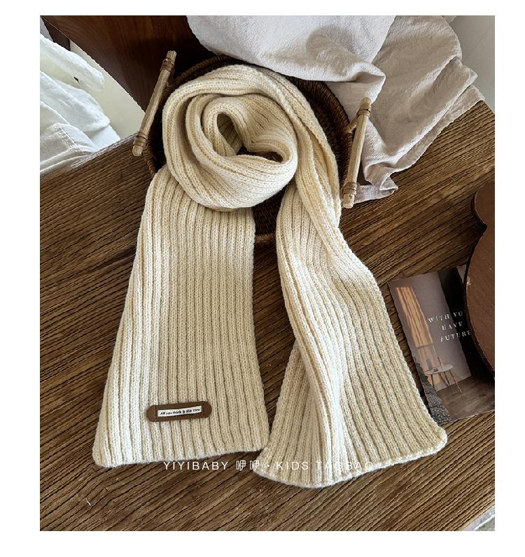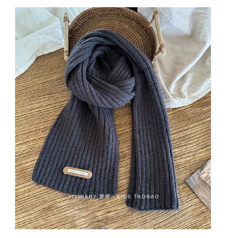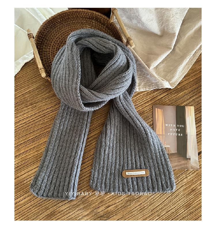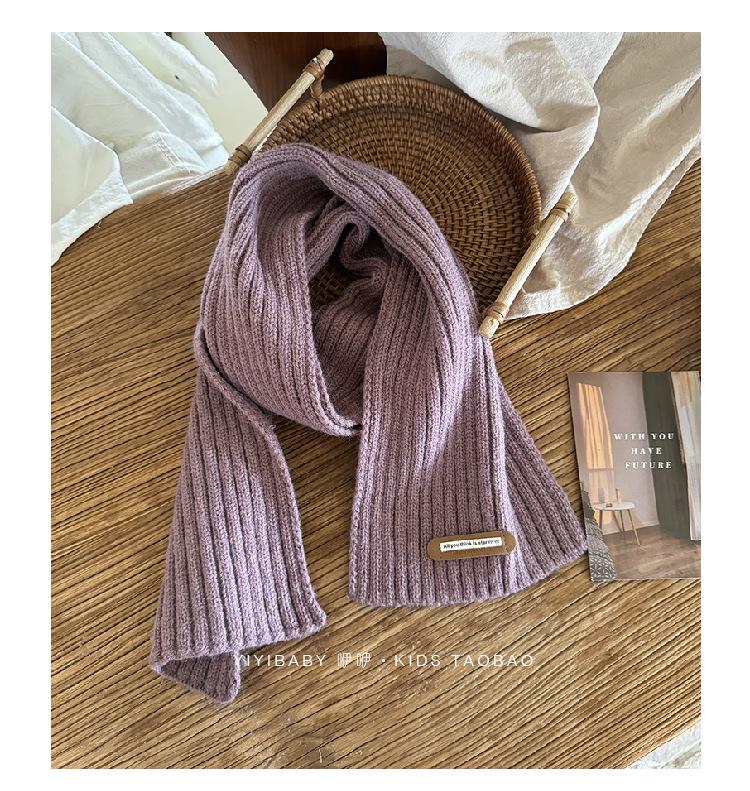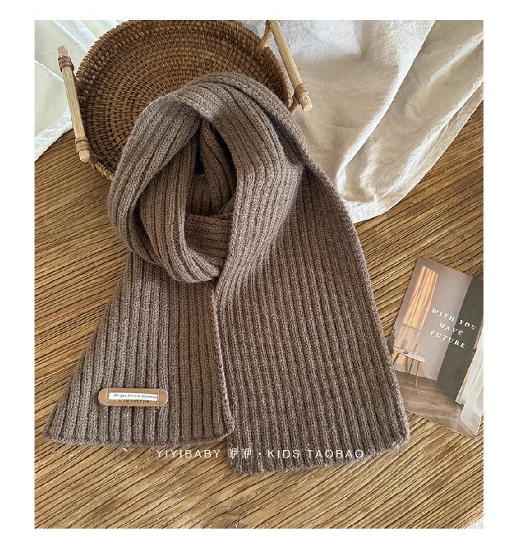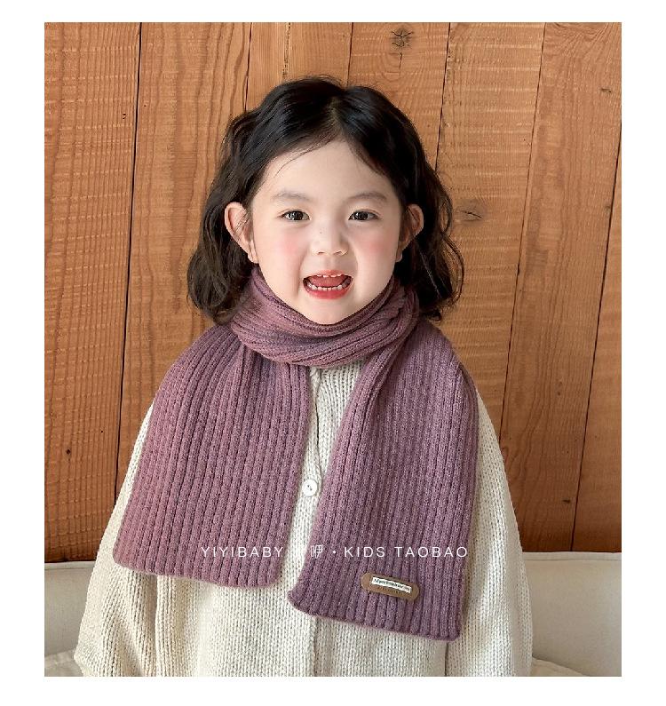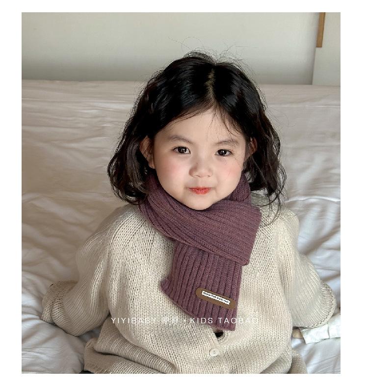 Bufanda infantil estilo coreano con etiquetado estilo extranjero color sólido combinable tejido otoño e invierno cálida bufanda resistente al viento para bebés niños y niñas