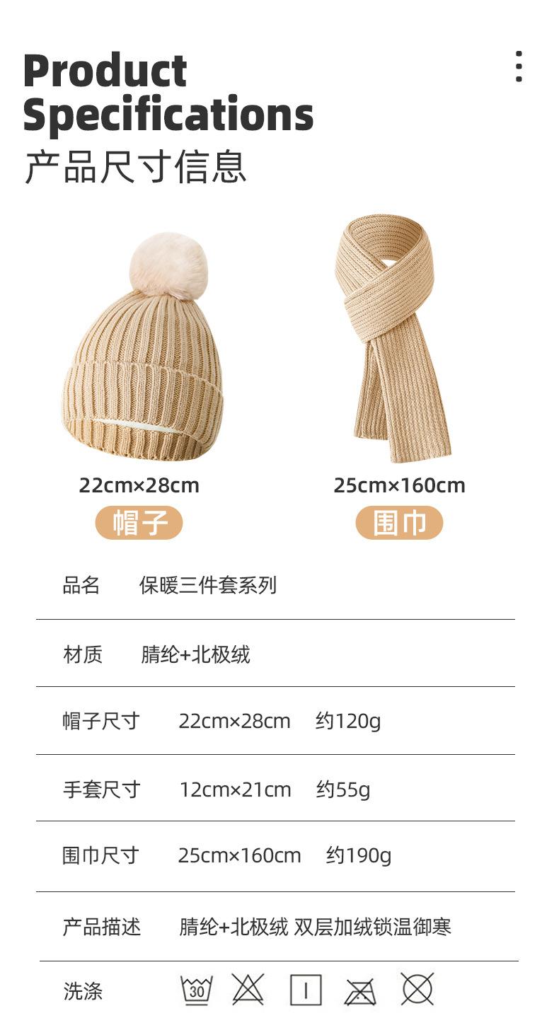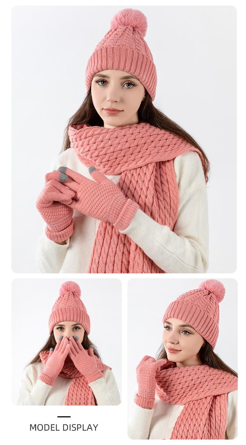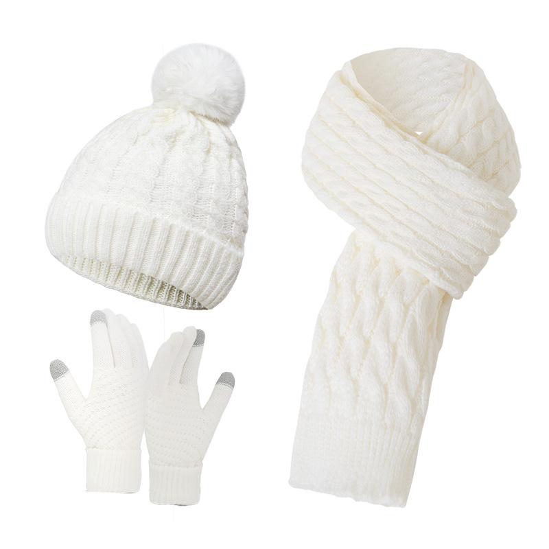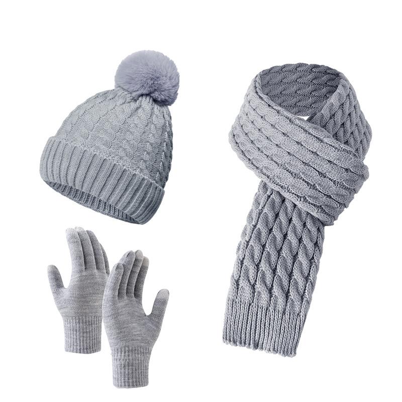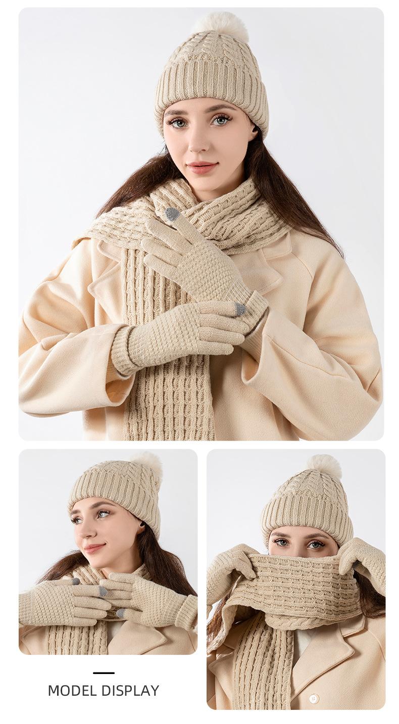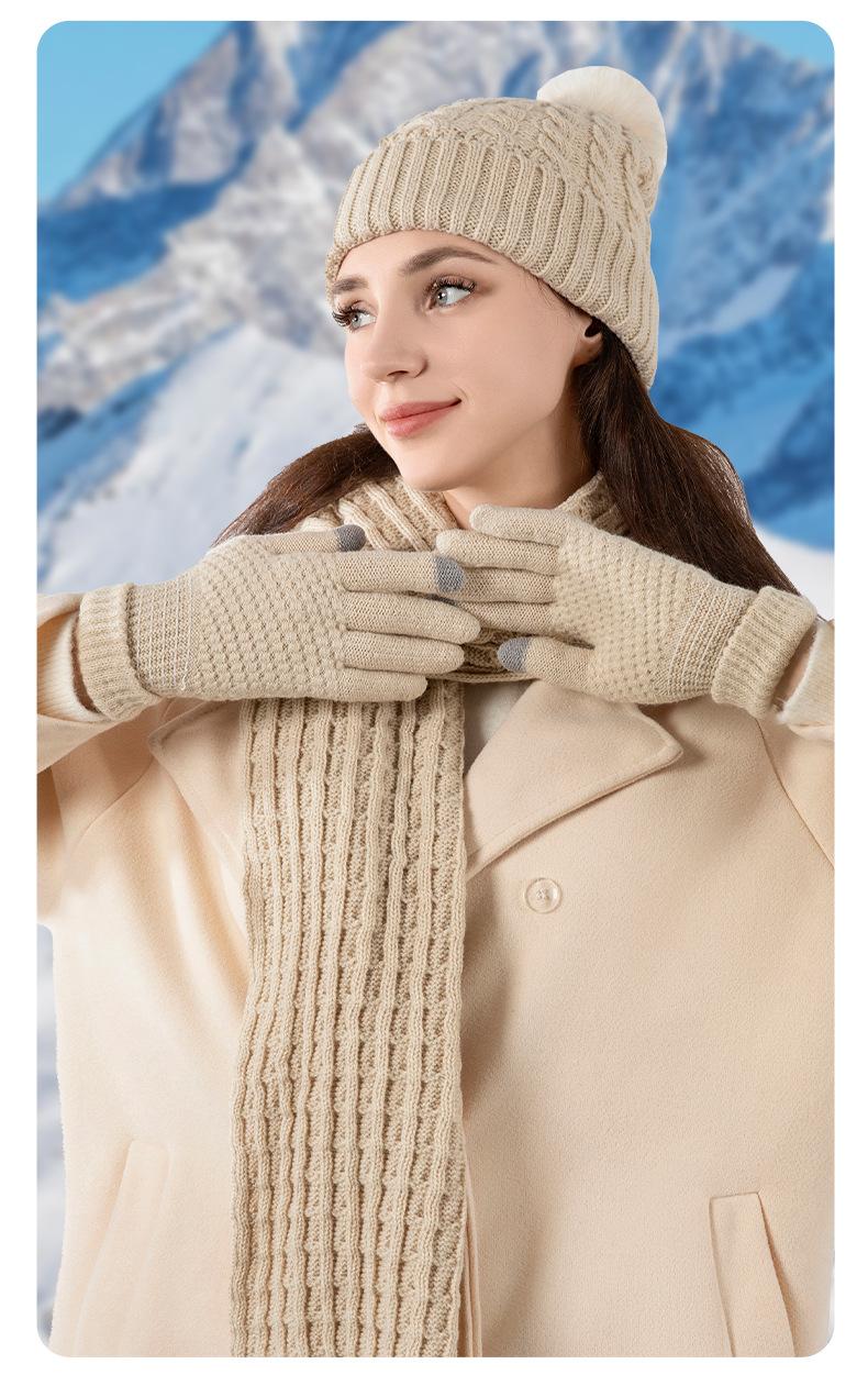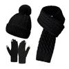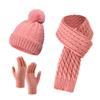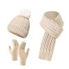 Conjunto de tres piezas de gorro, bufanda y guantes gruesos con forro polar, resistentes al frío, de lana de punto cálida, para invierno, de Amazon, Europa y América.