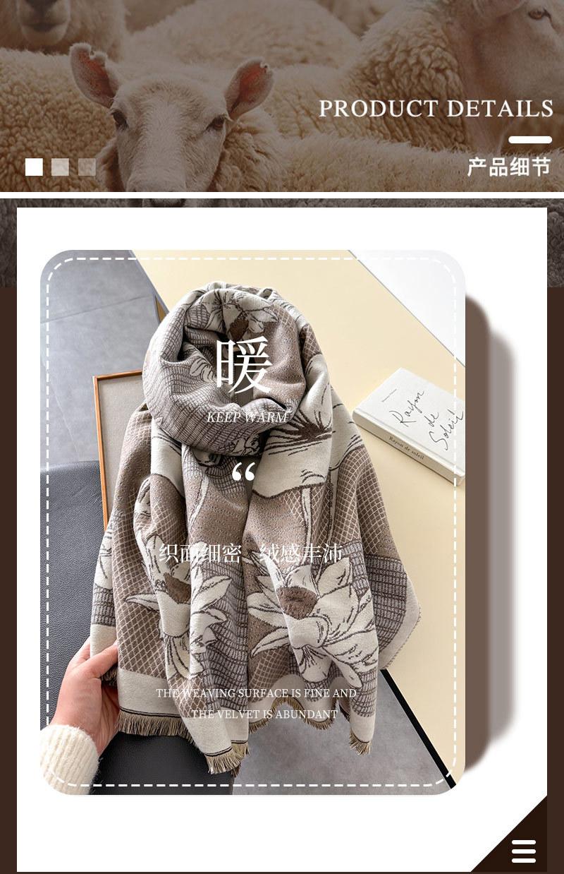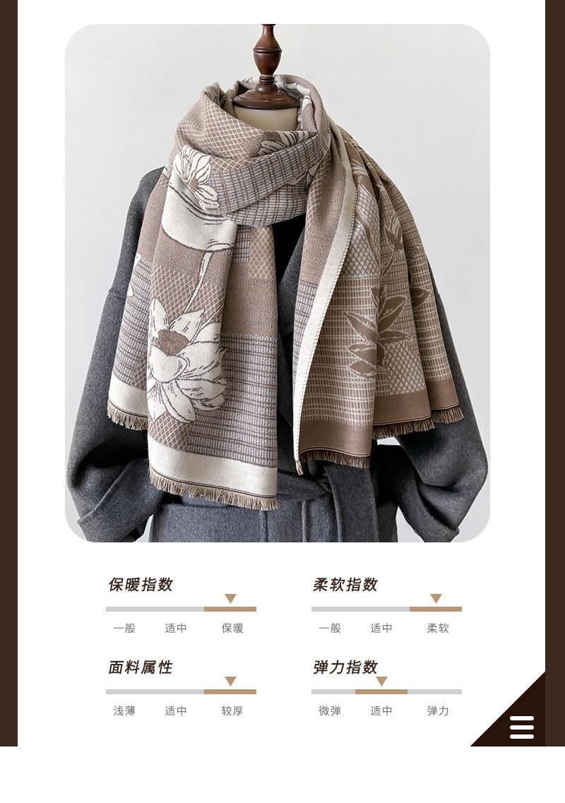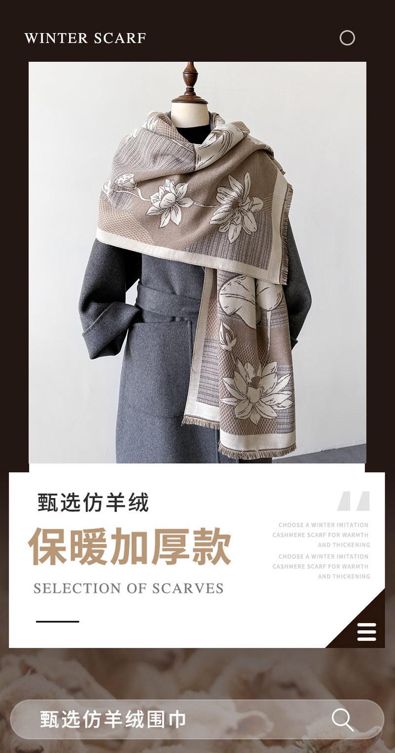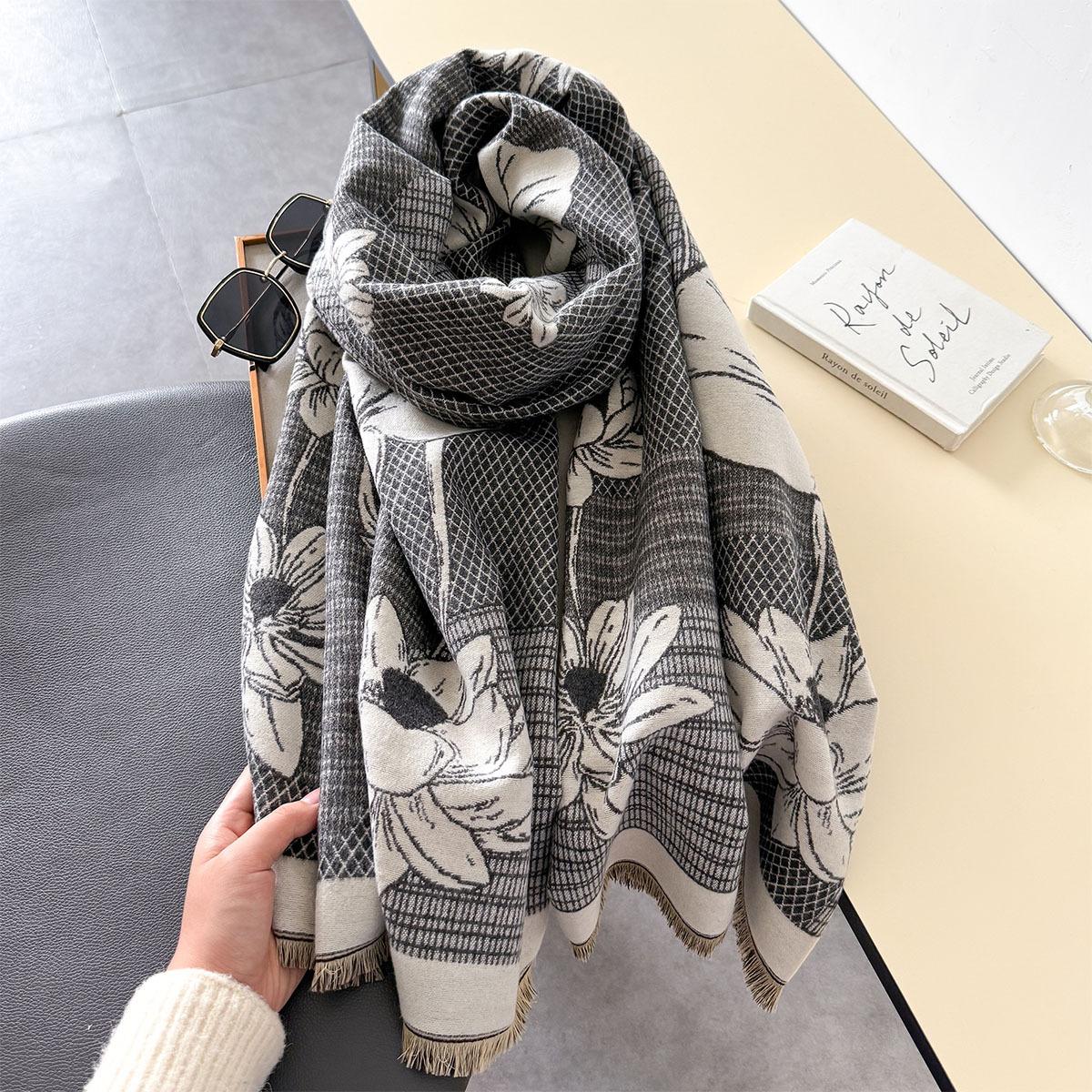 Bufanda Vintage Estilo Nacional Imitación Cachemira Estampado de Loto Elegante Moda Otoño e Invierno Bufanda Cálida Chal Espesado de Doble Uso
