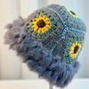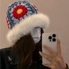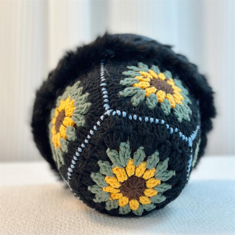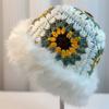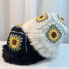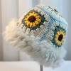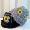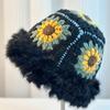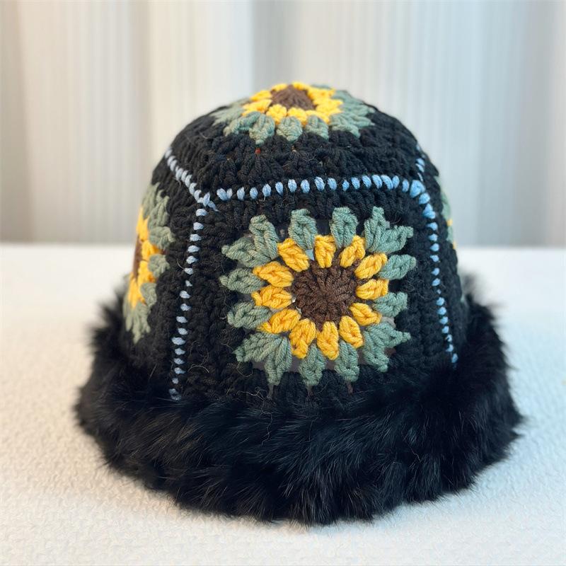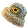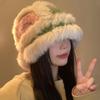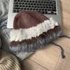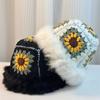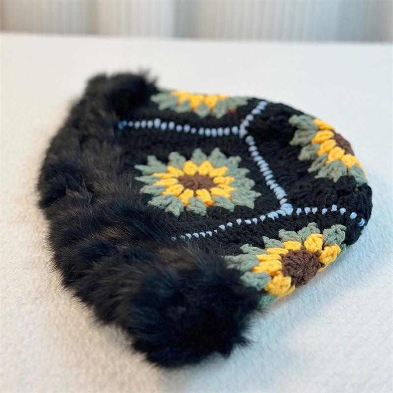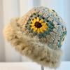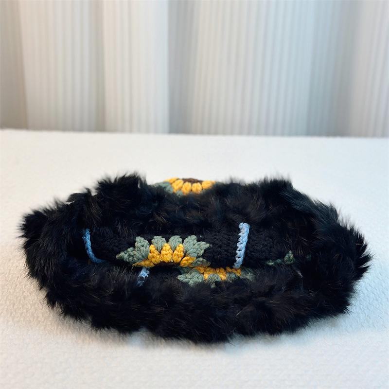 Sombrero Tejido de Pelo de Conejo de Cabeza Grande para Mujer Otoño e Invierno Sombrero de Pescador con Borde de Piel Lindo Hecho a Mano Calado Cara Pequeña Cálido Sombrero de Lana