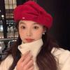 Buen tacto diseñador tridimensional combinable boina de lana octogonal de invierno para mujer cara pequeña red de pintor