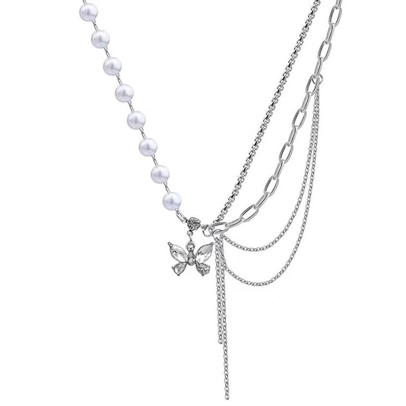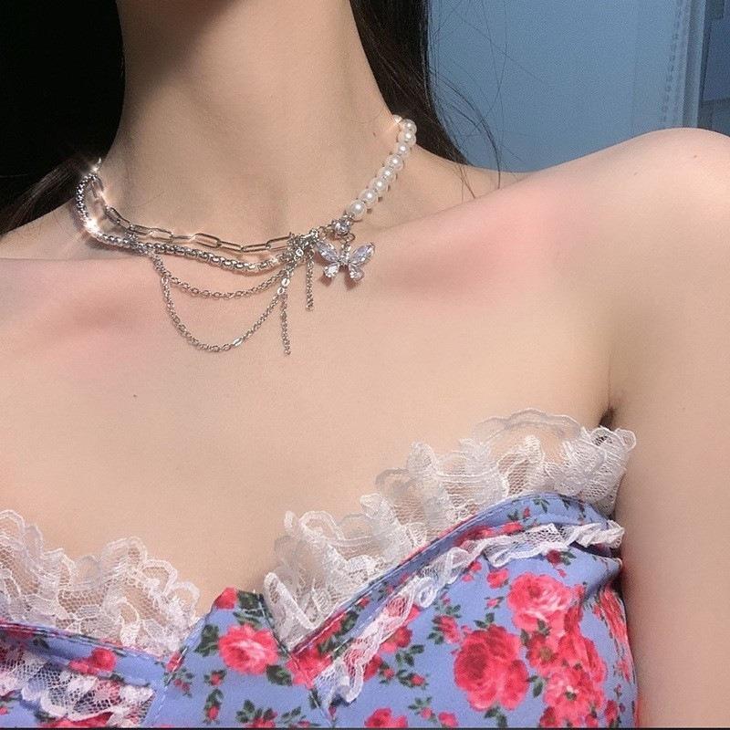 Collar Mariposa Blanca Soñadora para Mujer 2025 Nuevo Popular Nicho Cool Borla Cadena Clavícula de Alta Gama Accesorio