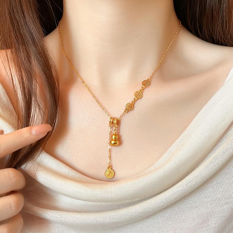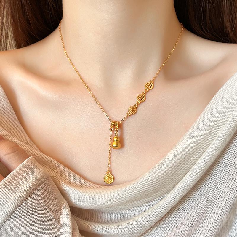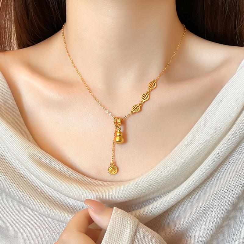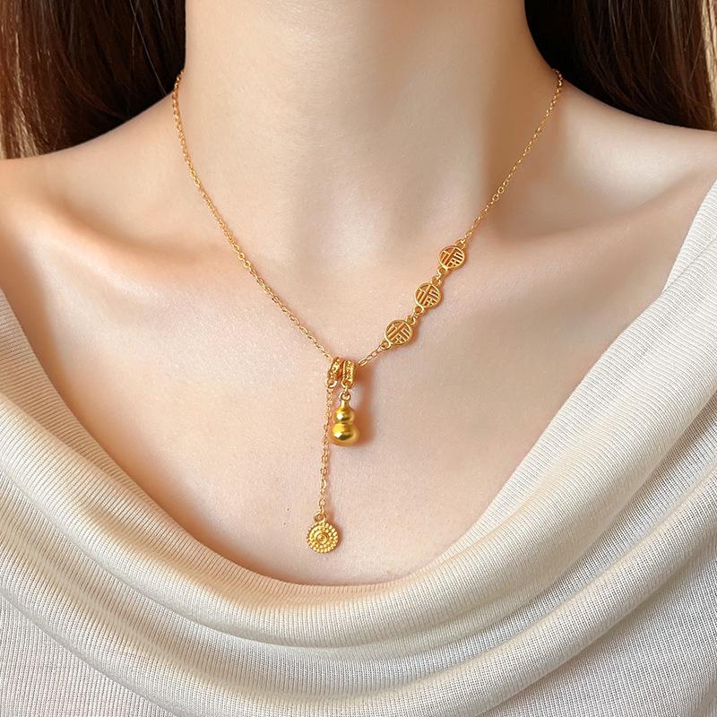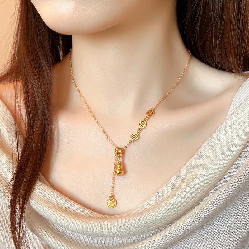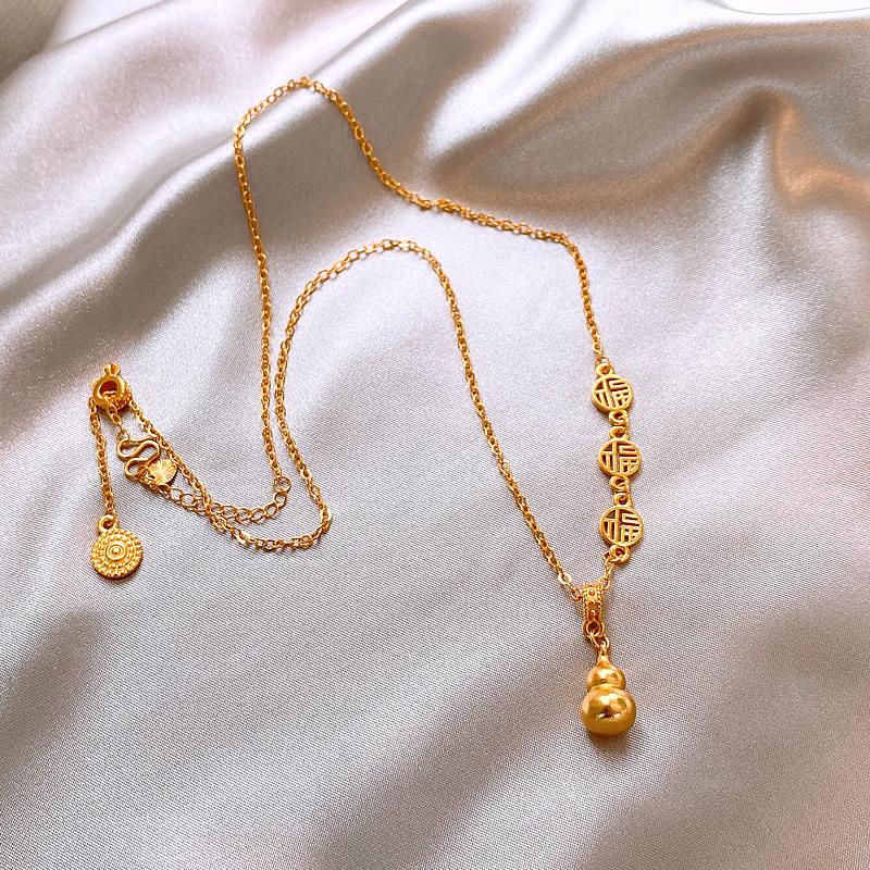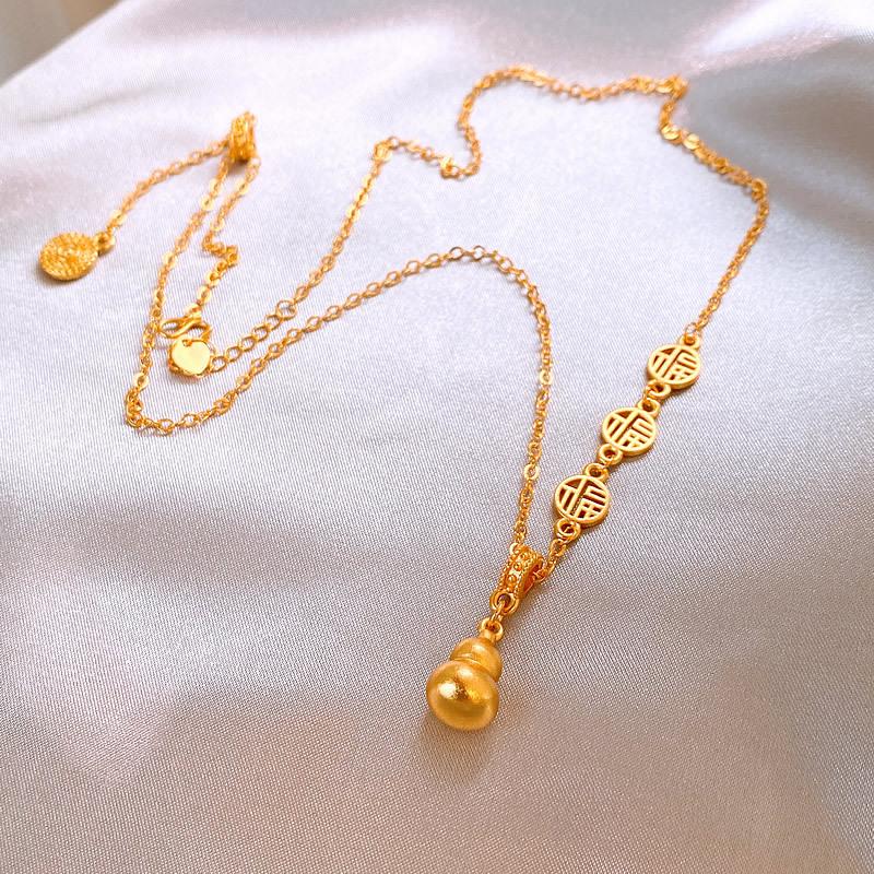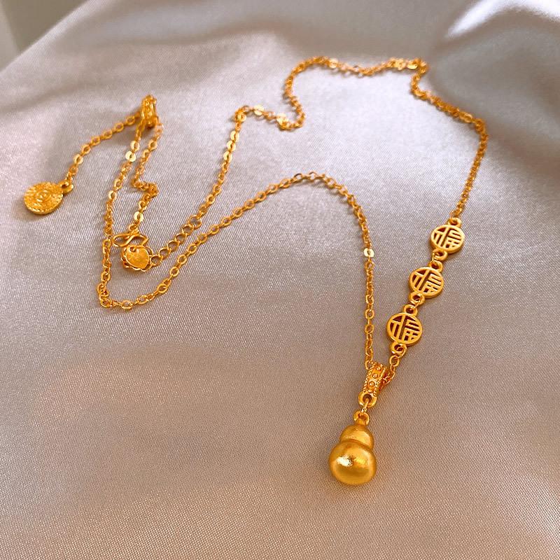 Nuevo collar con colgante de calabaza Fuzi dorada, nuevo estilo chino retro, ligero, de lujo, de alta gama, con cadena de clavícula, joyería elegante.
