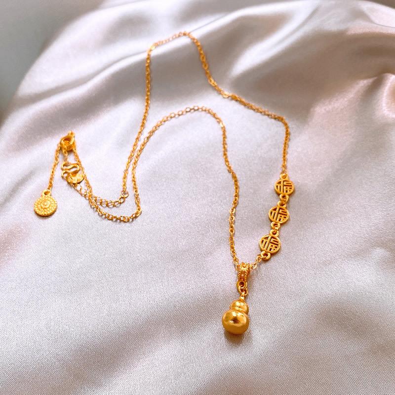 Necklace-gold gourd pendant with word "fu"