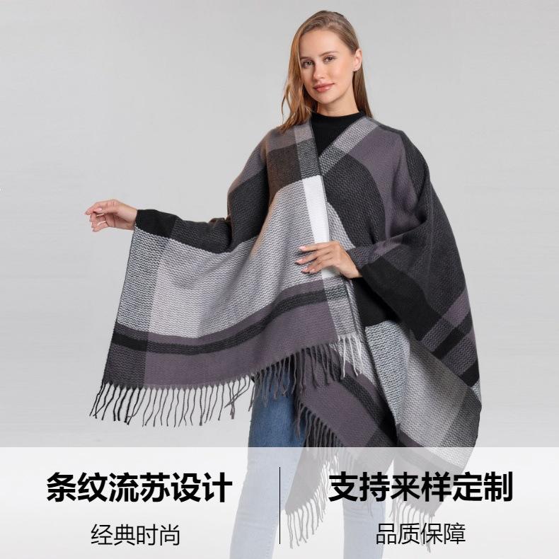 Chal con borlas cruzadas para otoño e invierno, bufanda a cuadros de colores para mujer, abrigo cálido para habitación con aire acondicionado, venta al por mayor para hombres