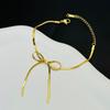 Collar europeo y americano para mujer, de alta gama, con lazo, combinable, sencillo, de nicho, fresco, de oro de 18 quilates, con cadena de clavícula.