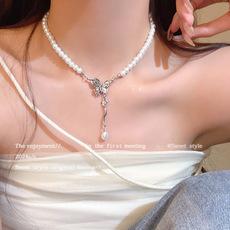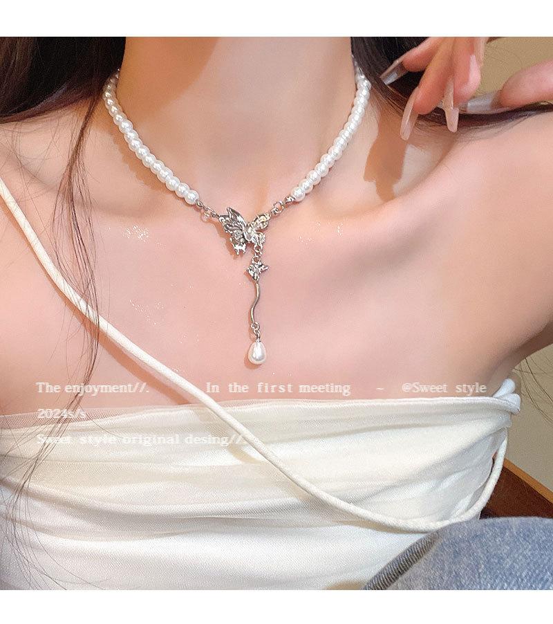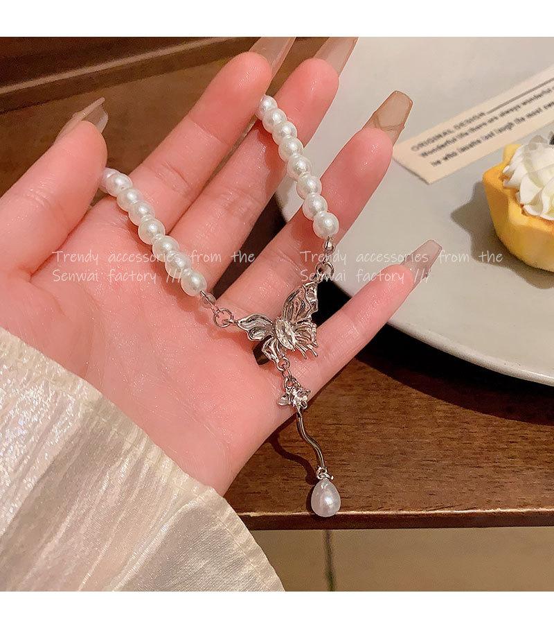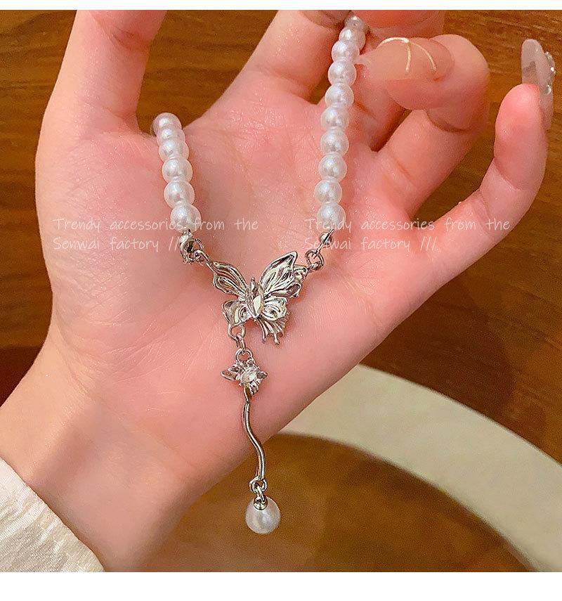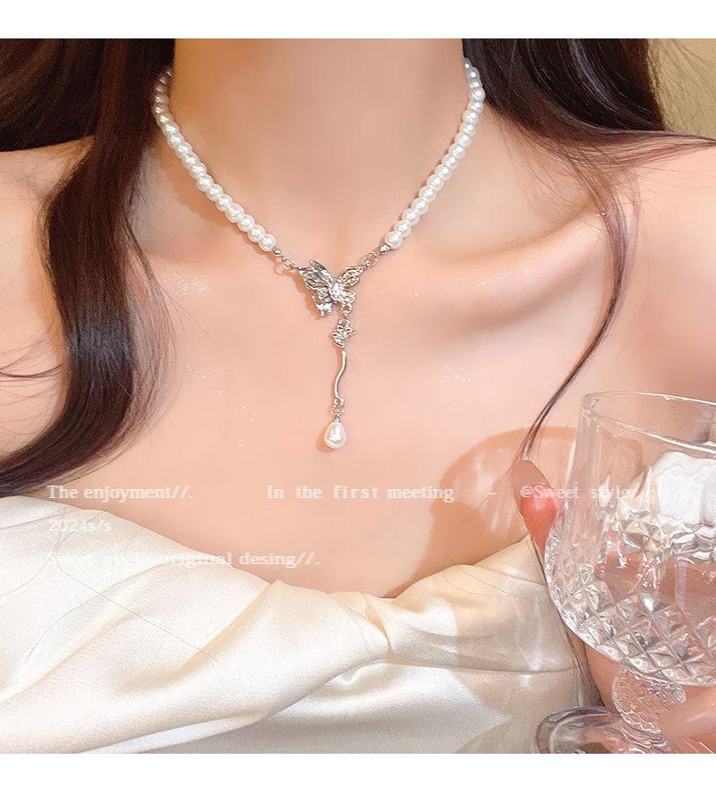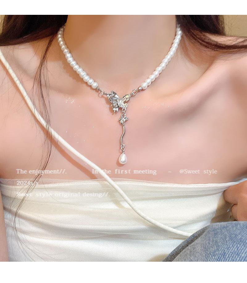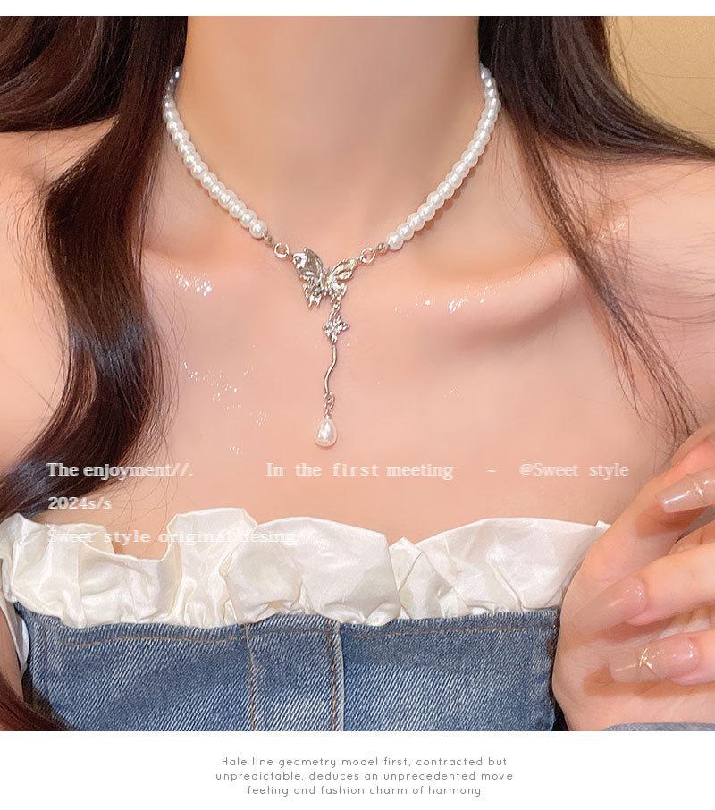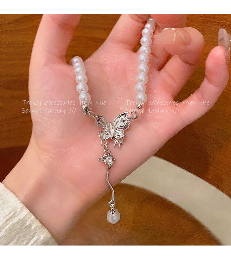 Collar de perlas con borlas de mariposa tridimensionales para mujer, estilo dulce y fresco, nicho y versátil, cadena de clavícula de chica sexy, nuevos accesorios de alta gama
