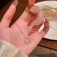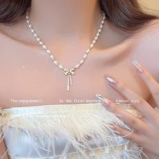 Collar de perlas con lazo de diamantes de estilo coreano para mujer, diseño de cadena de clavícula con cuentas versátiles y de nicho dulce, accesorios con personalidad