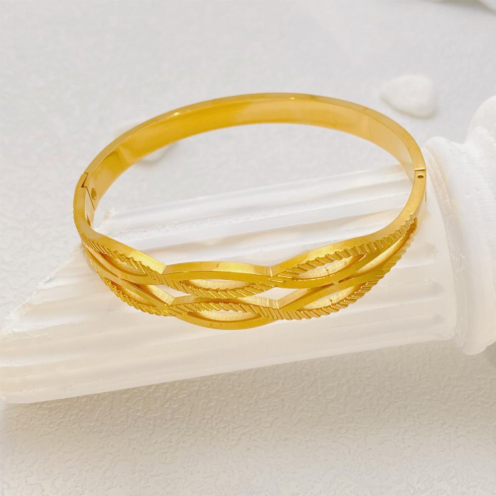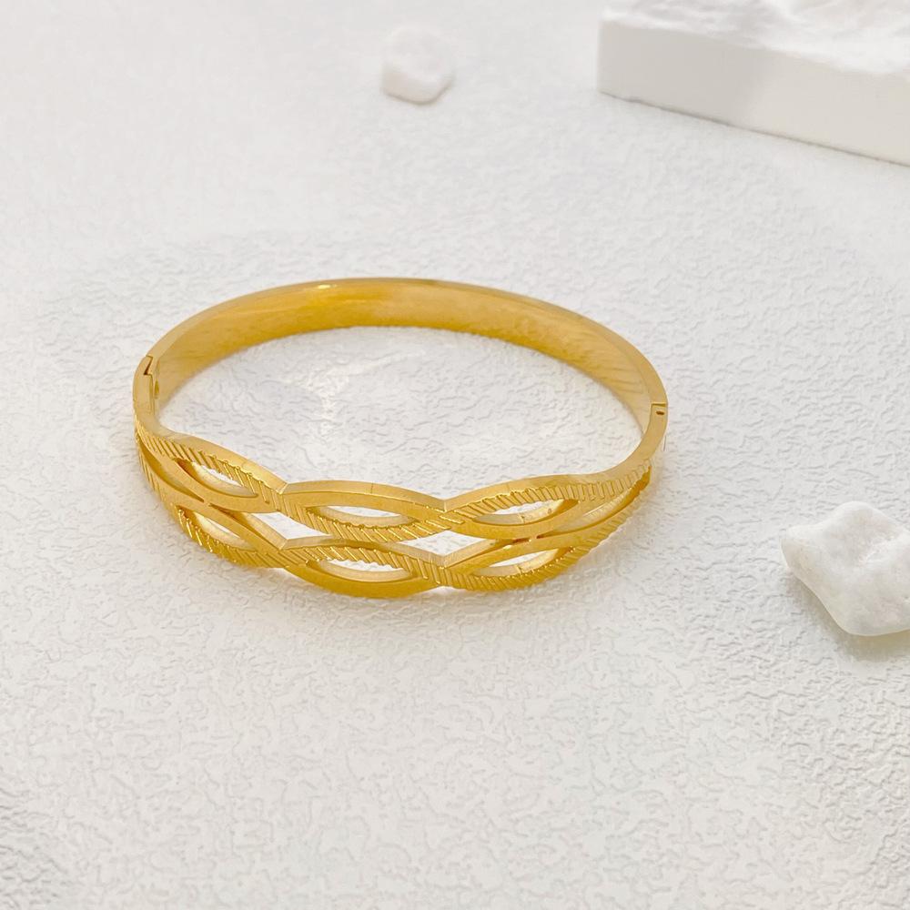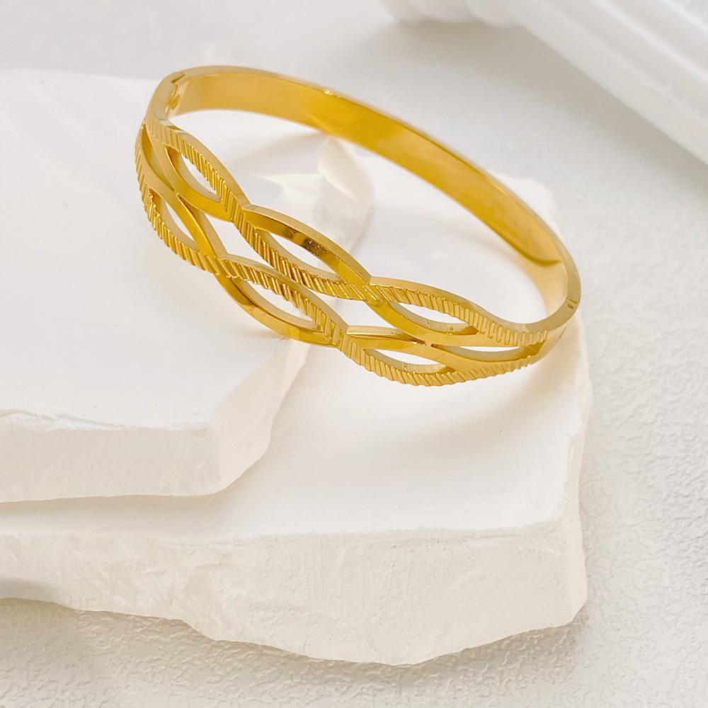 Pulsera de acero de titanio con grano de línea de venta caliente transfronteriza de Europa y Estados Unidos, diseño ins, torcida, chapada en oro, de alta calidad, Mobius