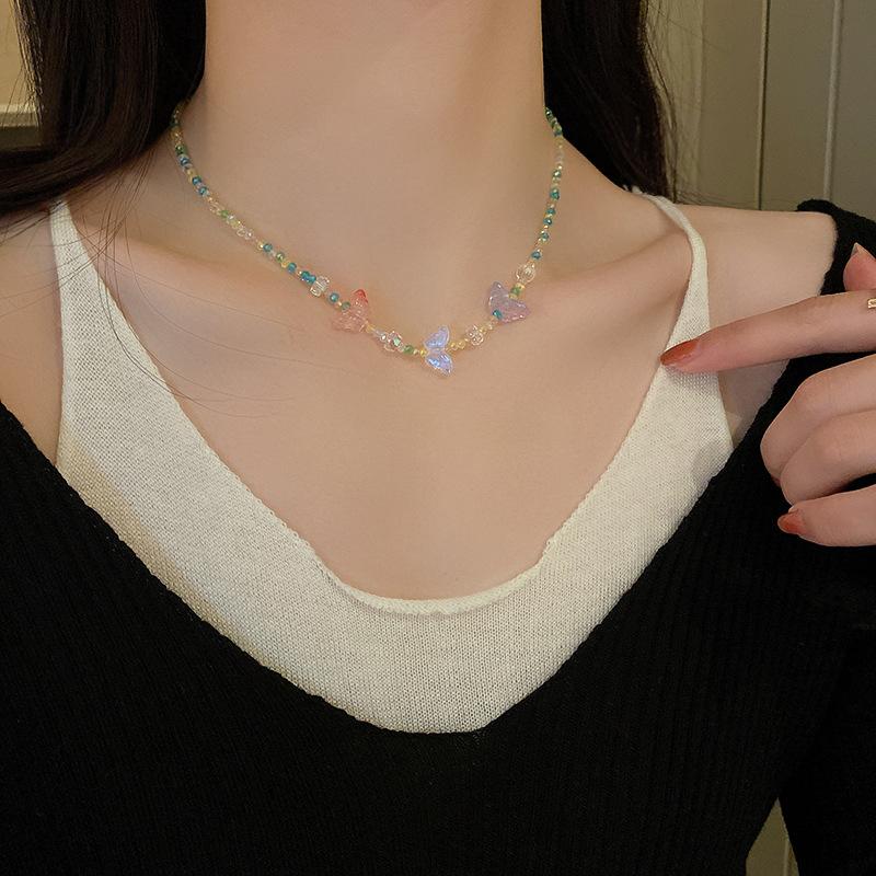 Main picture color butterfly necklace, Colorful Beaded Butterfly Bracelet, Rainbow Candy Necklace, Color star ...