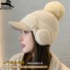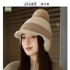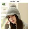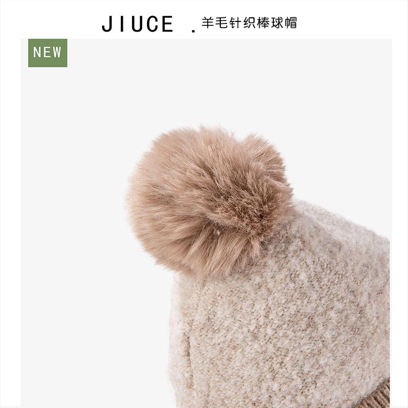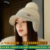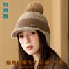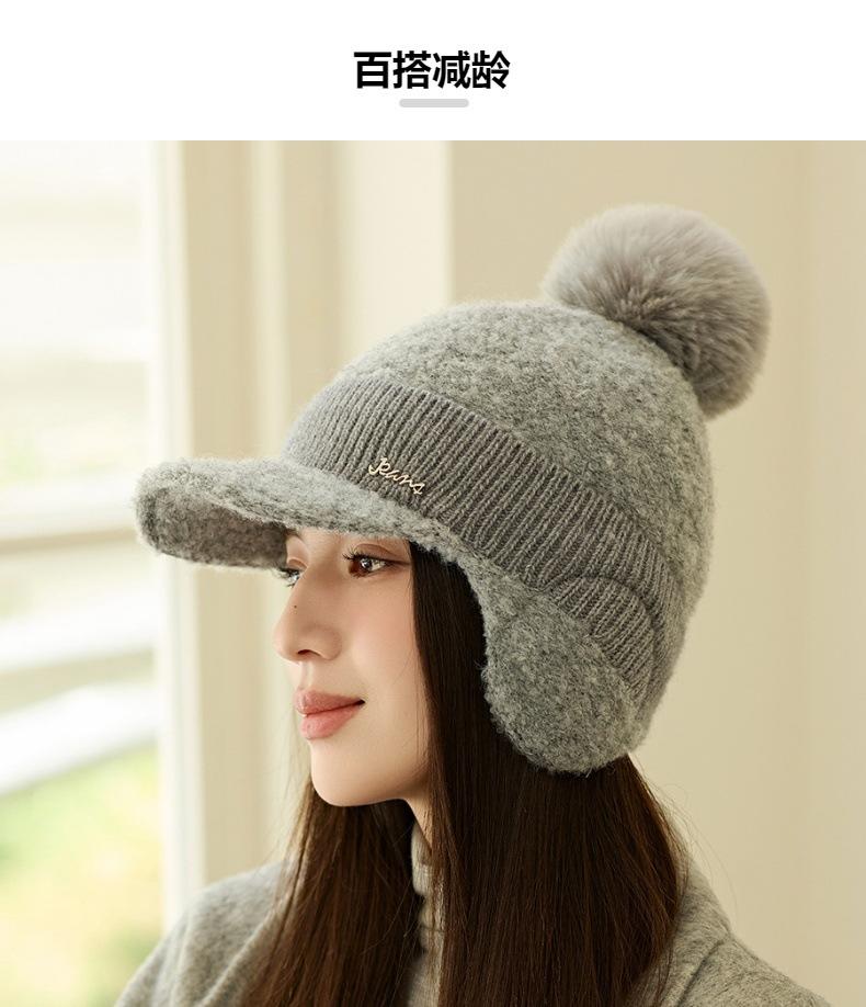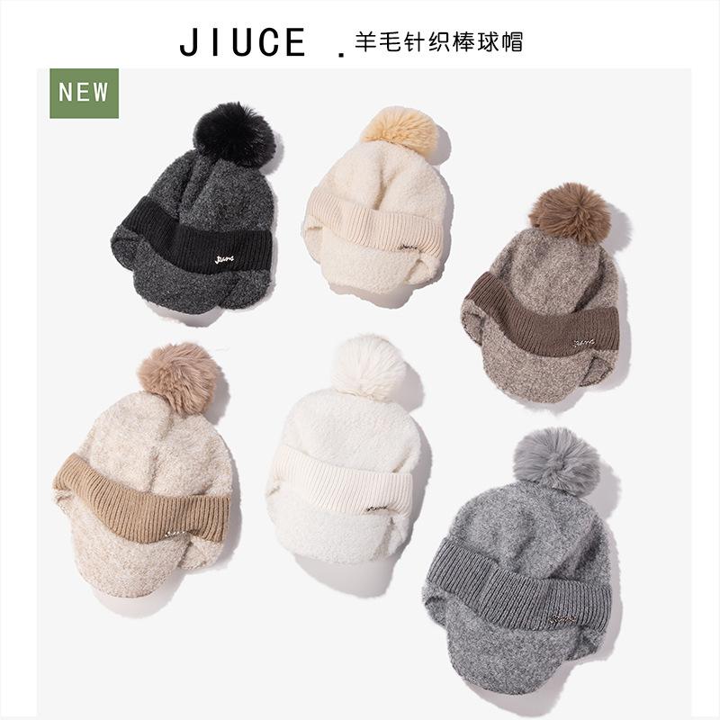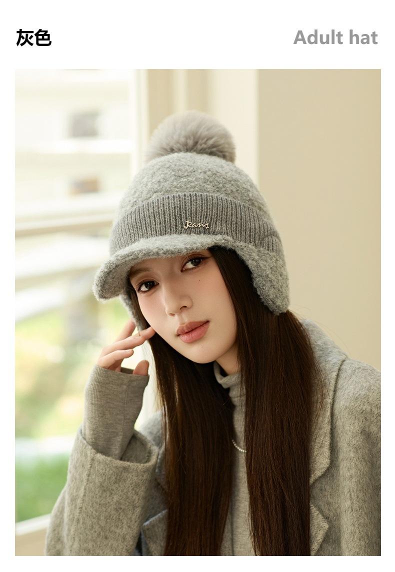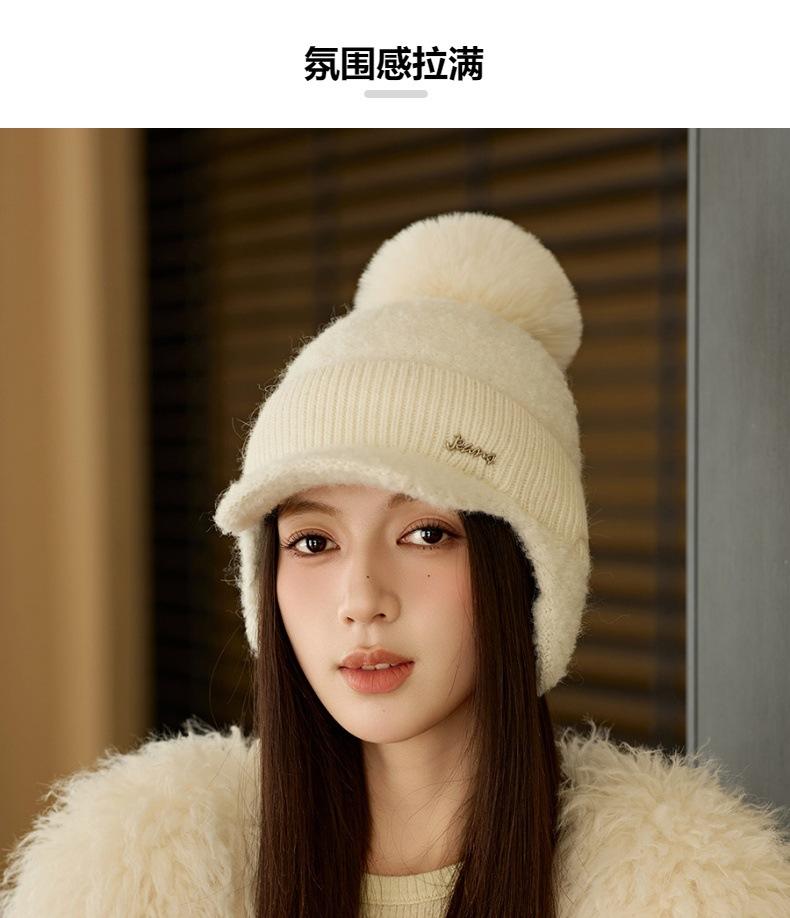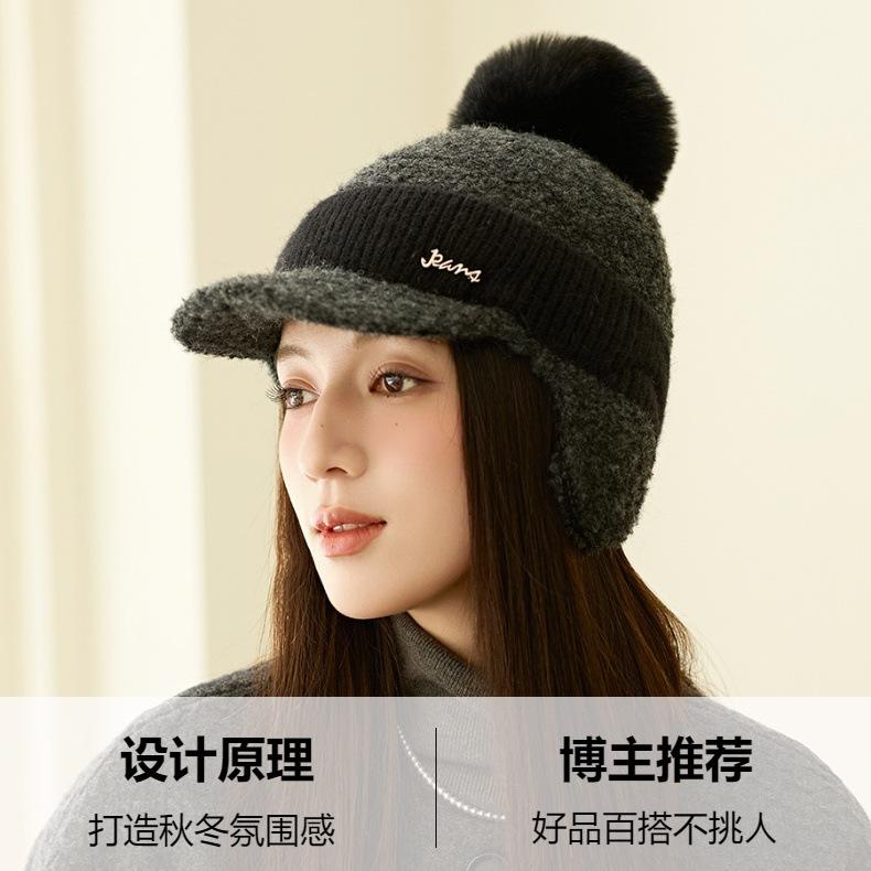 Gorra de Béisbol Gruesa de Lana de Corea del Sur para Niña Invierno Exterior Color Dividido Orejera Gorro con Pompon de Piel Gorro Tejido Grueso