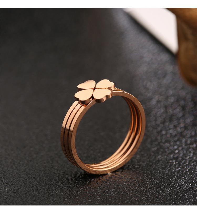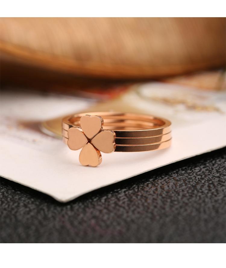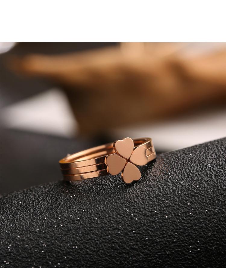Anillo de Tres Piezas con Forma de Corazón Estilo Coreano Combinación Dividida Anillo para Dedo de Trébol de Cuatro Hojas Anillo de Cola Joyería para Mujer