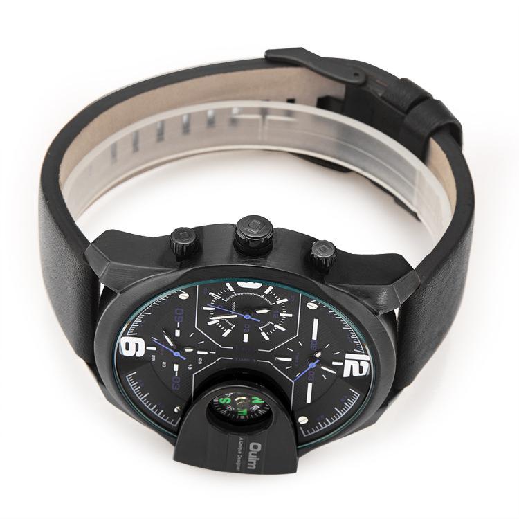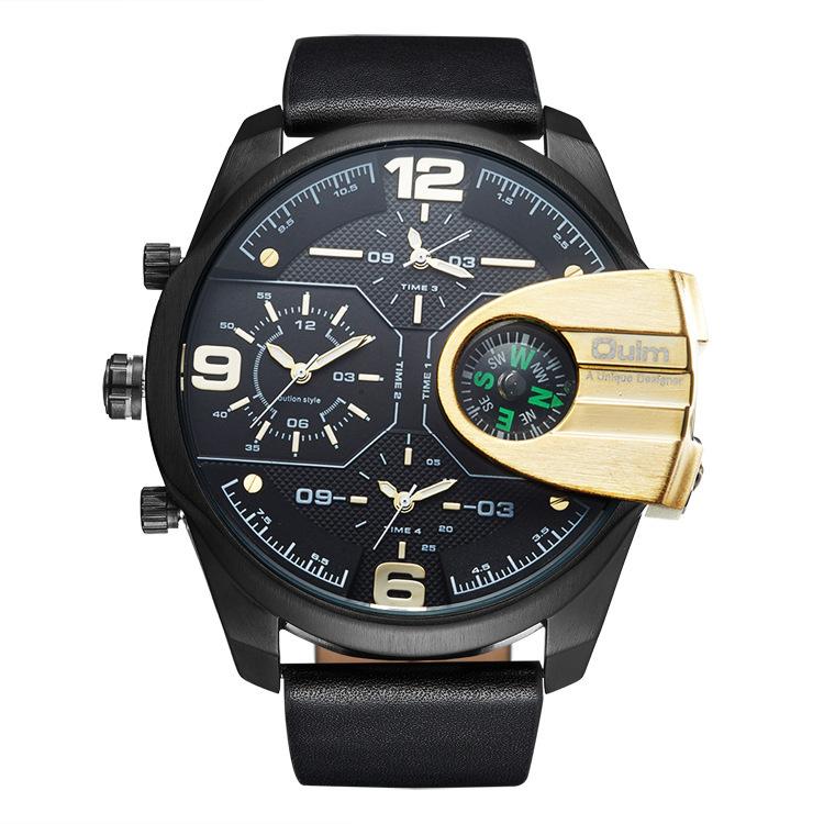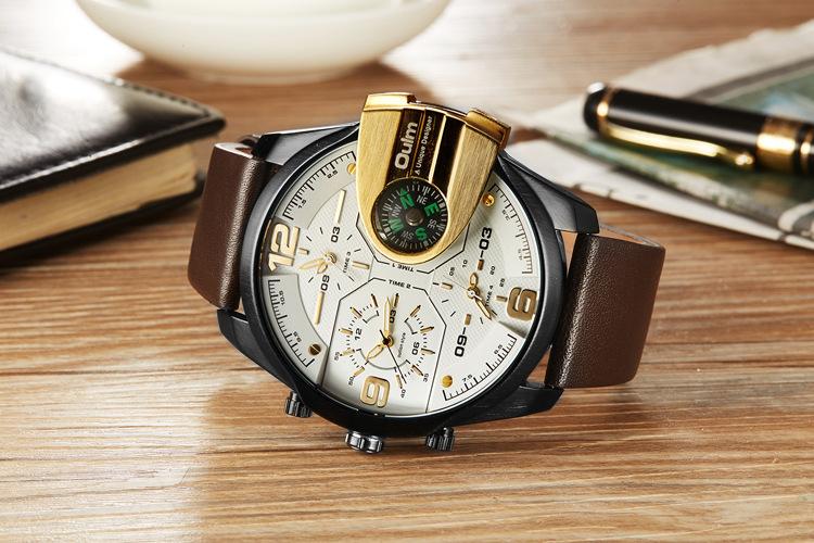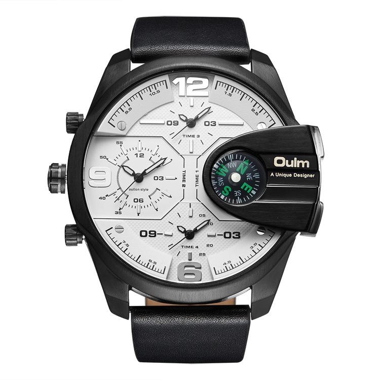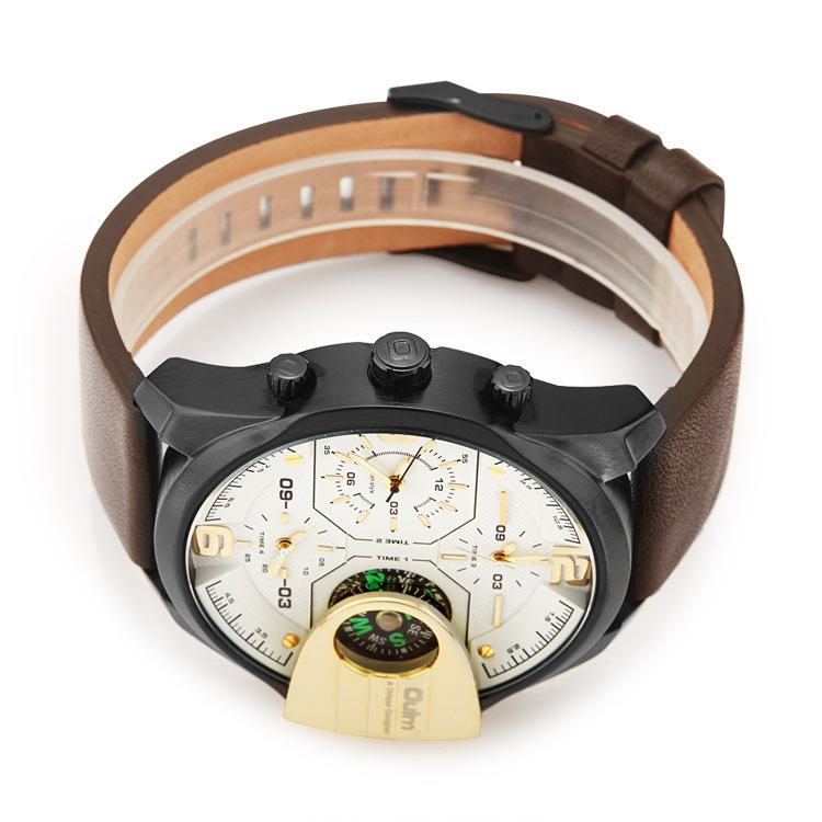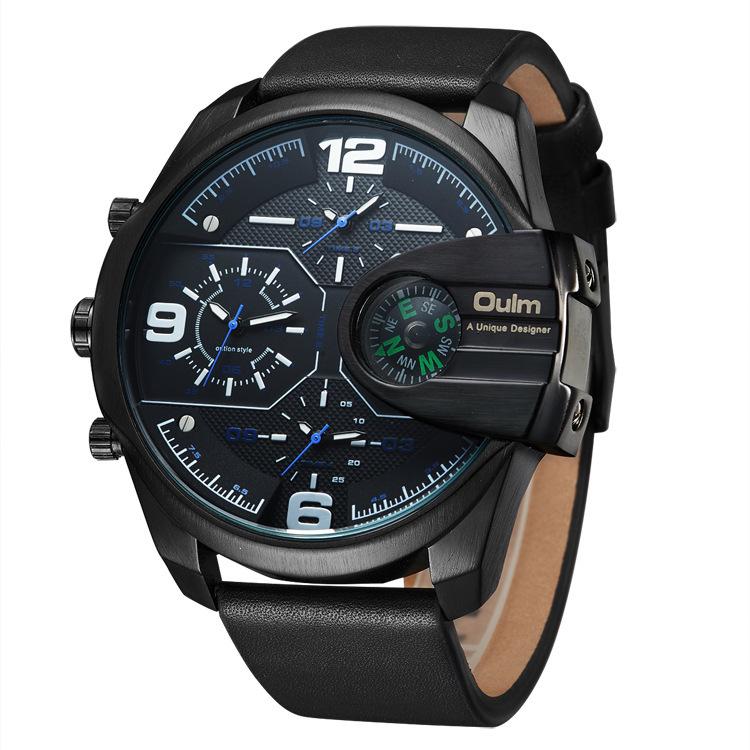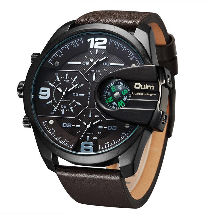 Oulm Suministro de Comercio Exterior Reloj de Cuarzo de Moda para Hombre con Tres Movimientos, Brújula, Resistente al Agua, 3790 Esfera Grande