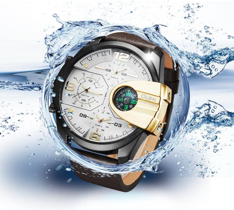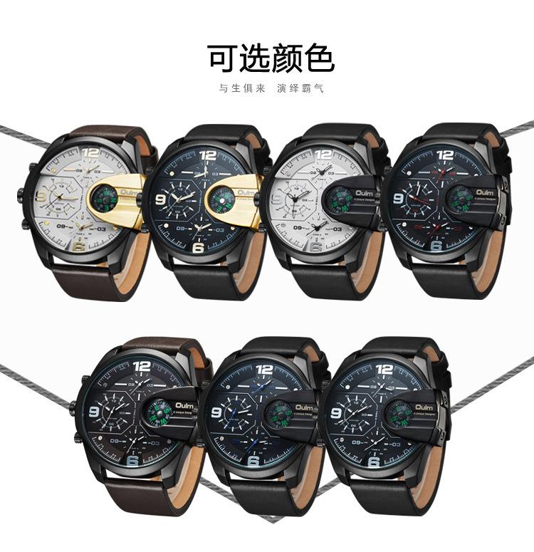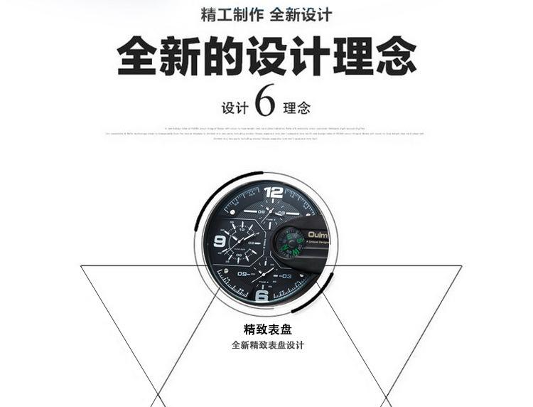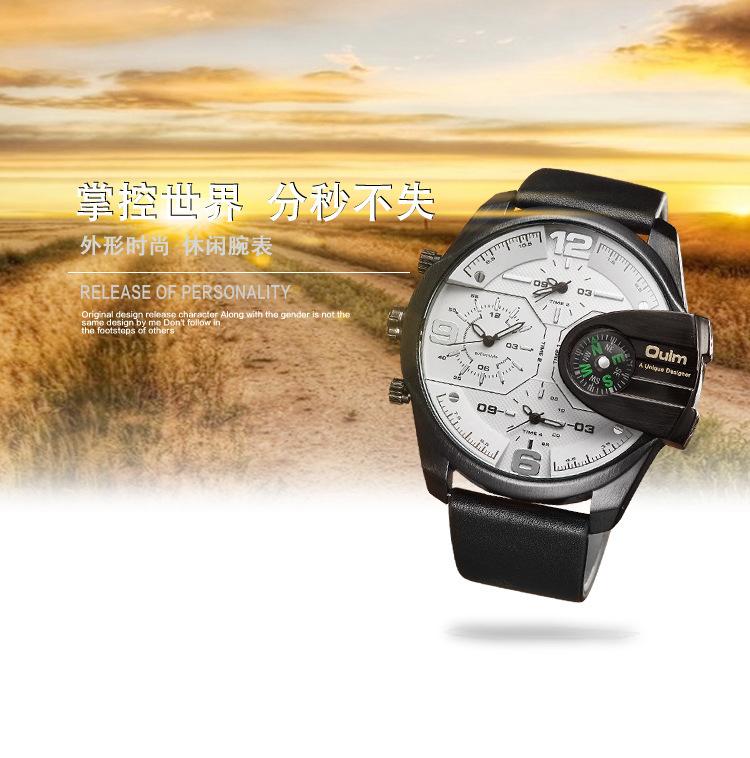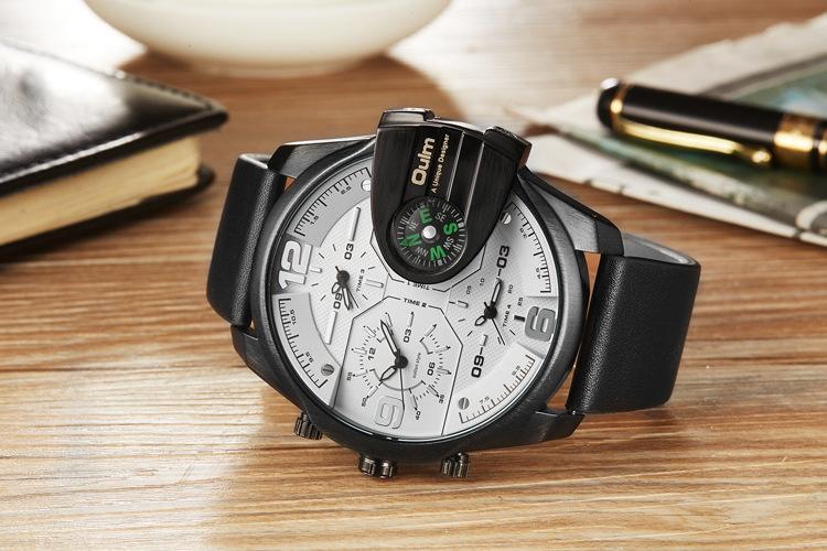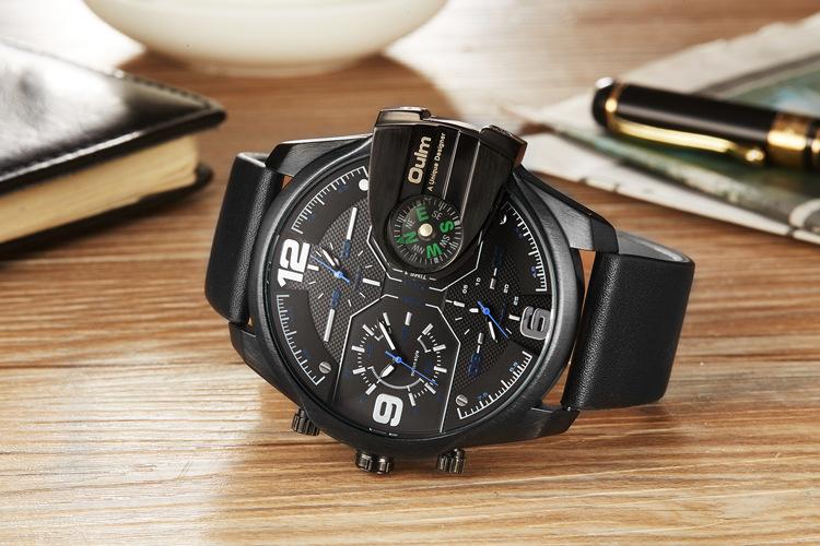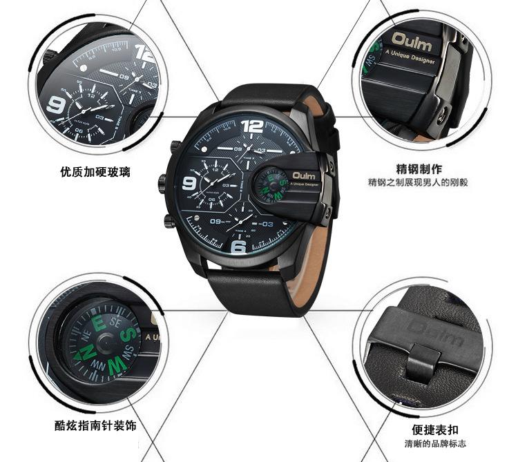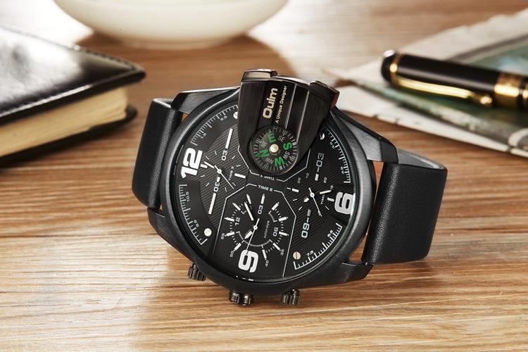 Oulm Suministro de Comercio Exterior Reloj de Cuarzo de Moda para Hombre con Tres Movimientos, Brújula, Resistente al Agua, 3790 Esfera Grande