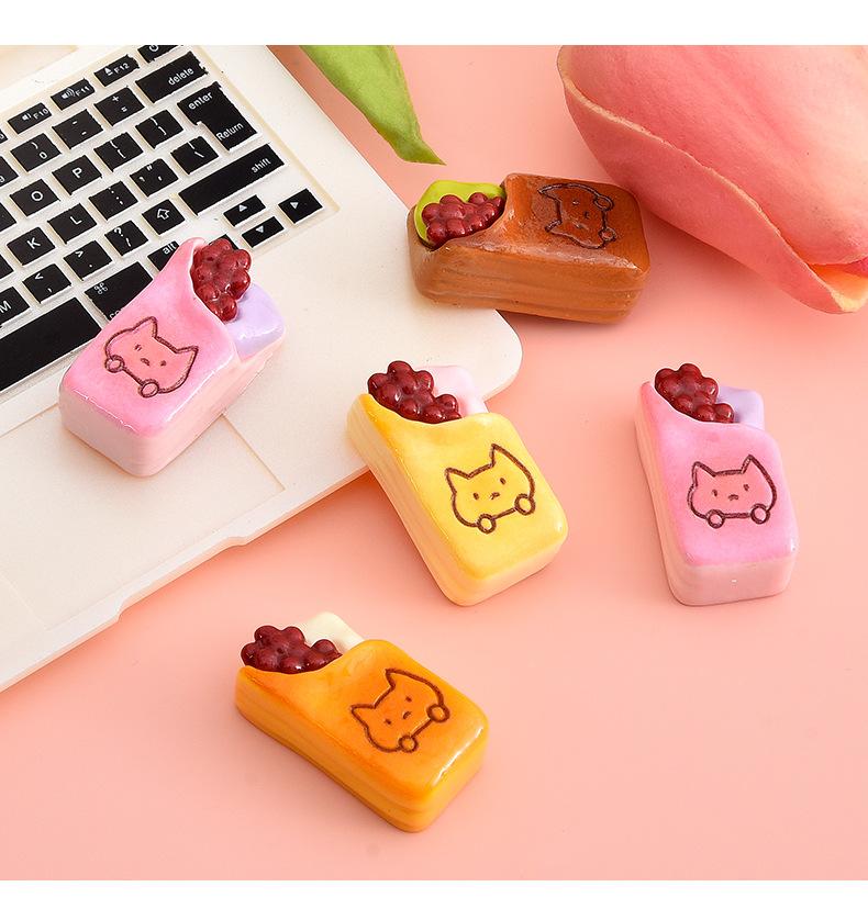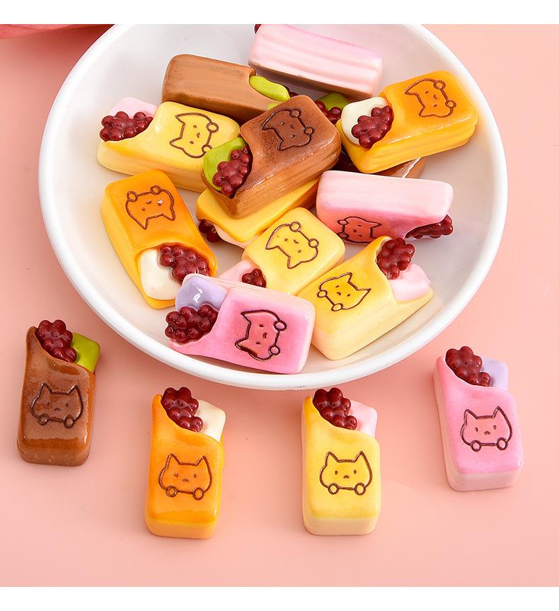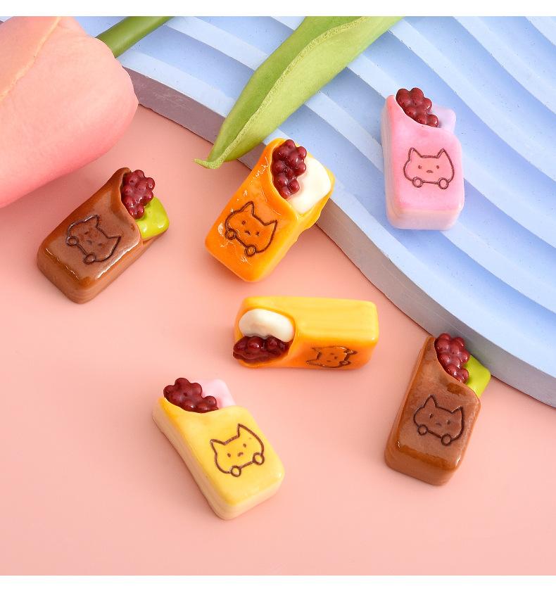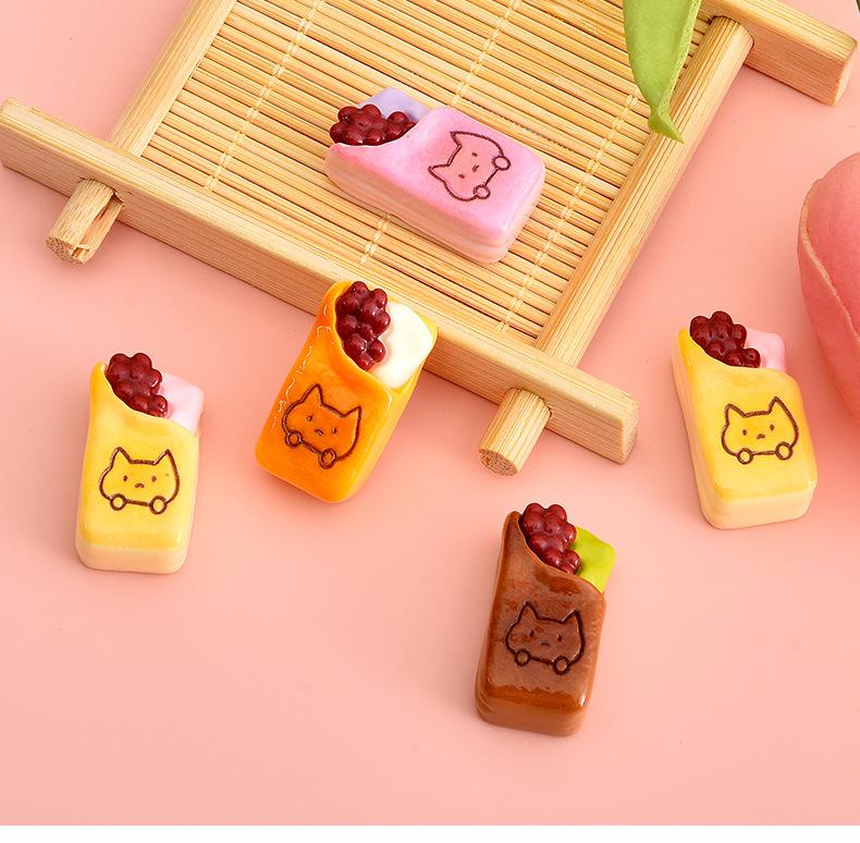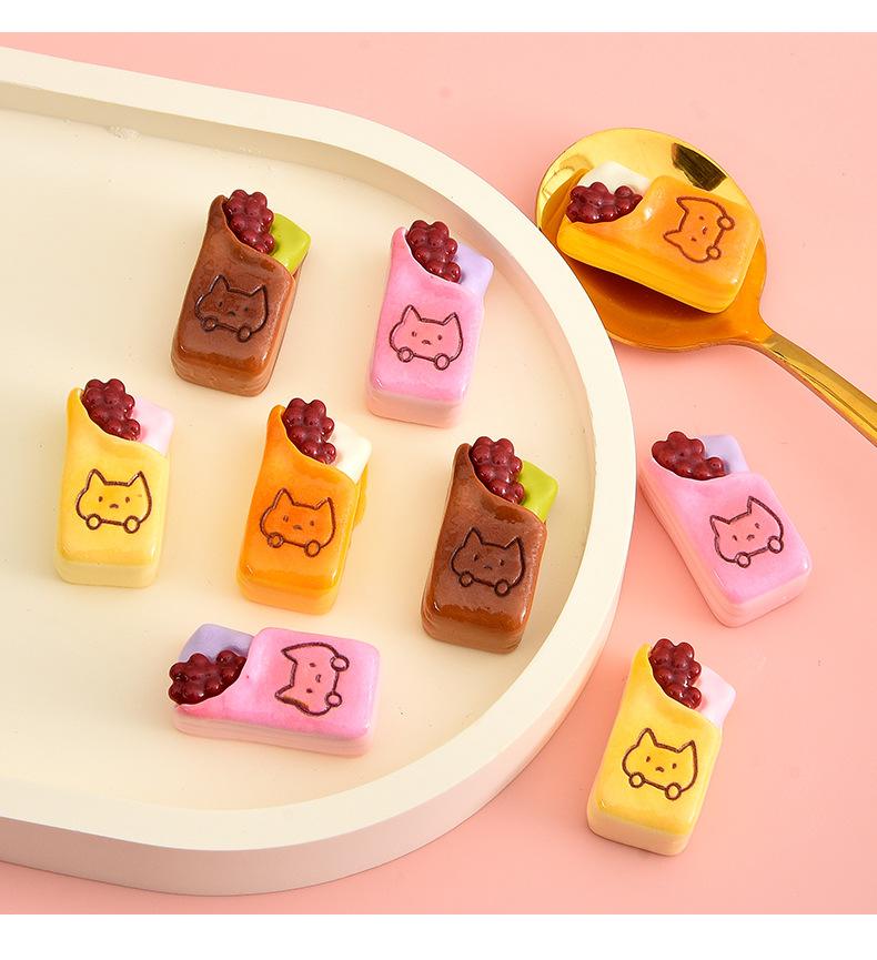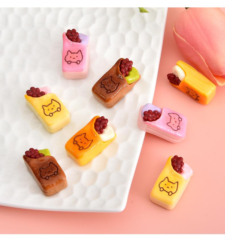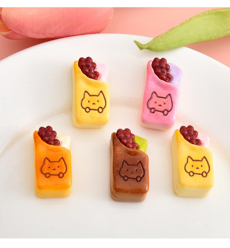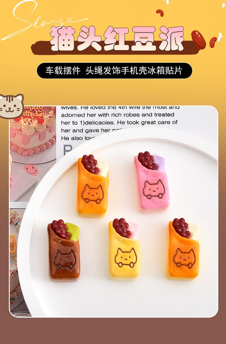 Pastel de arroz con forma de gatito, pastel de frijoles rojos, comida, juego de bricolaje, crema, pegamento, carcasa para teléfono móvil, tocado, horquilla de resina, pequeños accesorios, decoración de joyas