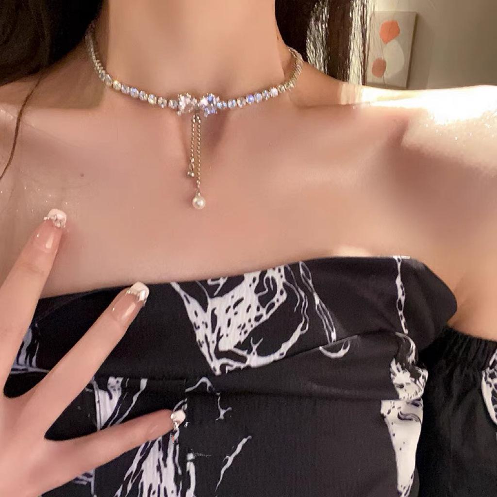 Collar de lazo de entrada de lujo para mujer de nicho 2024, nuevo collar de cadena de clavícula de estilo explosivo de alta gama.