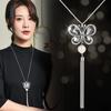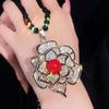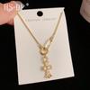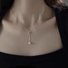 Collar largo cilíndrico de oro rosa estilo coreano con diamantes calados, moderno, combinable con todo, elegante, cadena para suéter, joyería de personalidad femenina