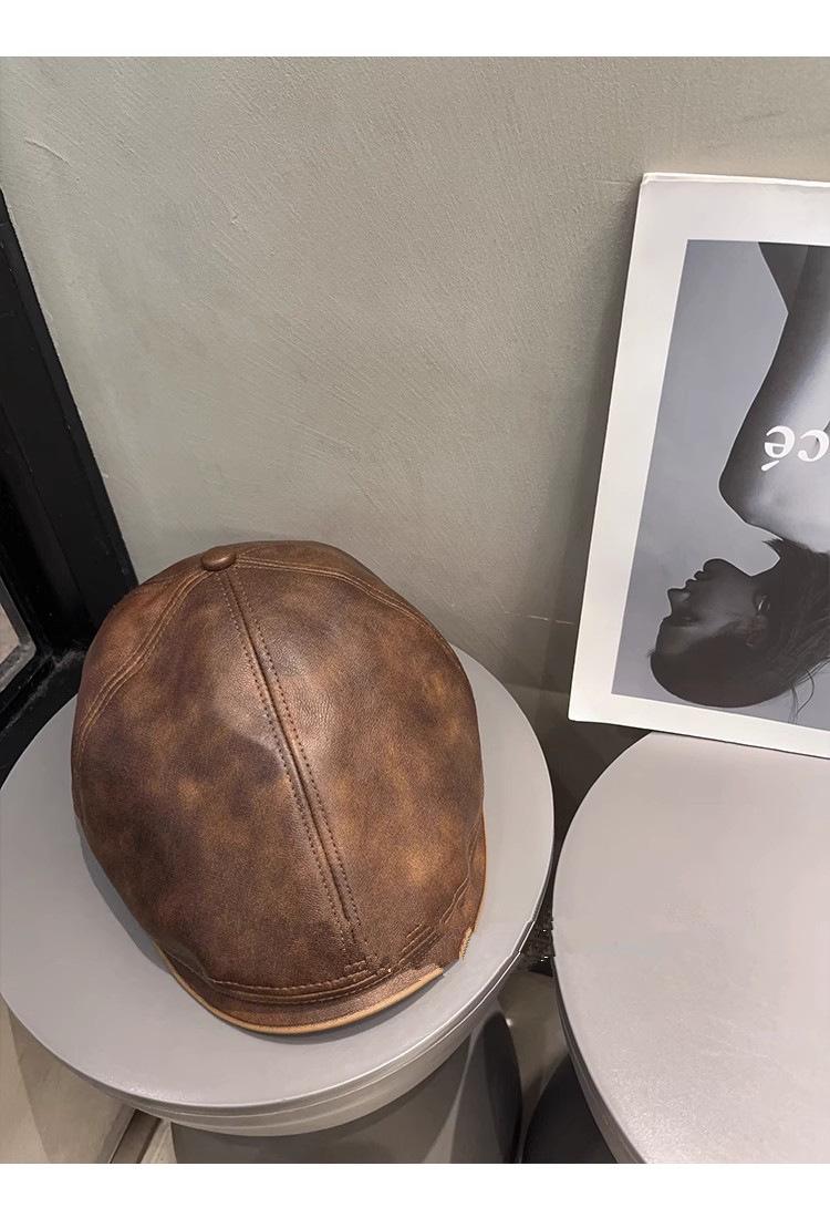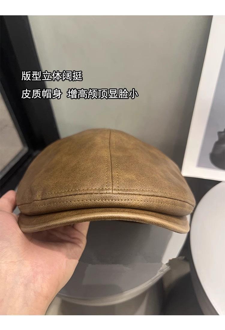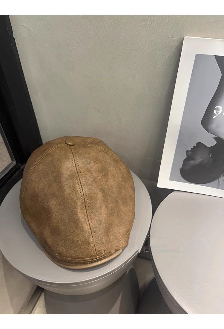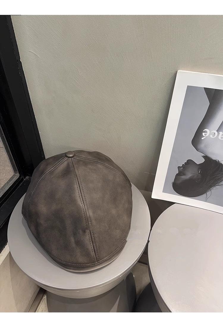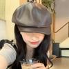Boina de cuero estilo K para mujer, con gran circunferencia de cabeza, versátil, cálida, sencilla, estilo retro literario, con un pequeño frente que deja ver el rostro, para otoño e invierno.