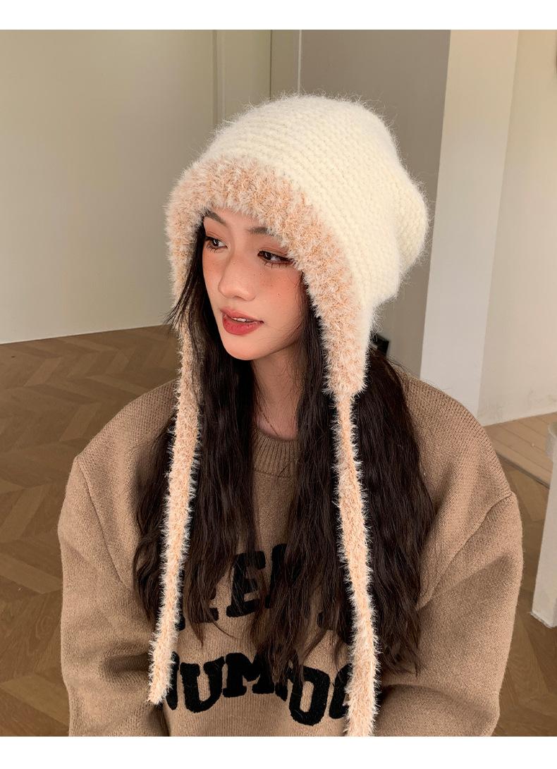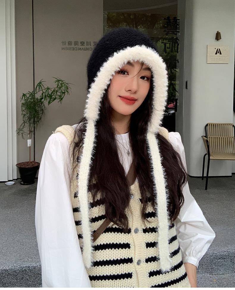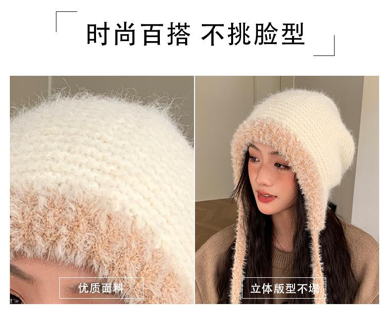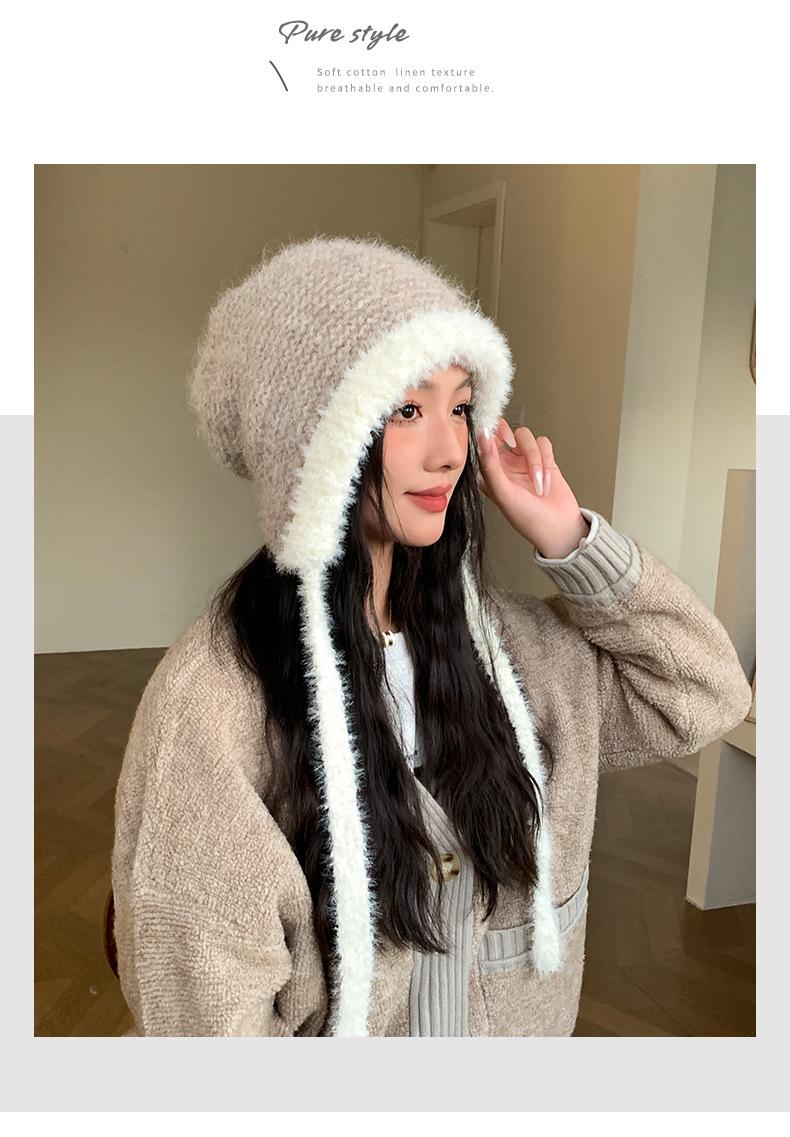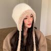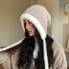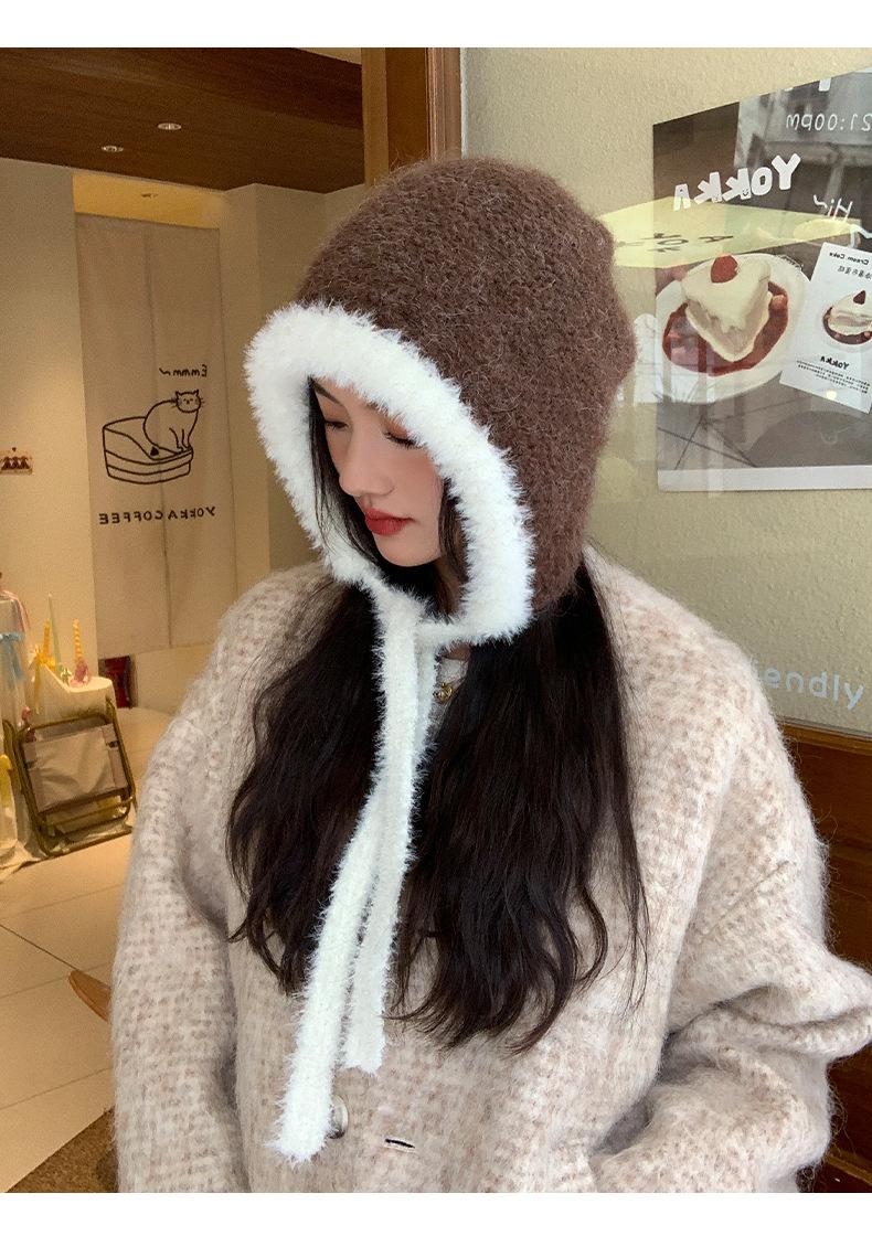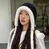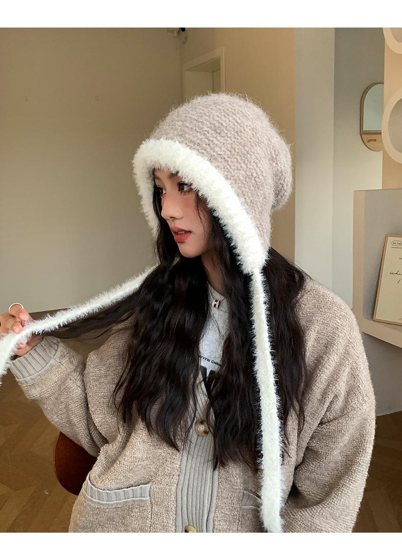 Gorro de estilo coreano para otoño e invierno, cálido y resistente al frío, para mujer, con gran cabeza, de felpa y protección para las orejas, de lana tejida, tipo bolsa.