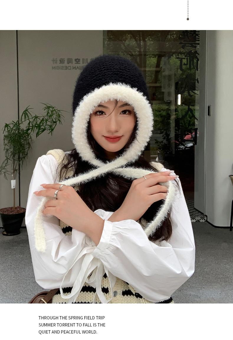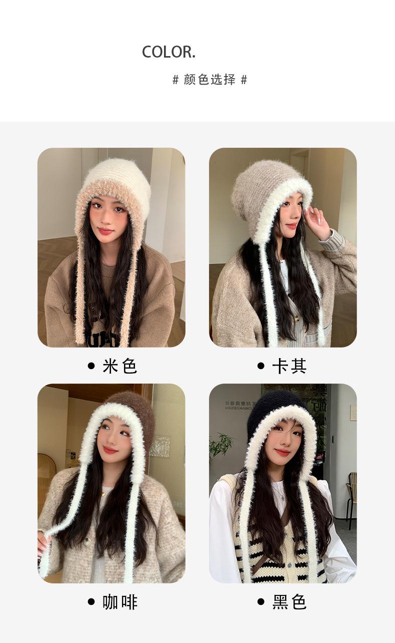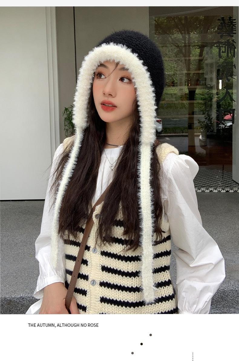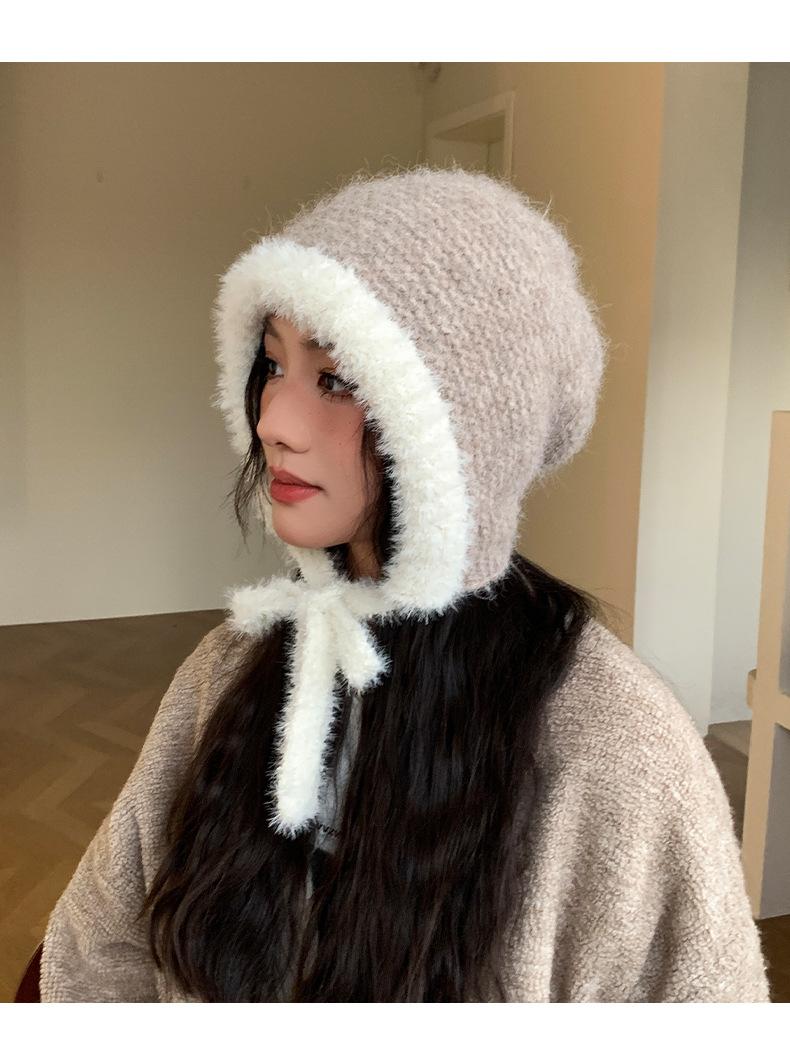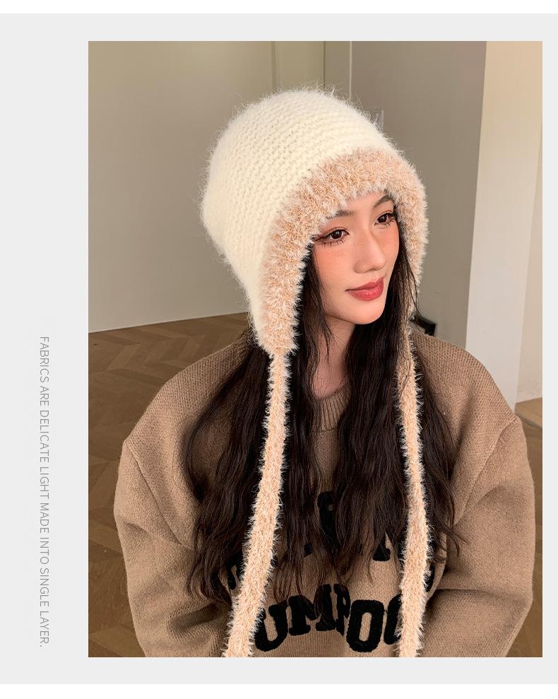 Gorro de estilo coreano para otoño e invierno, cálido y resistente al frío, para mujer, con gran cabeza, de felpa y protección para las orejas, de lana tejida, tipo bolsa.