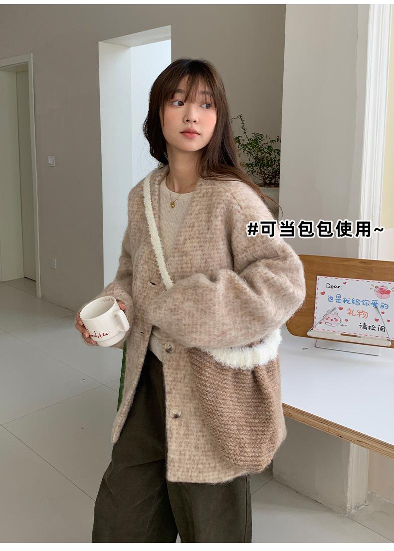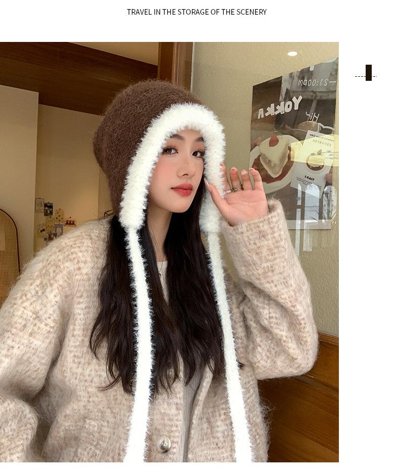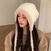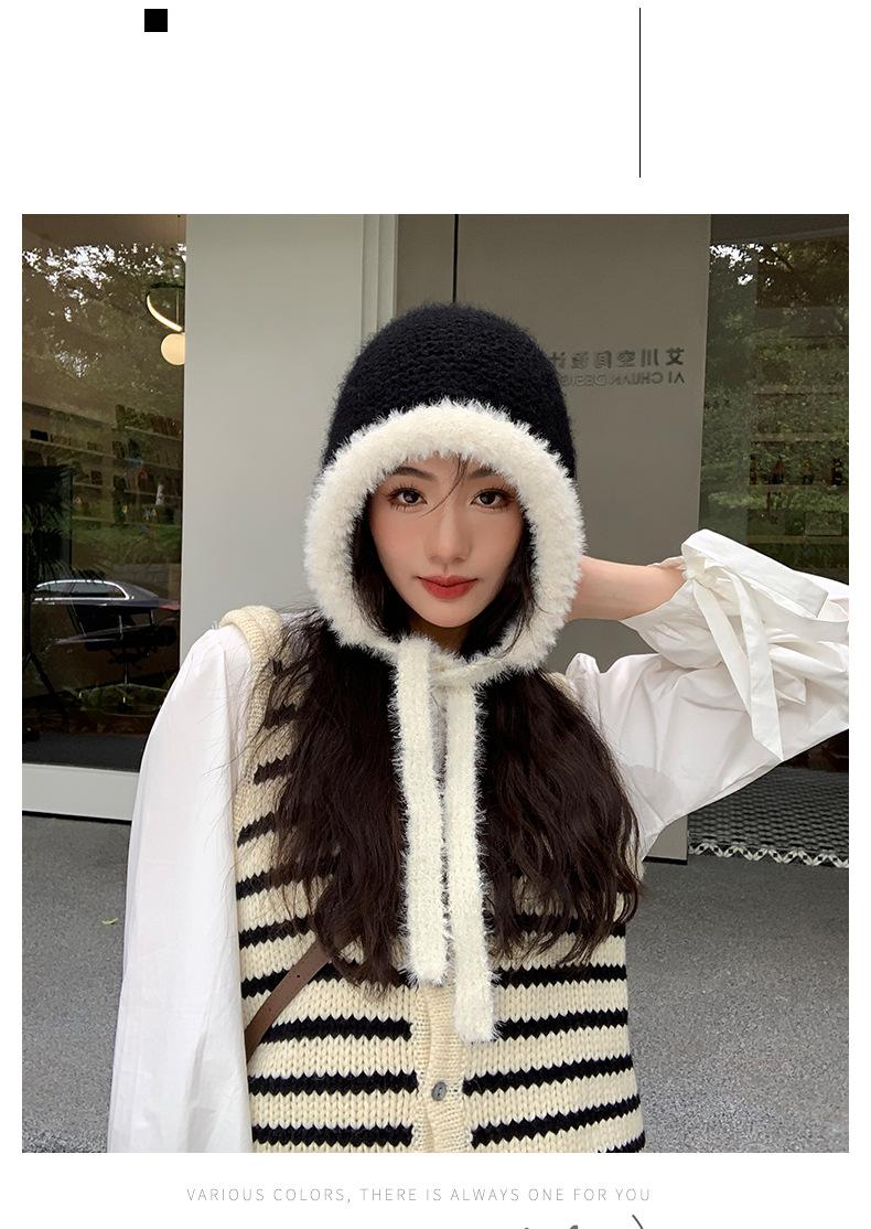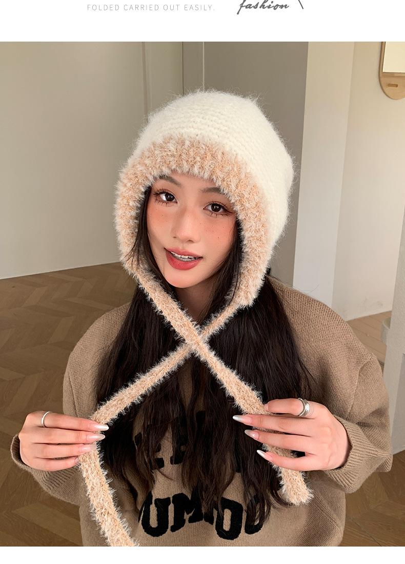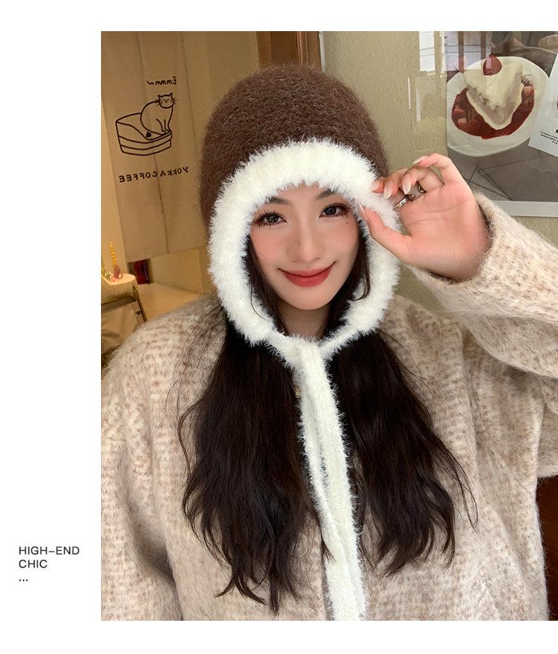 Gorro de estilo coreano para otoño e invierno, cálido y resistente al frío, para mujer, con gran cabeza, de felpa y protección para las orejas, de lana tejida, tipo bolsa.
