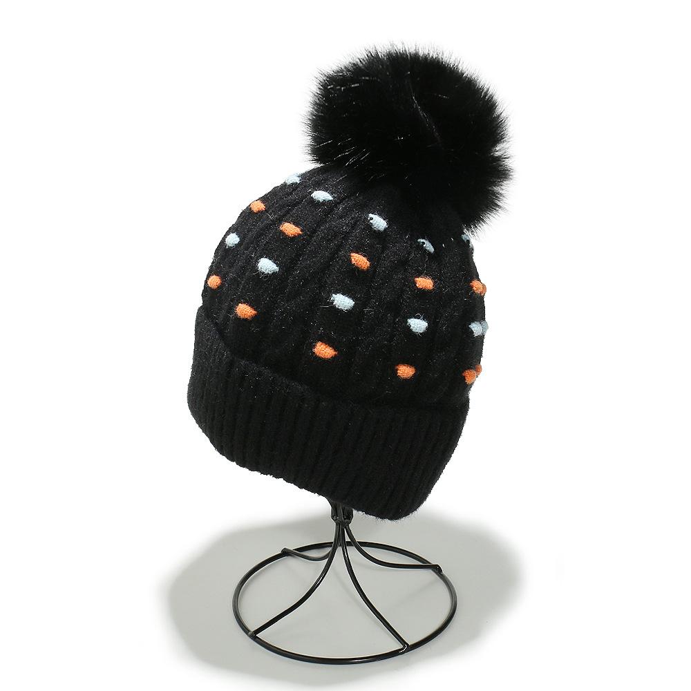 2025 Nuevo Sombrero de Lana de Otoño e Invierno con Forro Polar Engrosado Cálido Sombrero de Invierno Moderno Versátil Sombrero Tejido Jacquard de Lunares para Mujer