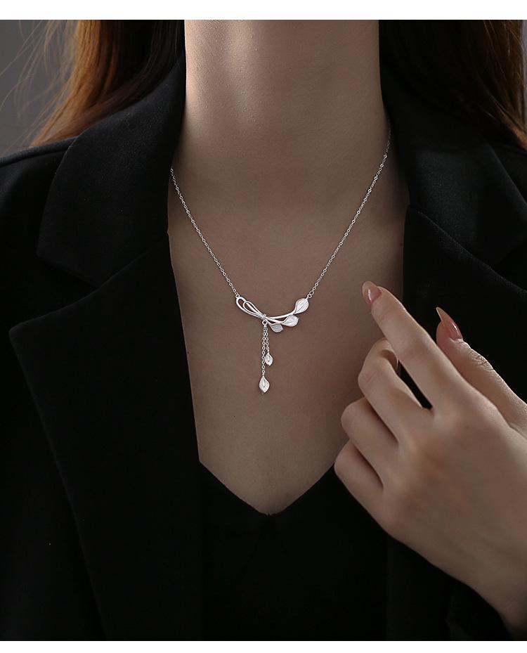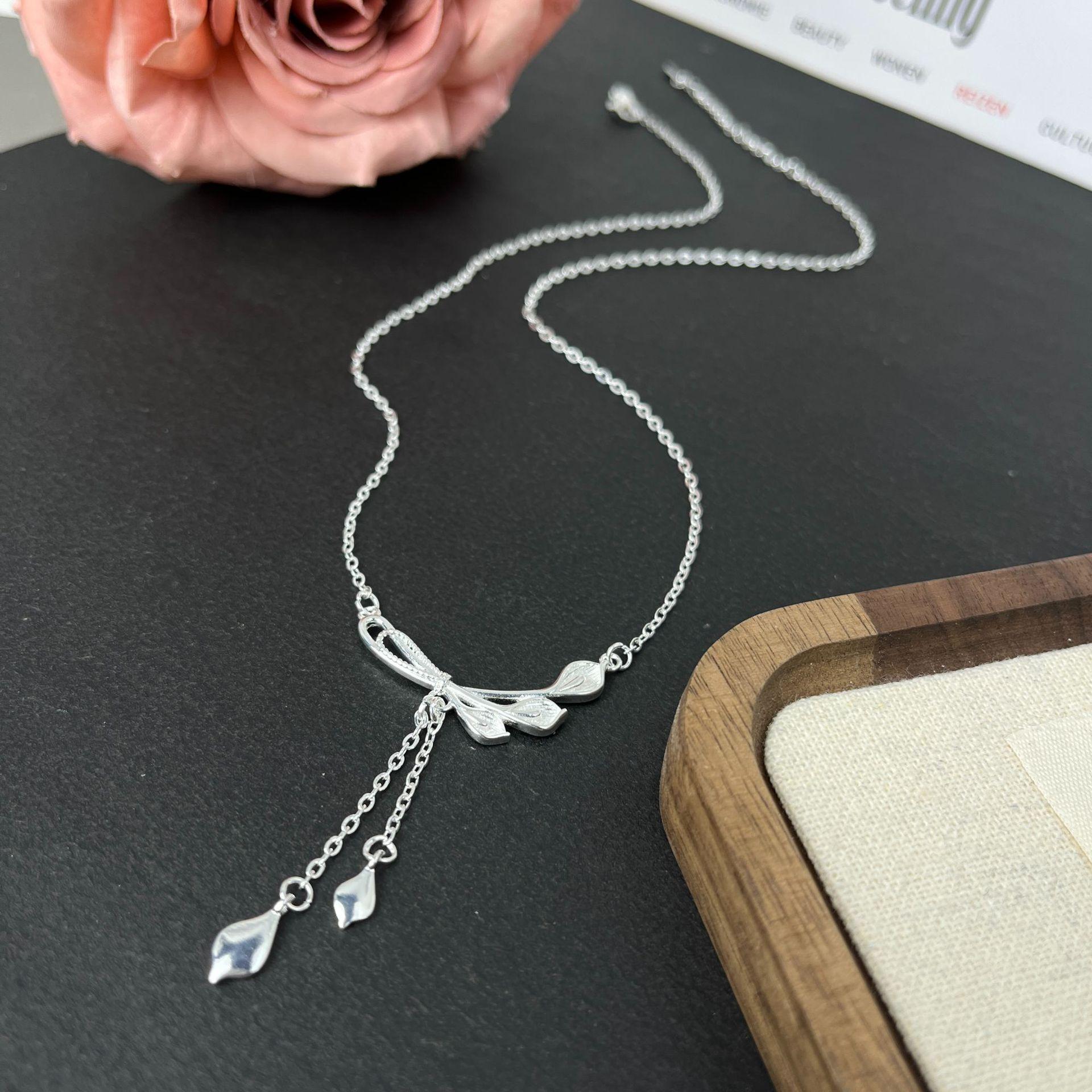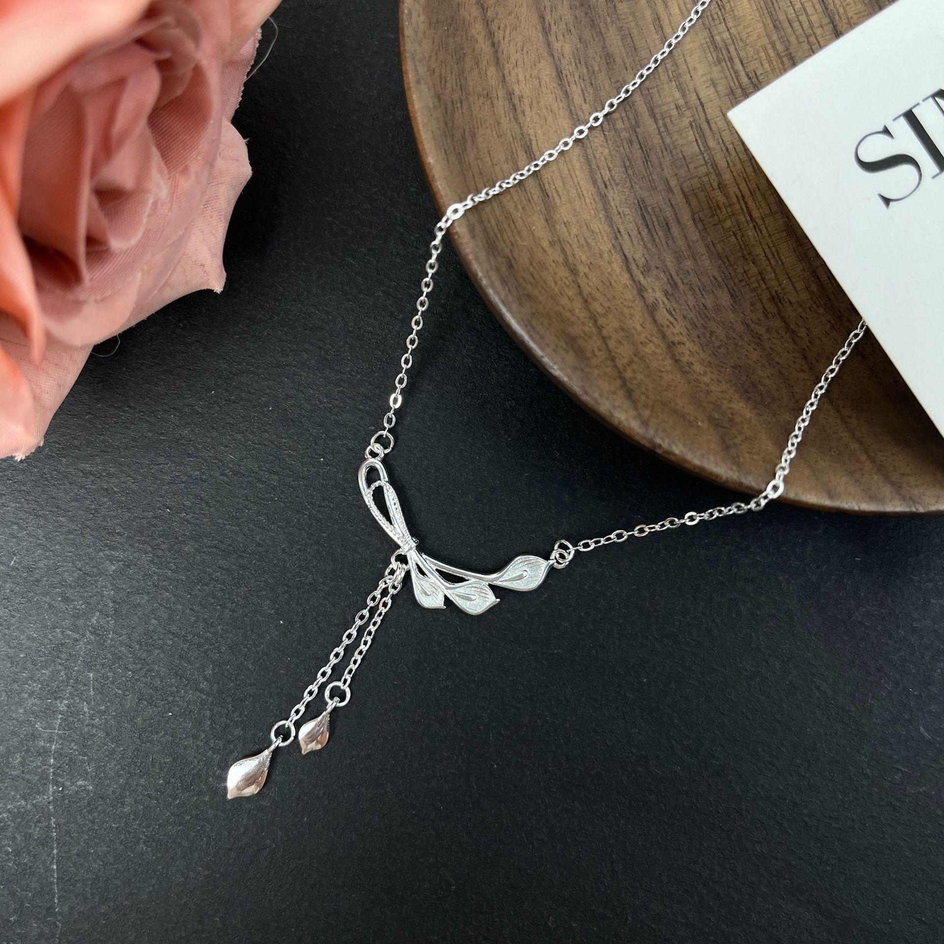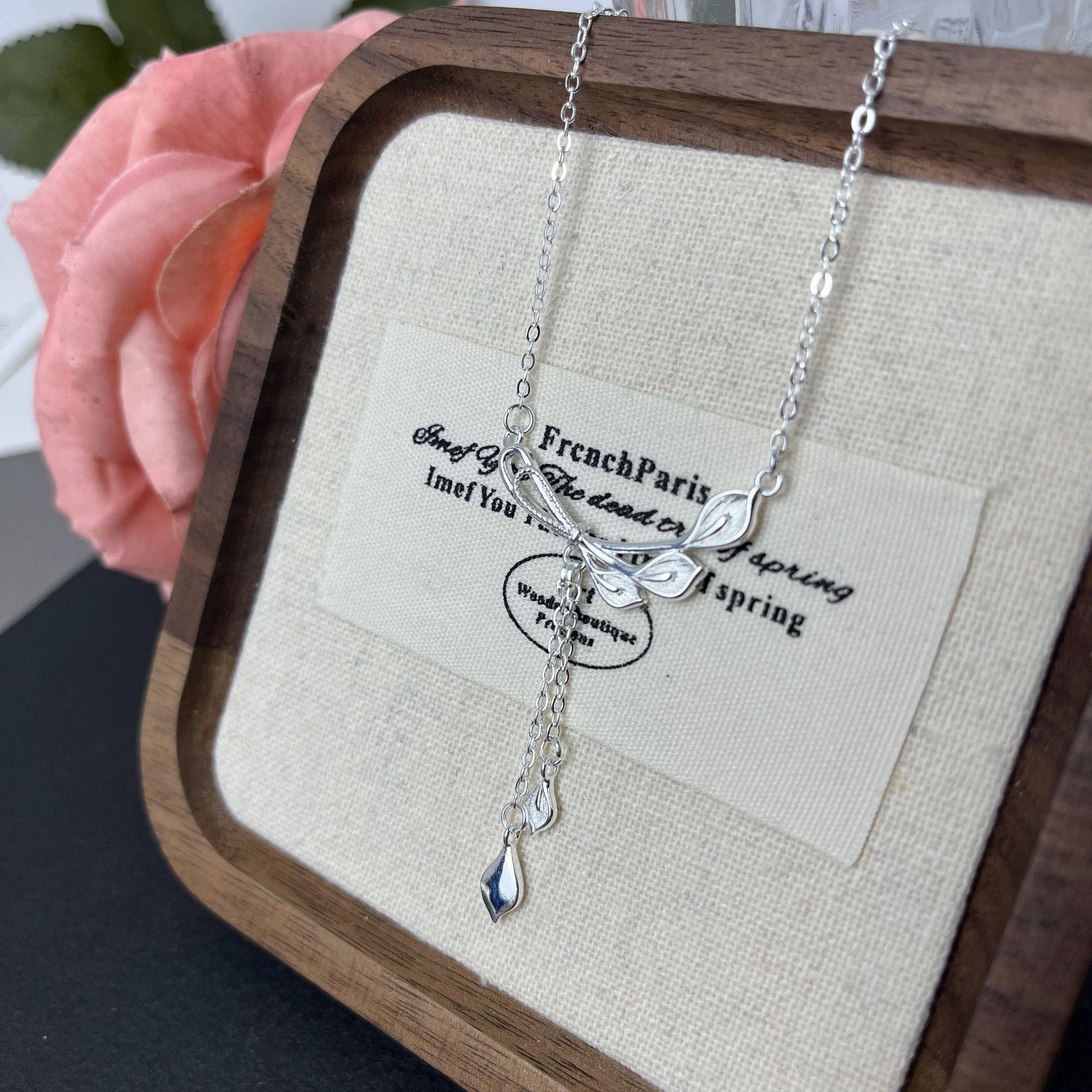 Nuevo Collar de Borla Cola de Pavo Real Flor Calla para Mujer Lujo Ligero Nicho Elegante Versátil Cadena Clavícula Venta al por Mayor en Vivo