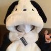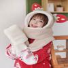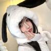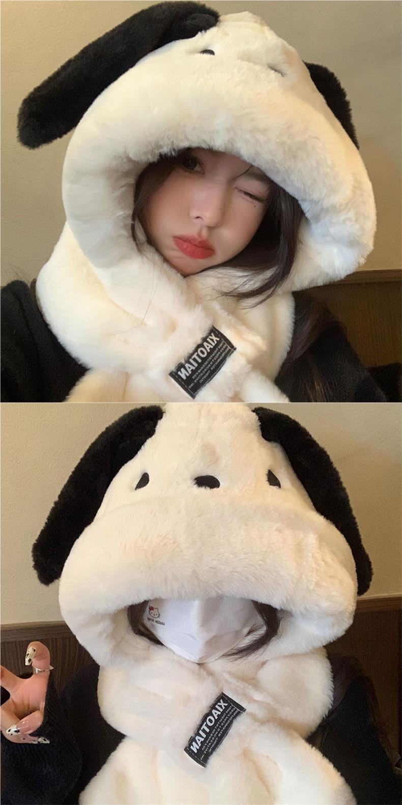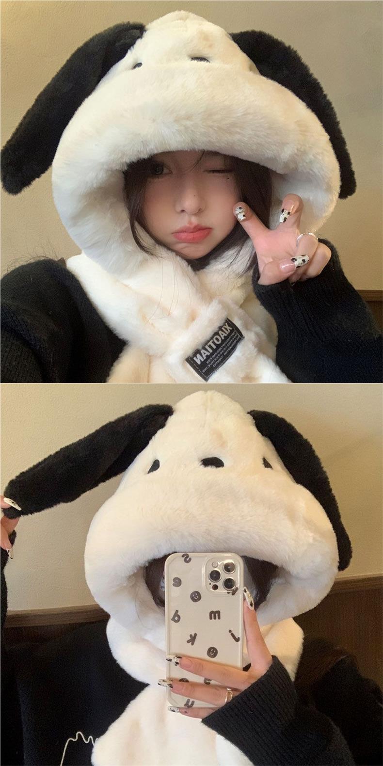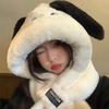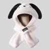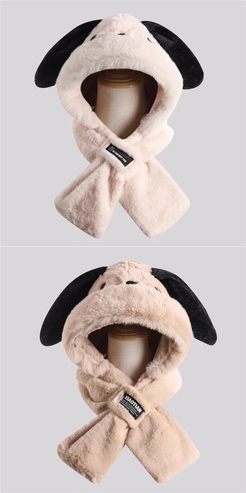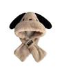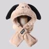 Gorro de peluche con orejas largas de cachorro, bufanda, gorro Lei Feng todo en uno, para mujer, estilo otoño-invierno, con cara visible, pequeño y cálido, conjunto de dos piezas.