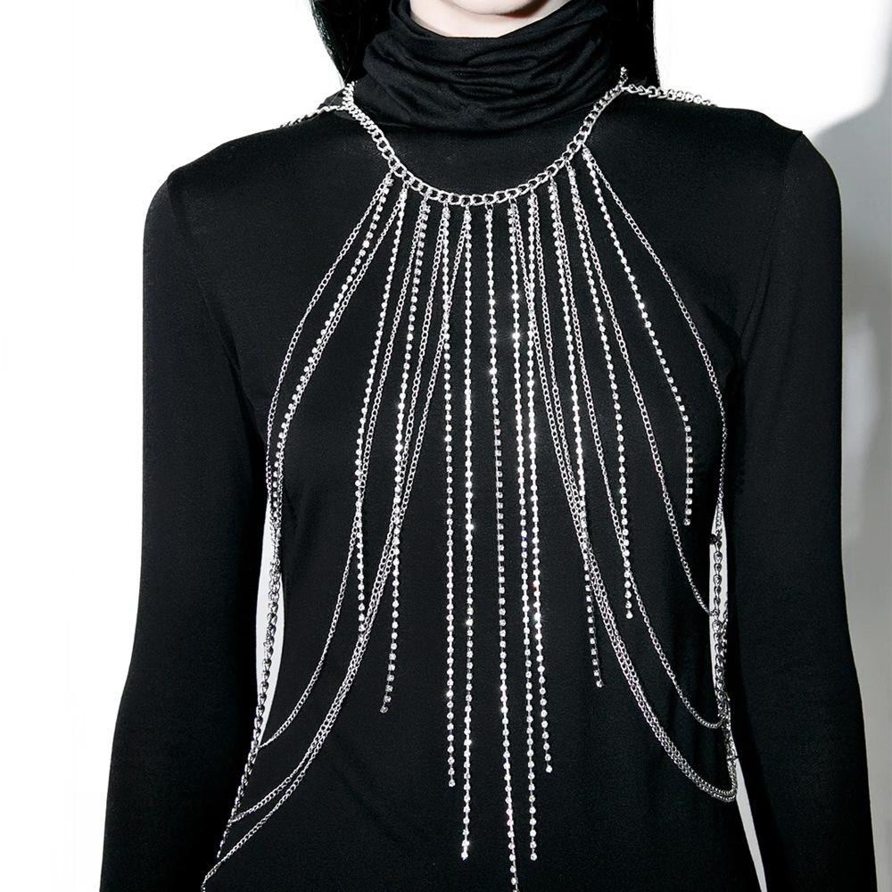 Cadena de bikini con borlas para el pecho, estilo transfronterizo, estilo europeo y americano, con diamantes de imitación, para mujer.