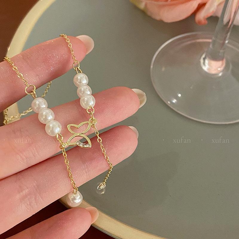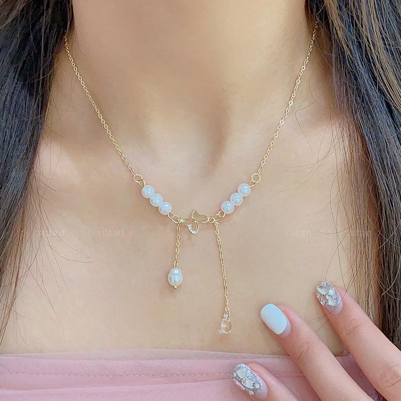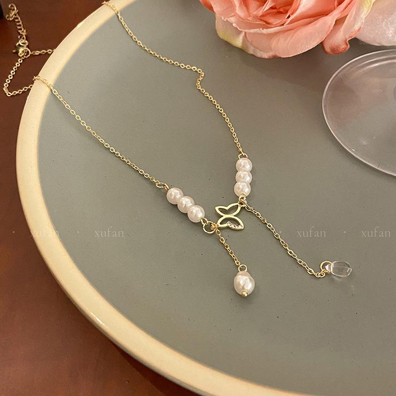 Collar con colgante de mariposa hueca para mujer, estilo retro francés, con temperamento de hada, perla, mariposa, baile, cadena de clavícula, venta al por mayor
