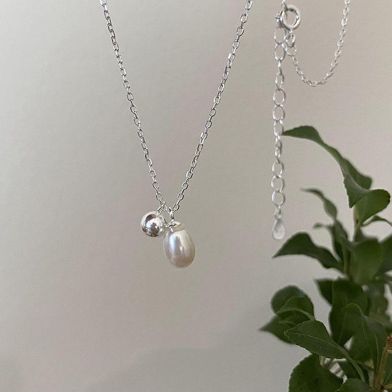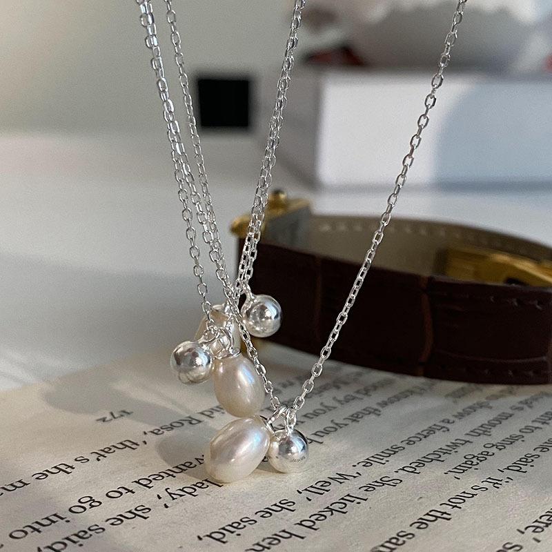 Collar sencillo de perlas con bolitas pequeñas para mujer, moderno y distintivo, de plata S925, con cadena para clavícula y nicho para suéter.