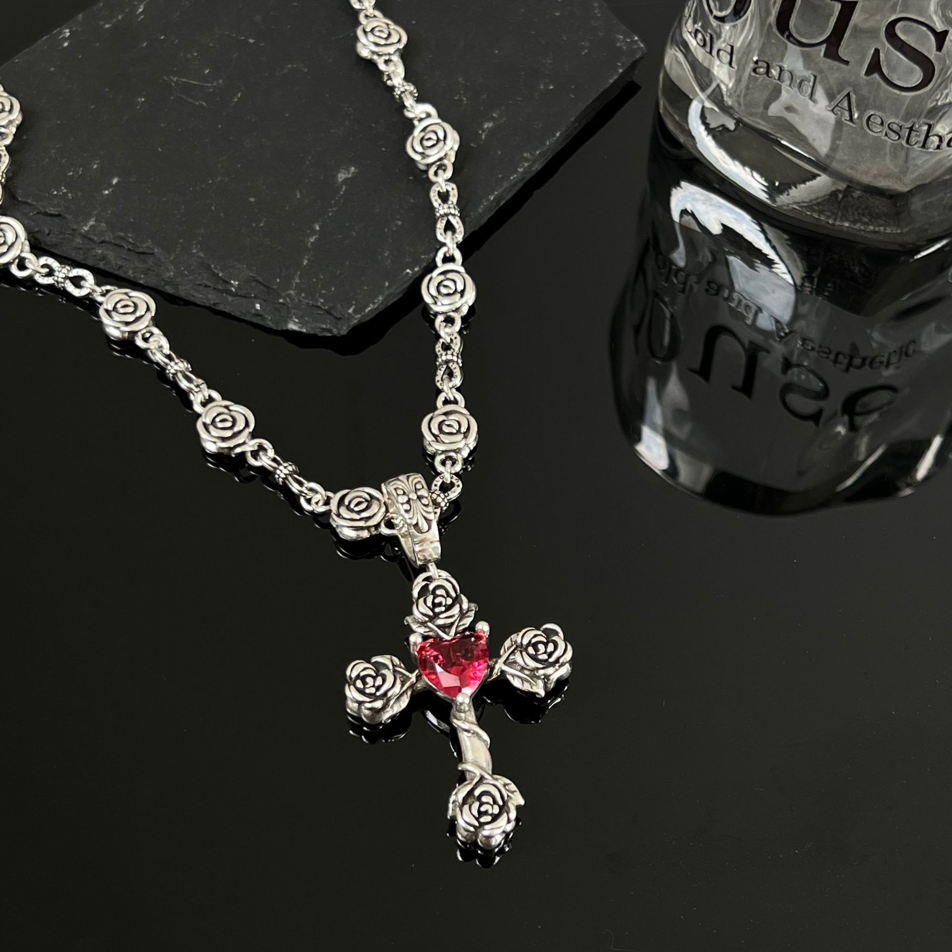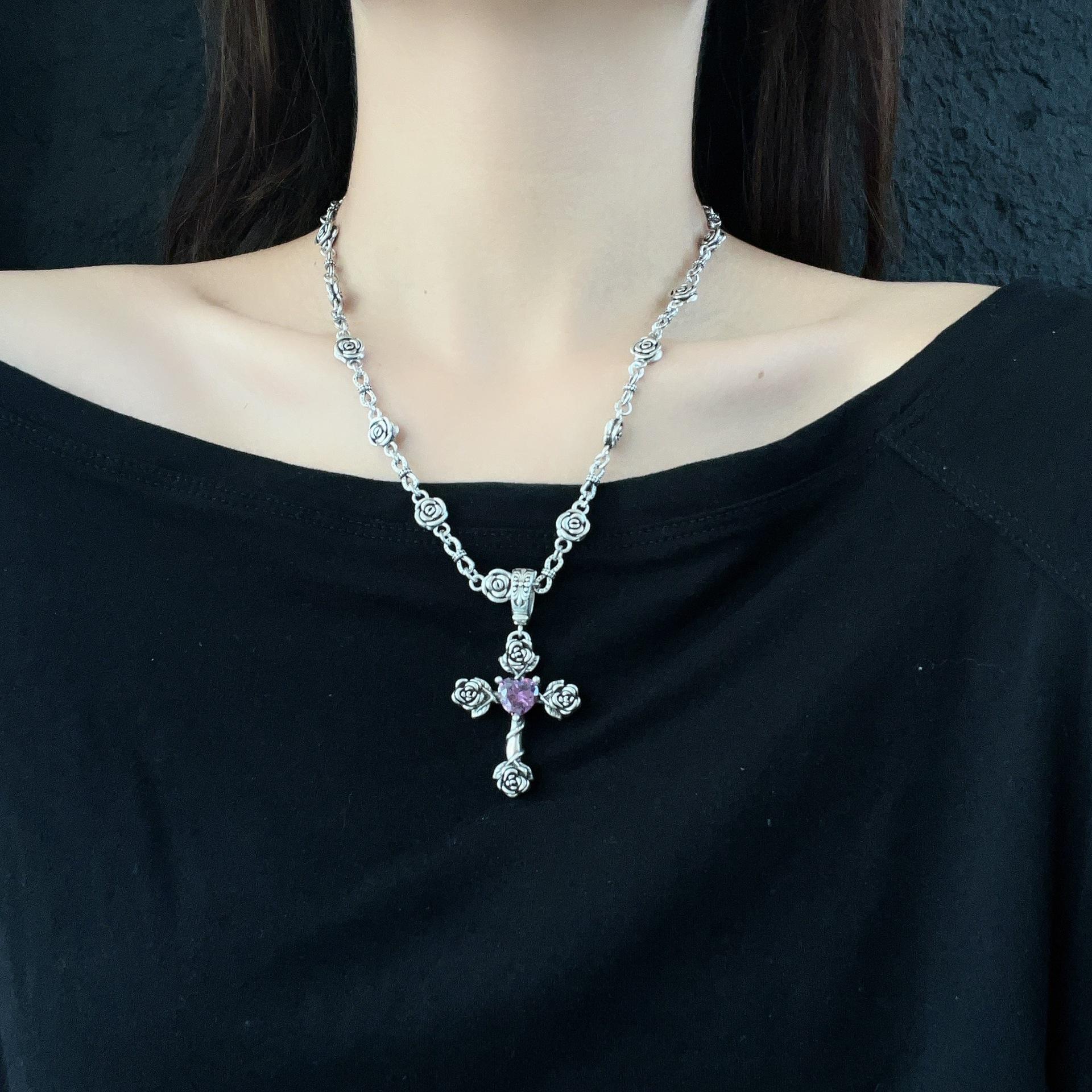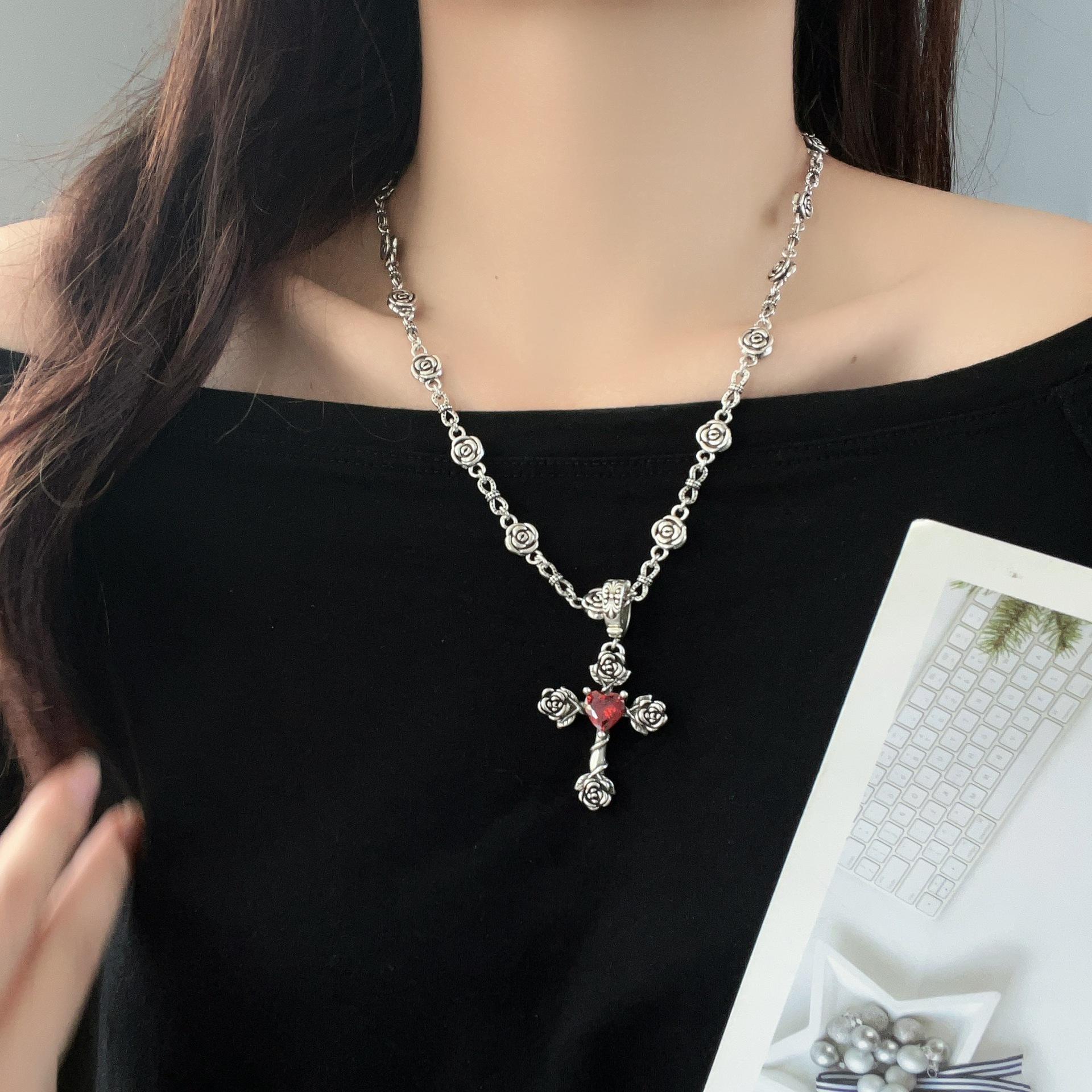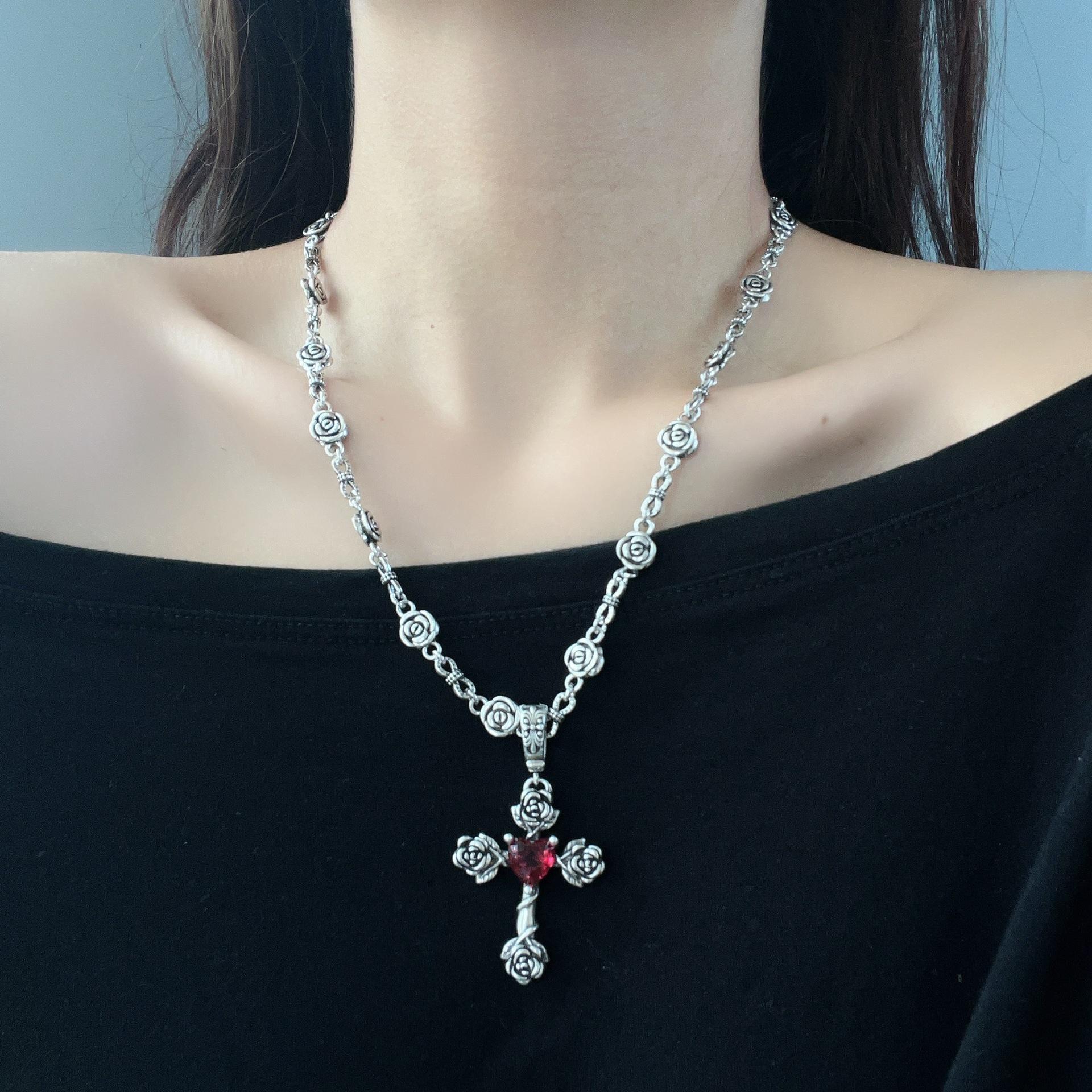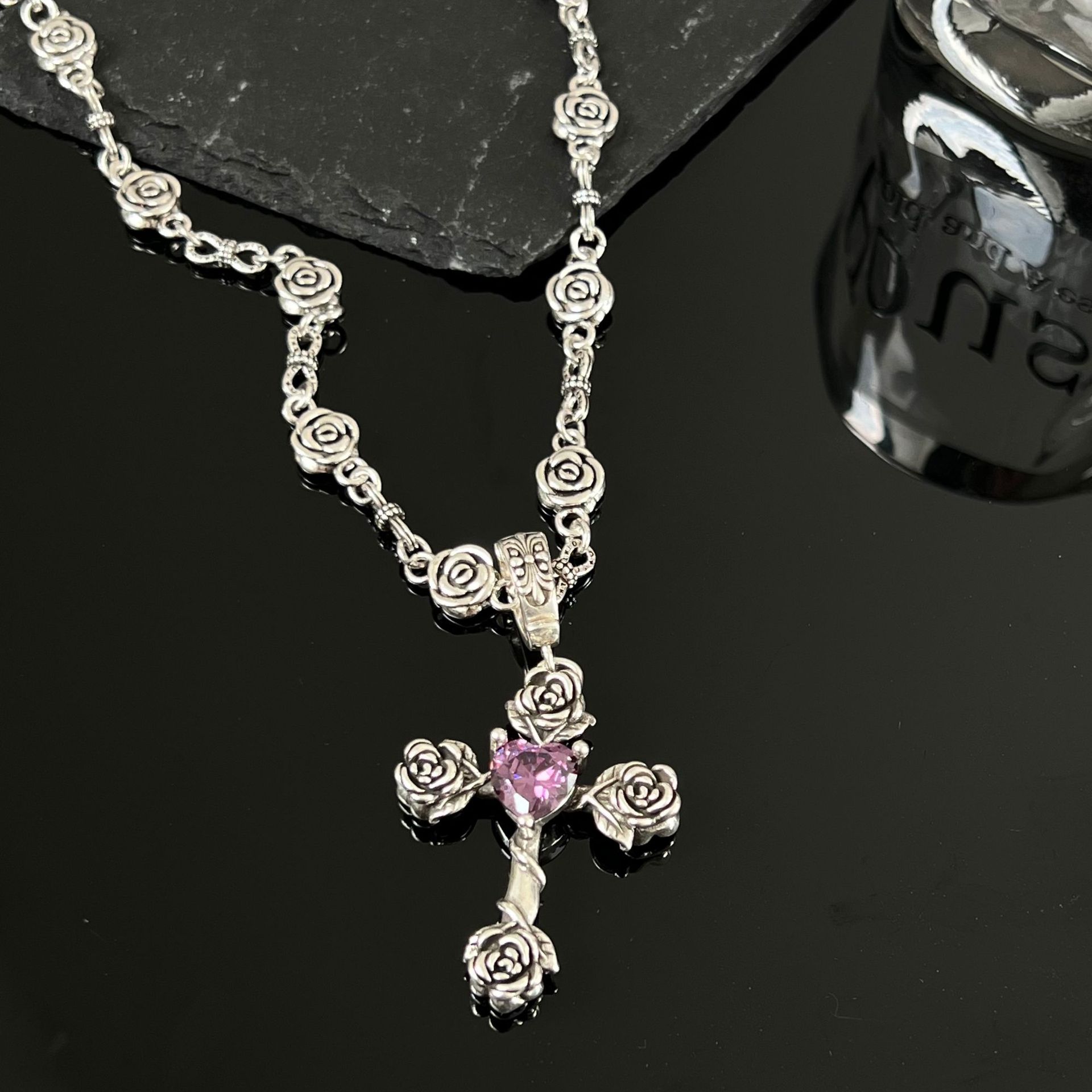 Collar Retro de Alta Gama de Rosa, Collar de Forma de Flor Moderno y Creativo, Exquisita Cadena de Clavícula de Cobre con Circonita Incrustada Tendencia