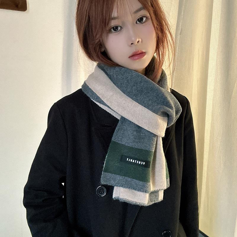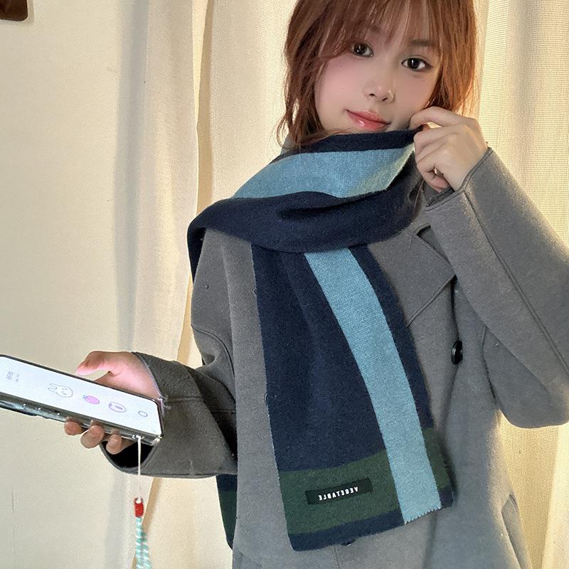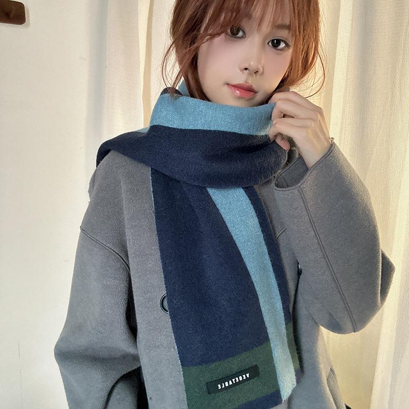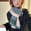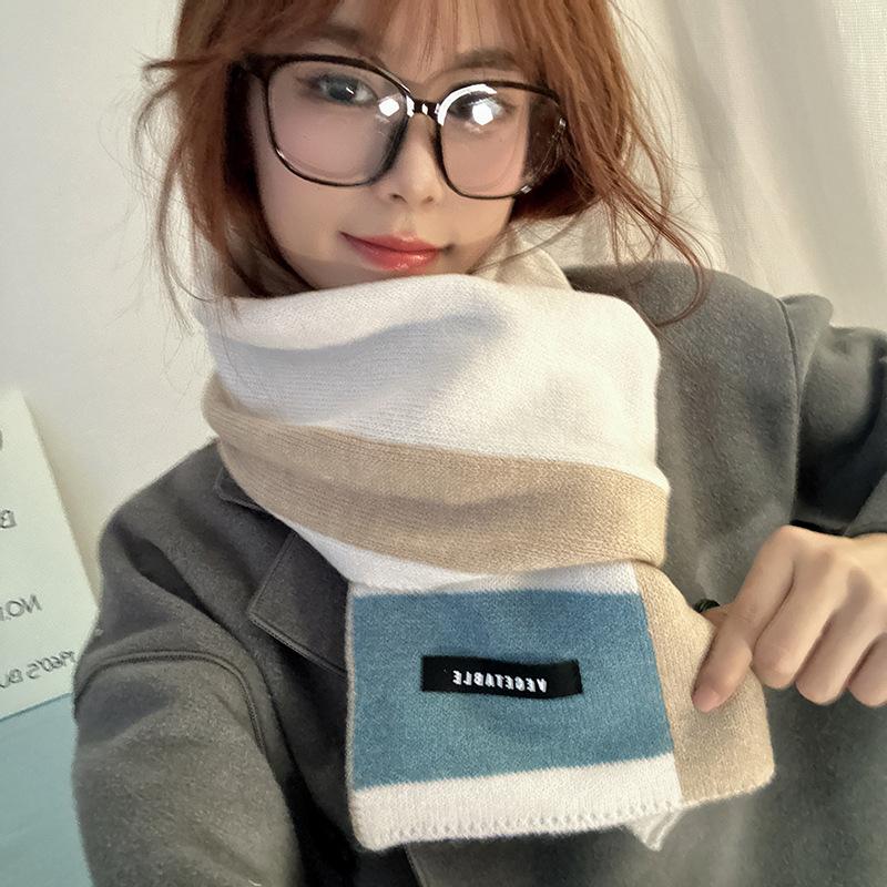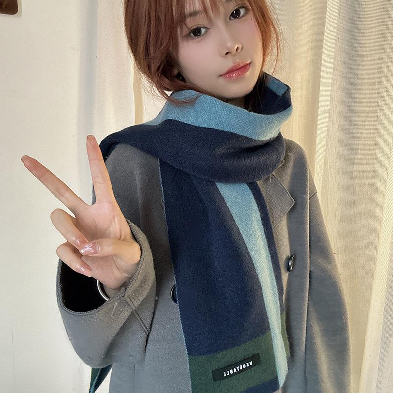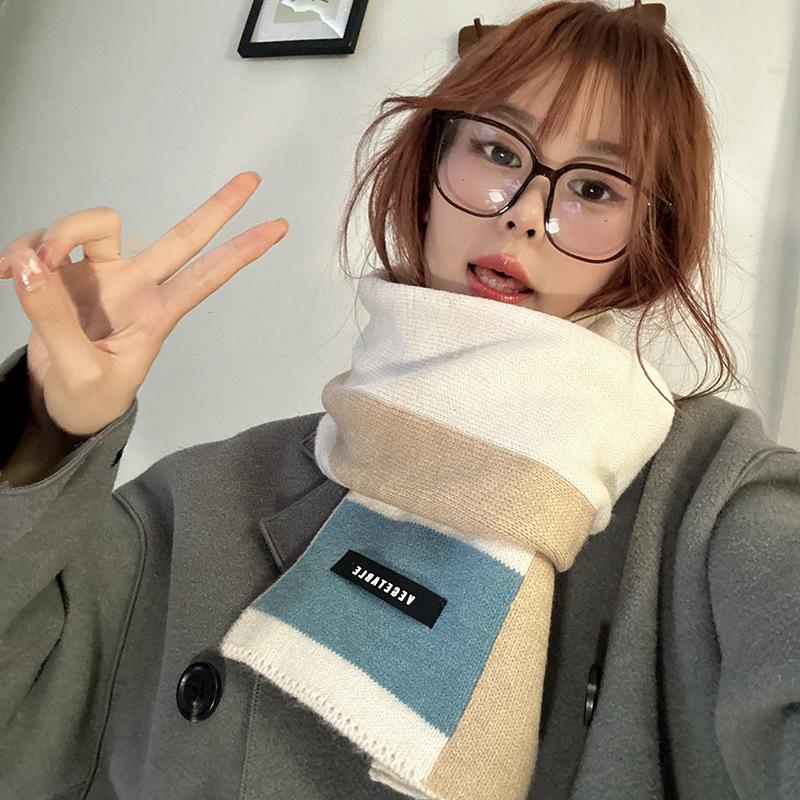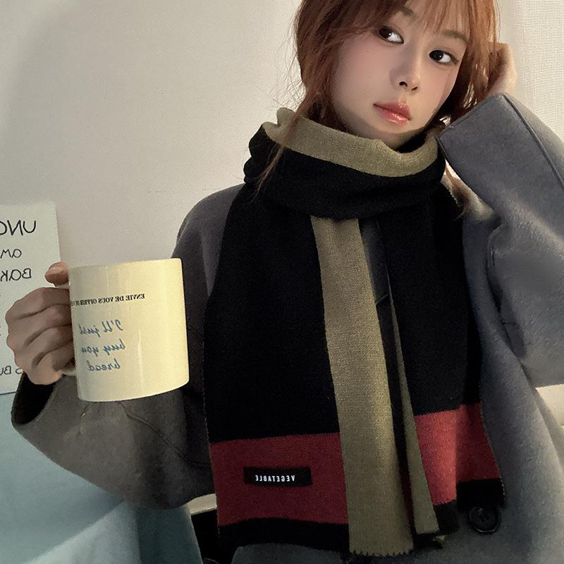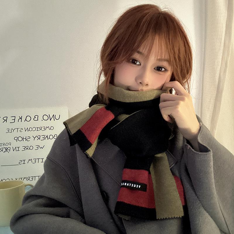 Bufanda de invierno con bloques de colores a cuadros para parejas, cálida, de lana tejida en contraste, de imitación de cachemira de alta calidad, estilo coreano para estudiantes.