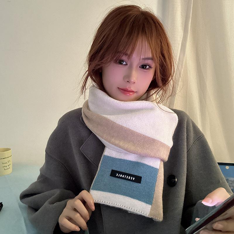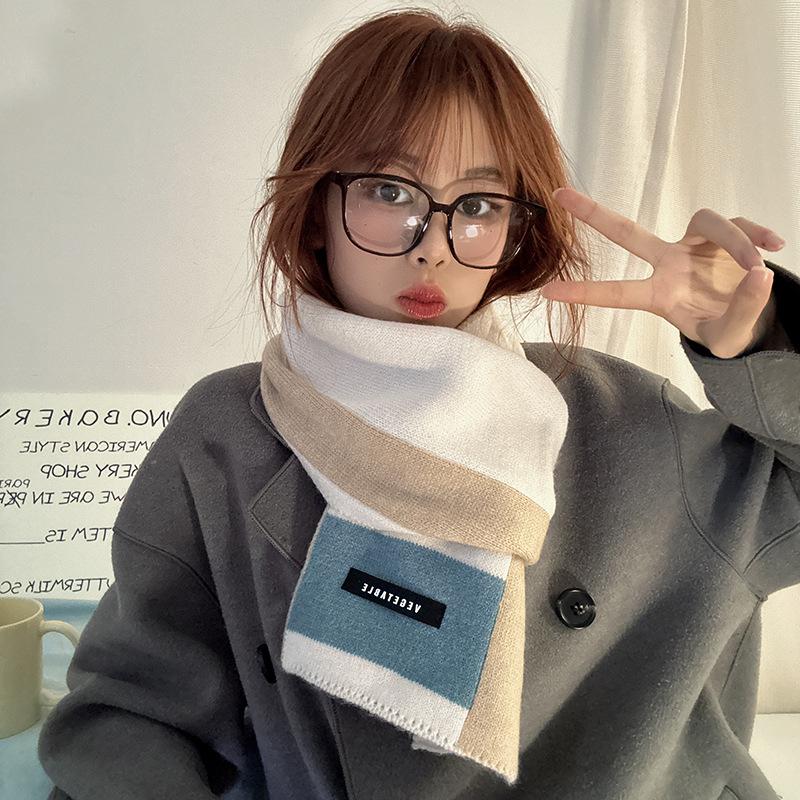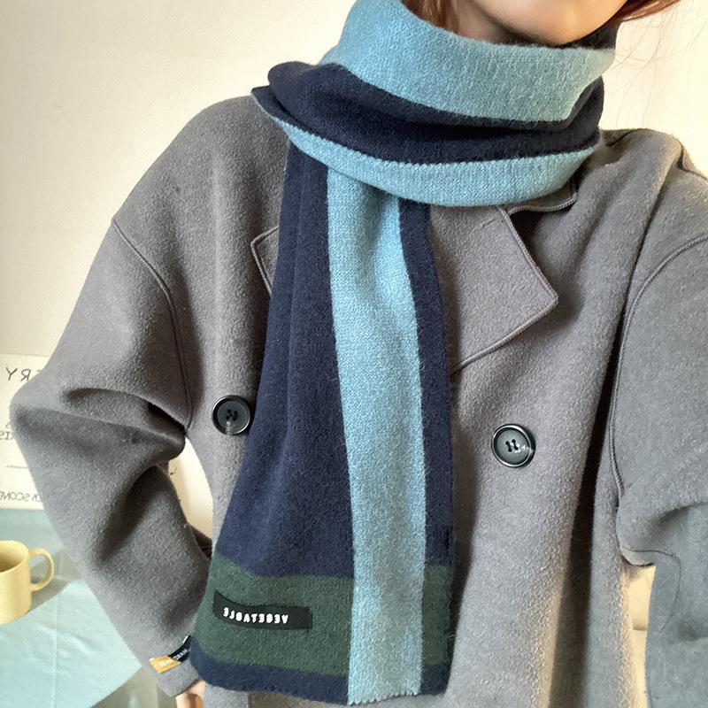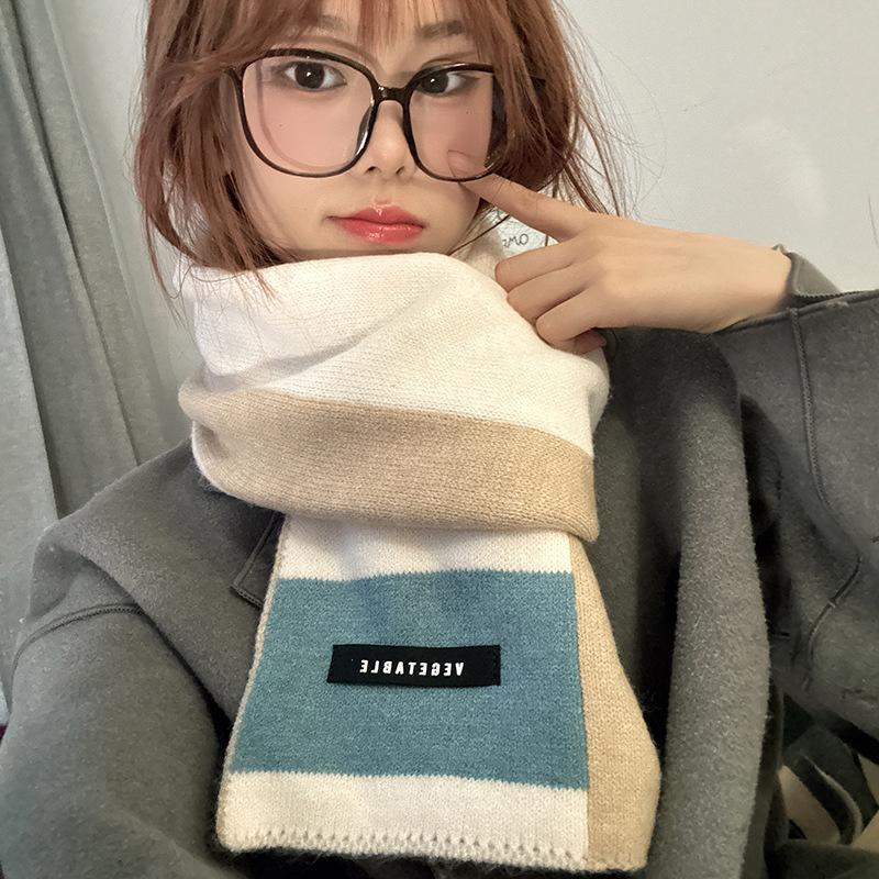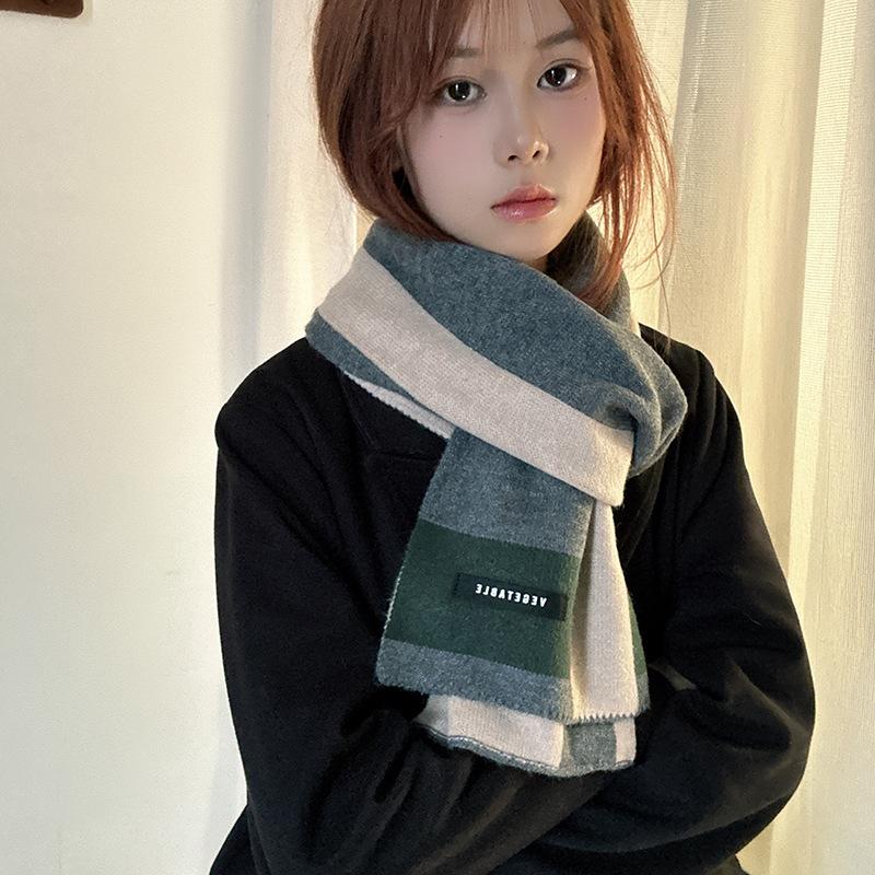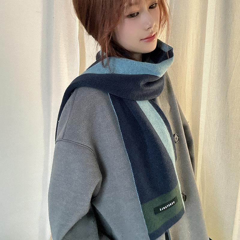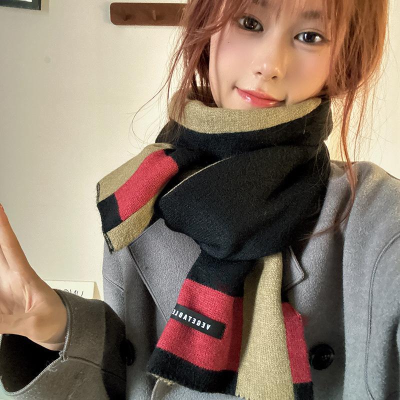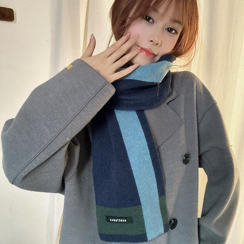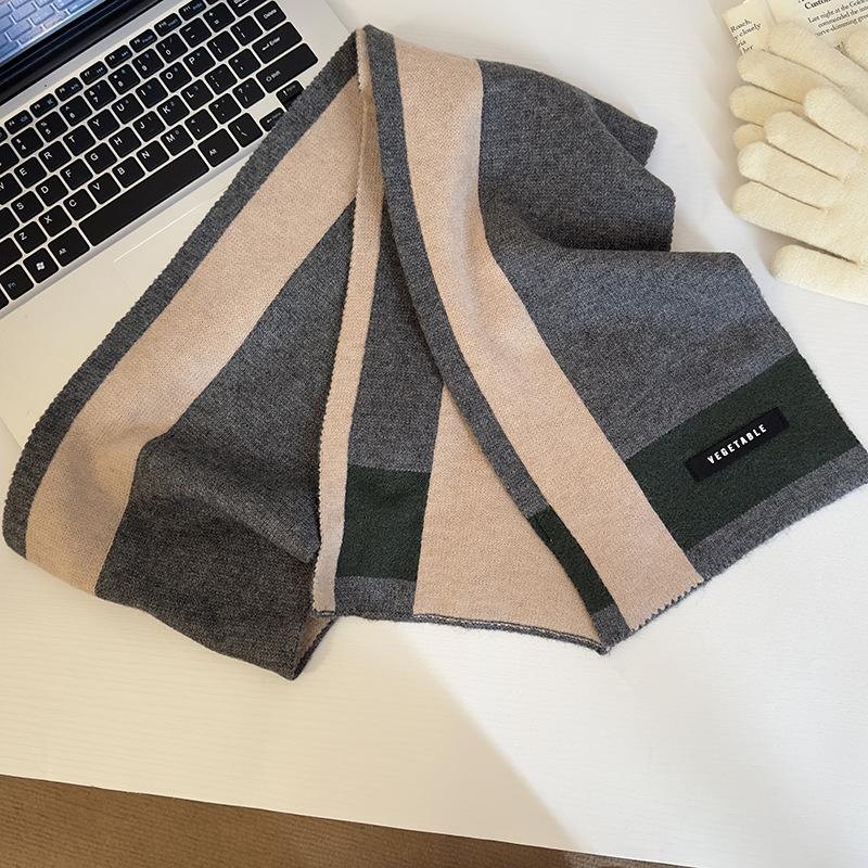 Bufanda de invierno con bloques de colores a cuadros para parejas, cálida, de lana tejida en contraste, de imitación de cachemira de alta calidad, estilo coreano para estudiantes.