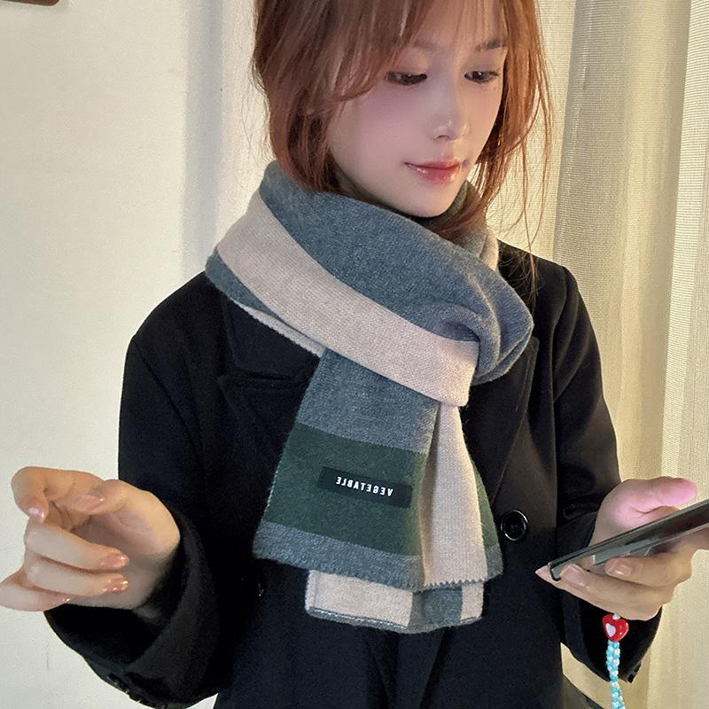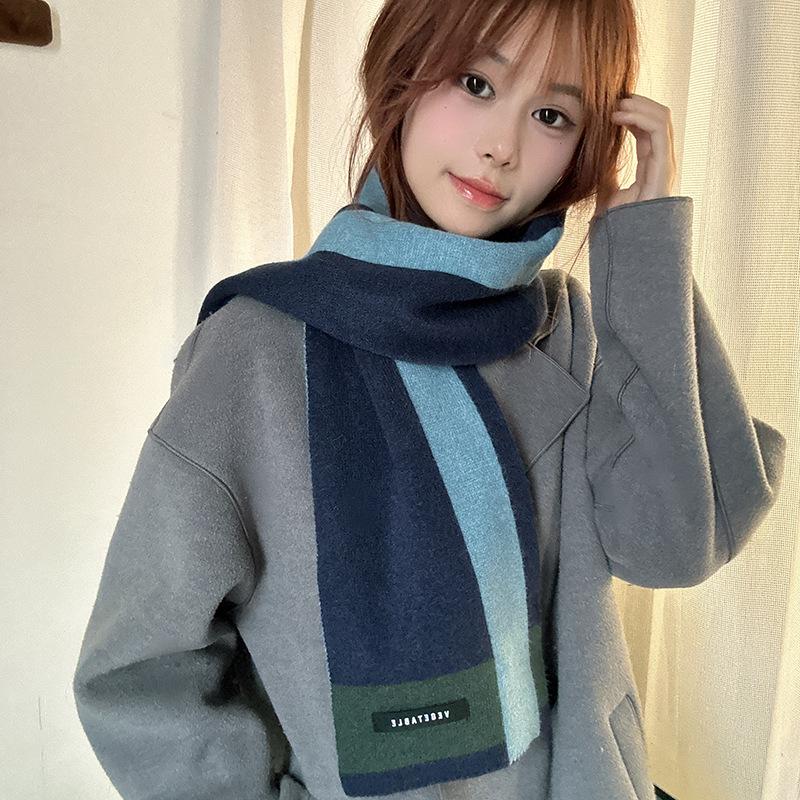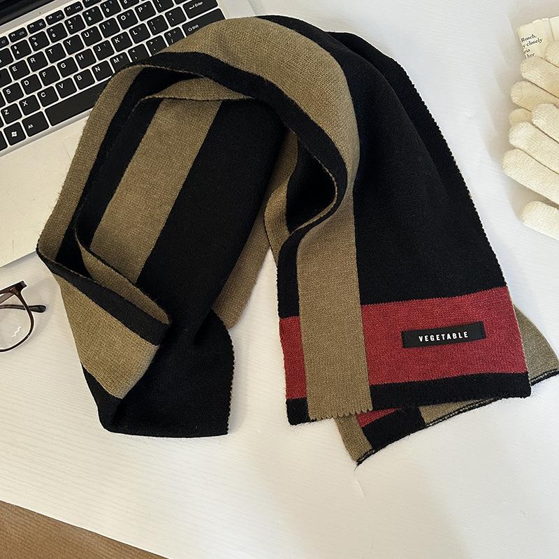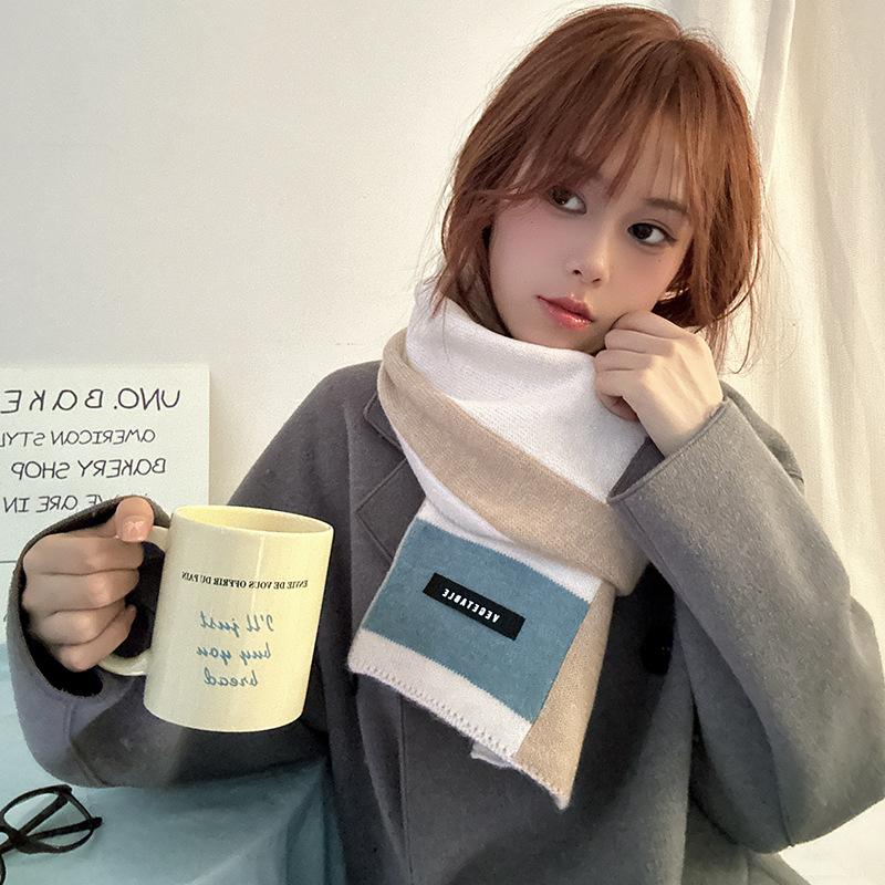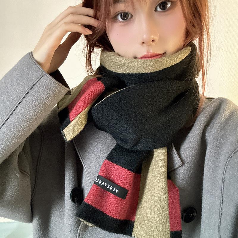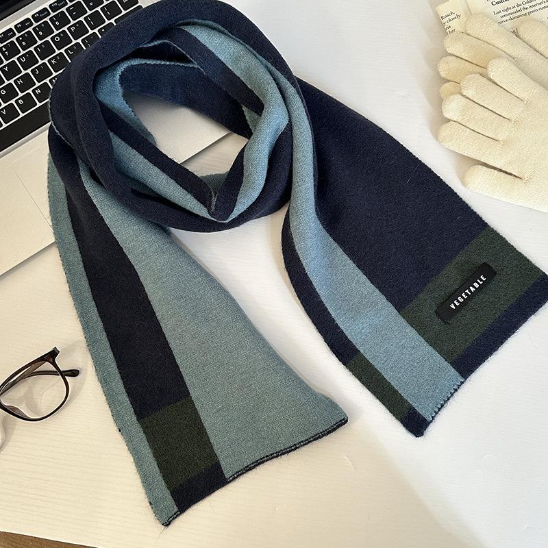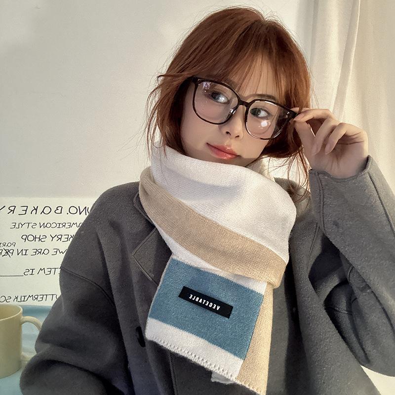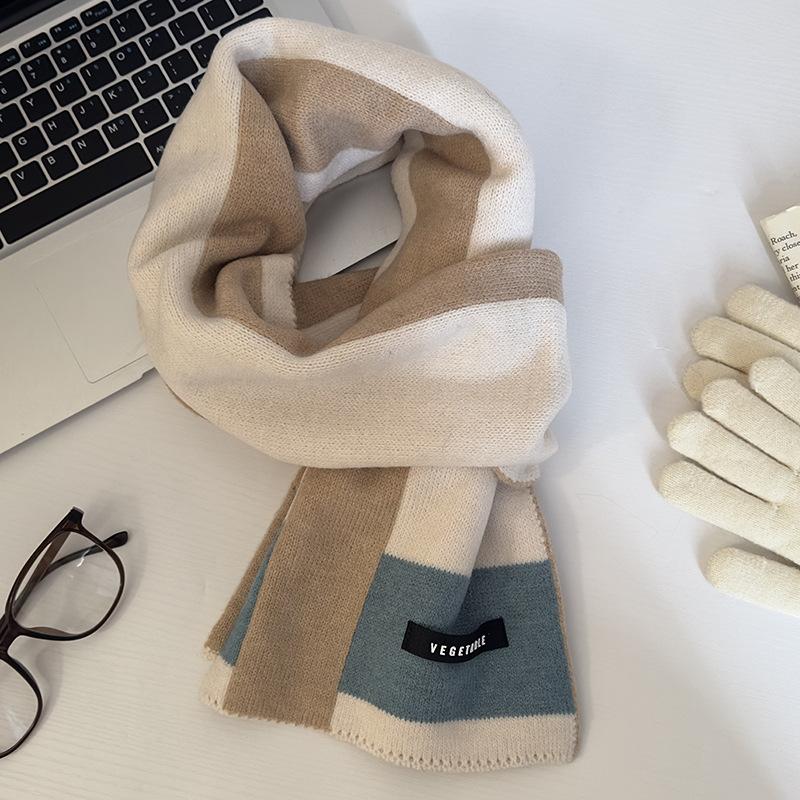 Bufanda de invierno con bloques de colores a cuadros para parejas, cálida, de lana tejida en contraste, de imitación de cachemira de alta calidad, estilo coreano para estudiantes.