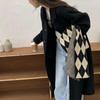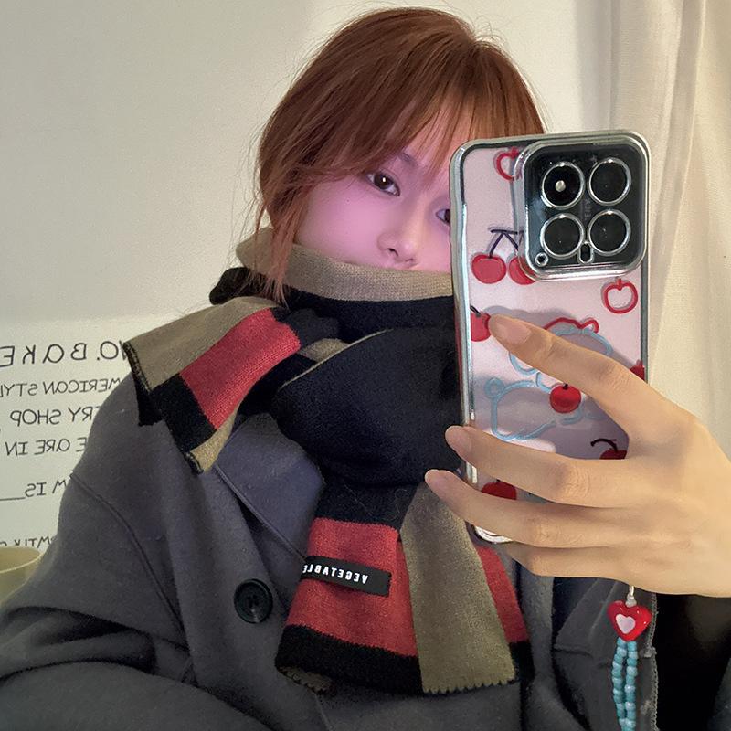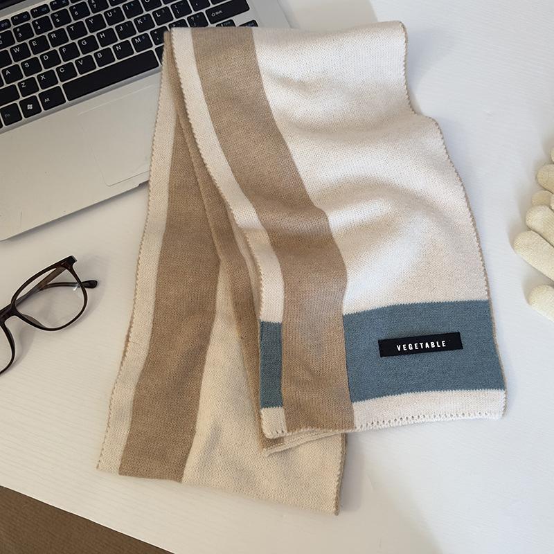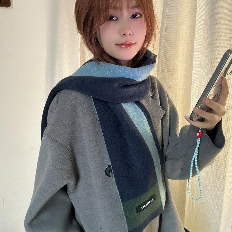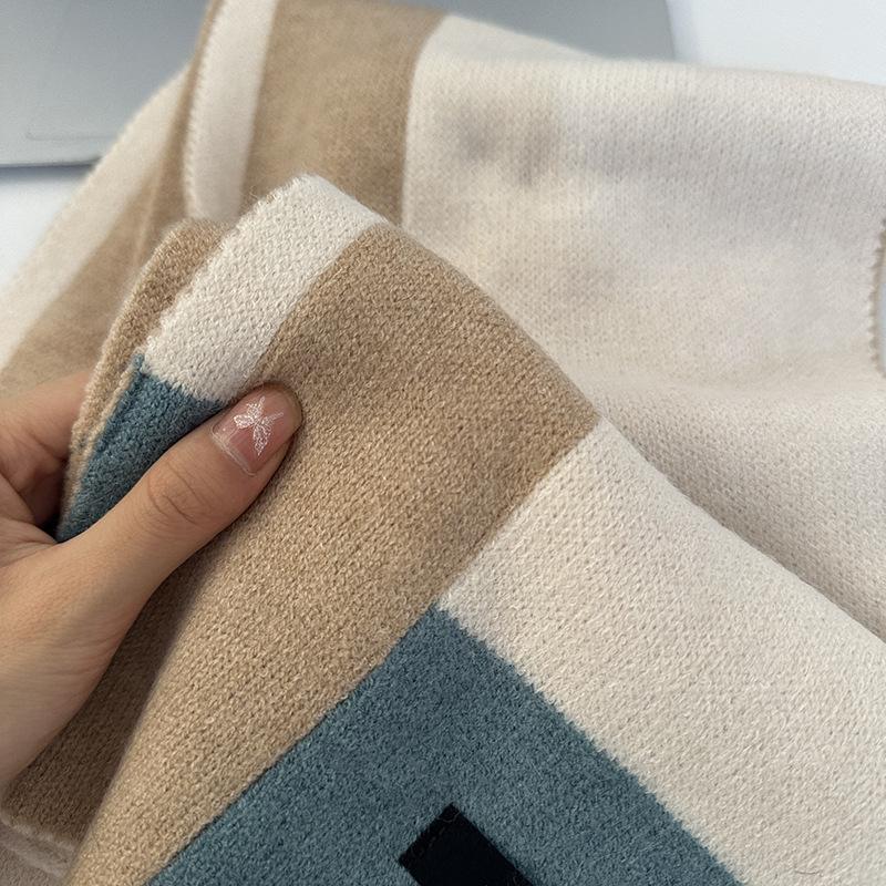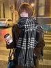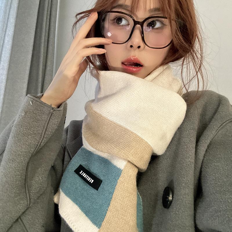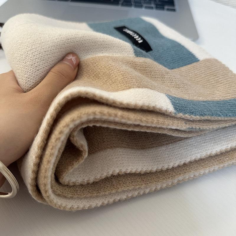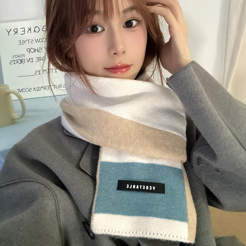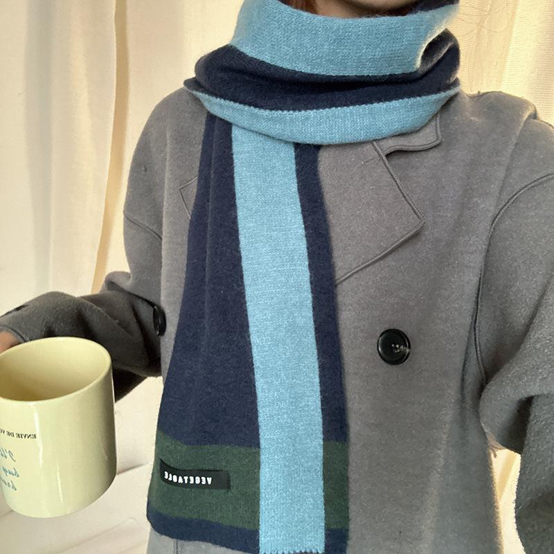 Bufanda de invierno con bloques de colores a cuadros para parejas, cálida, de lana tejida en contraste, de imitación de cachemira de alta calidad, estilo coreano para estudiantes.