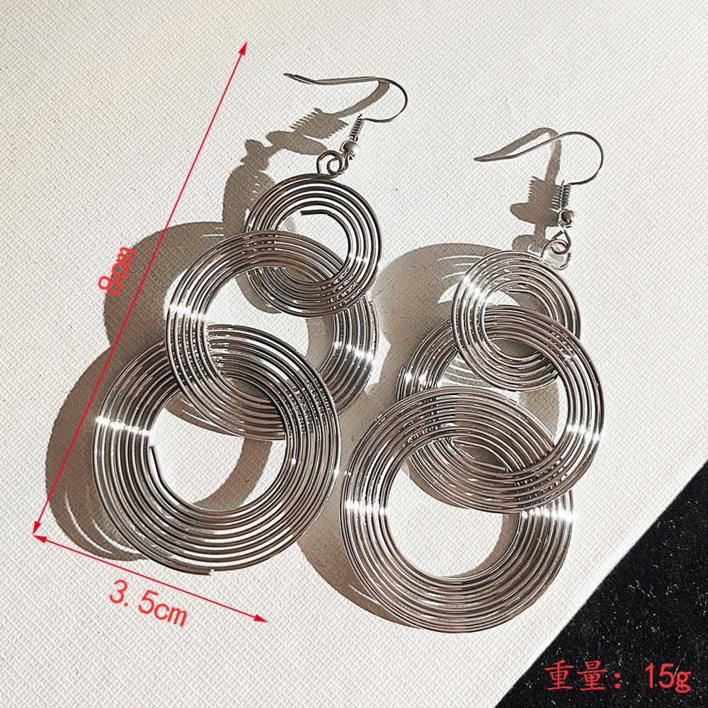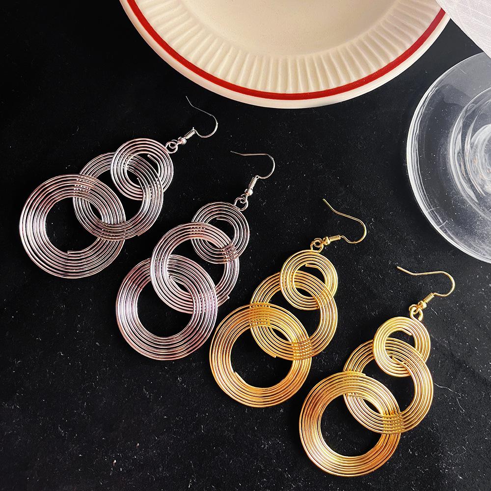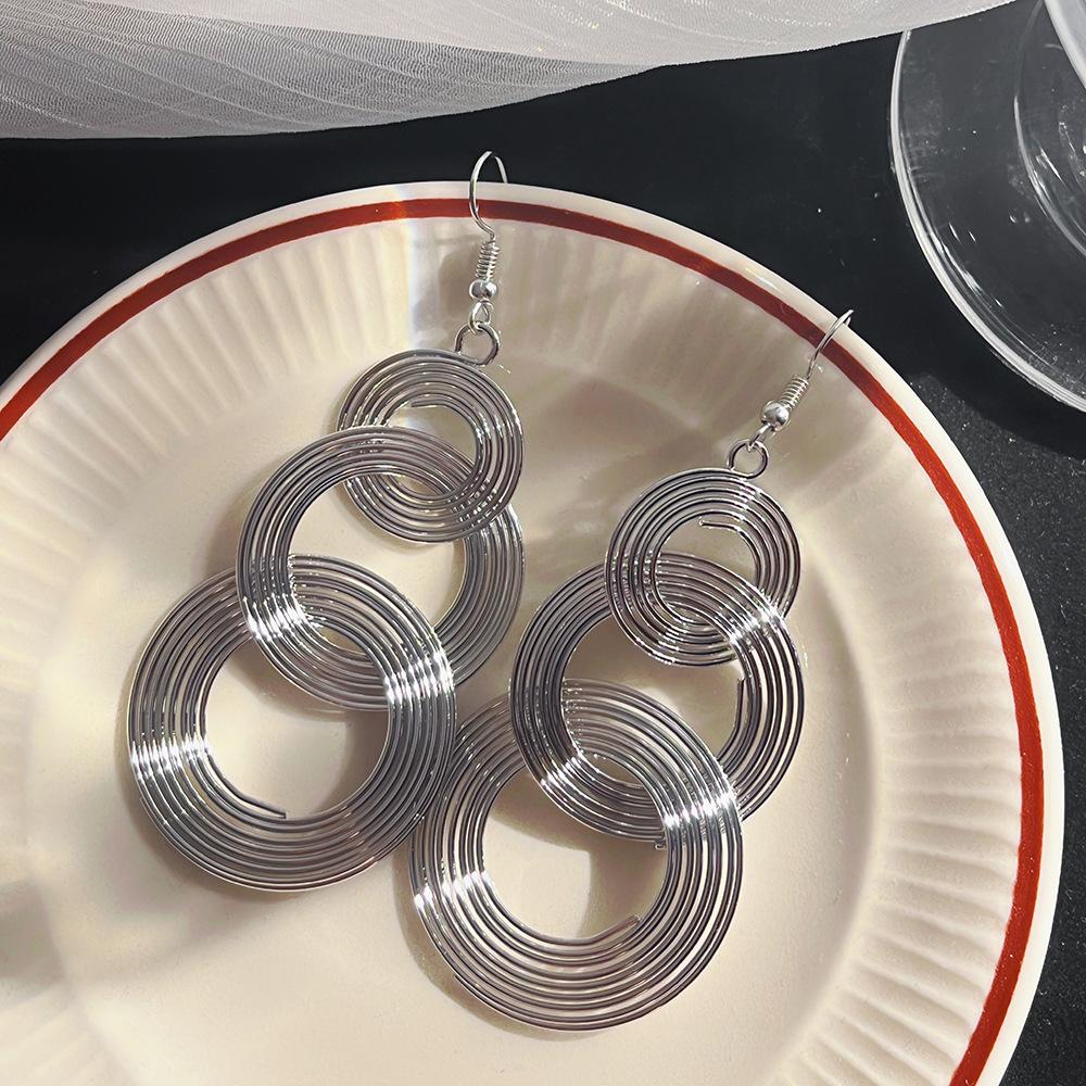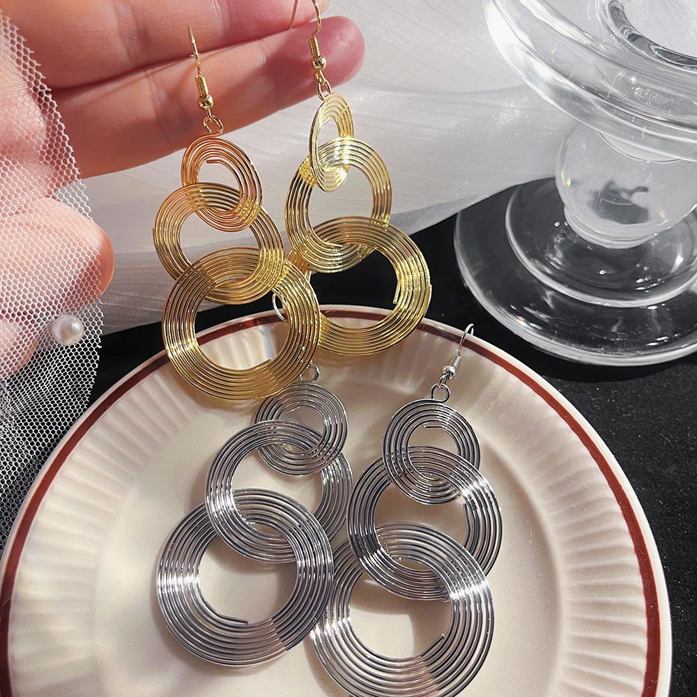 Pendientes redondos huecos de múltiples capas exagerados, pendientes largos y ligeros de lujo europeos y americanos, pendientes elegantes de celebridades con personalidad de nicho.