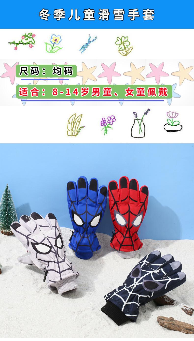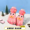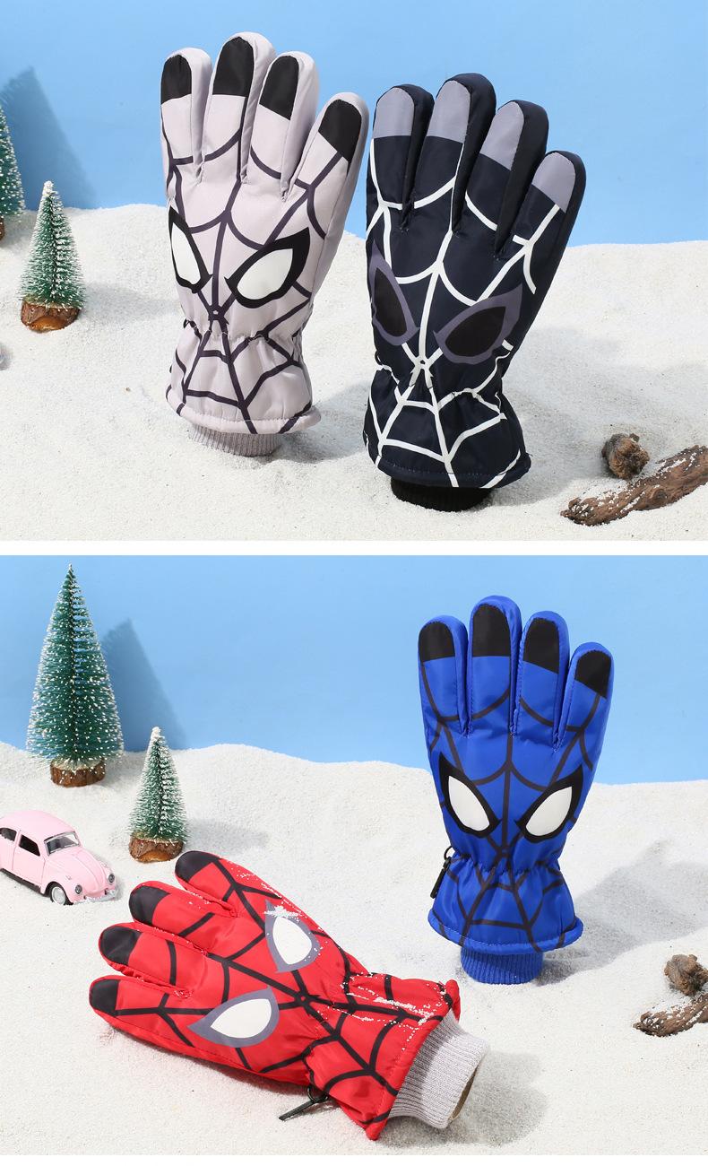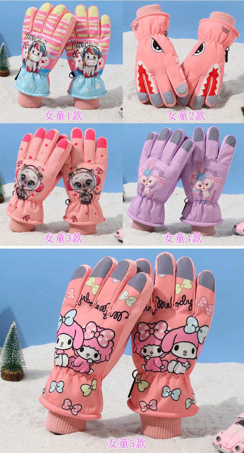 Guantes de esquí para niños, bonitos guantes de cinco dedos gruesos y cálidos de invierno con forro polar de dibujos animados para niños de talla mediana y grande, niños y niñas, para actividades al aire libre.