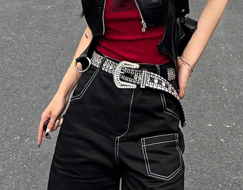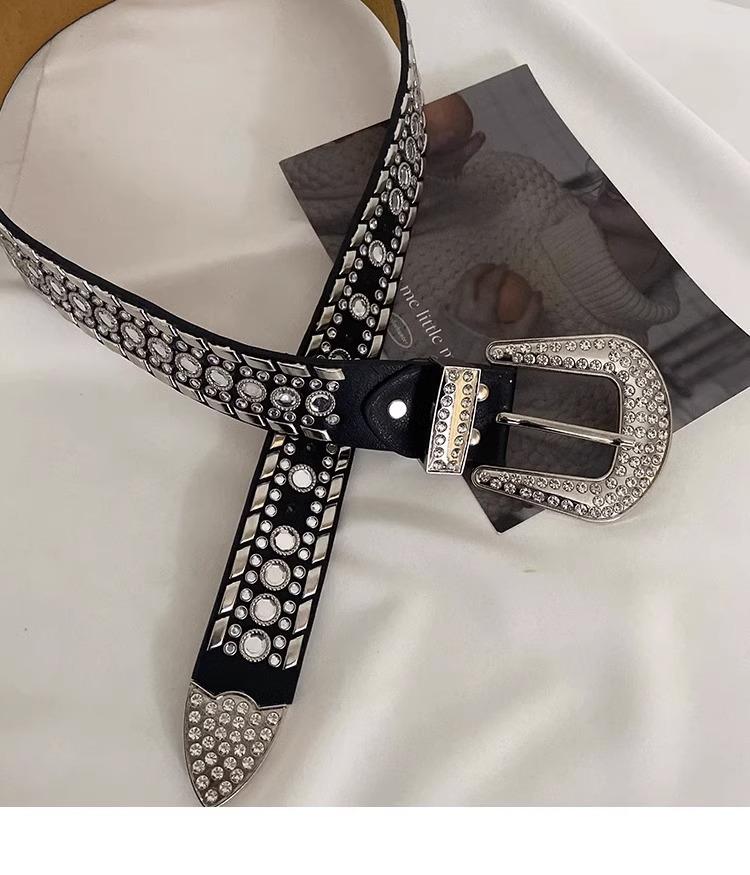 2025 Nueva Subcultura Harajuku Y2K Chica Hot Gótico Punk Diamante Oscuro Cinturón Brillante Diseño Nicho