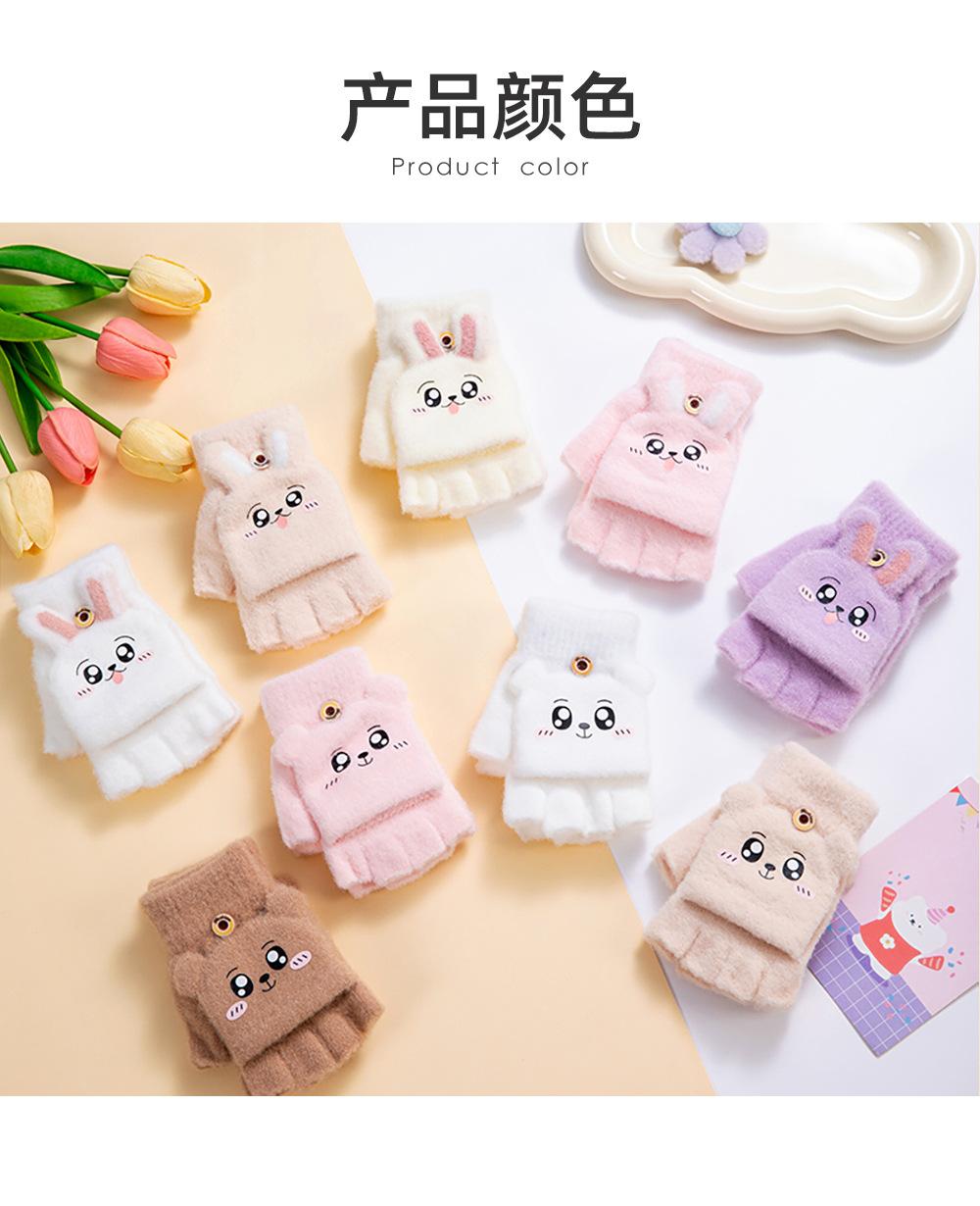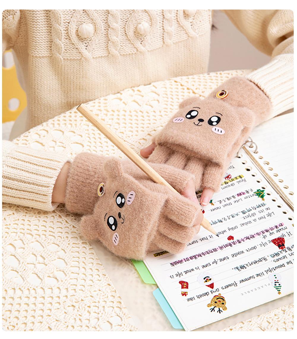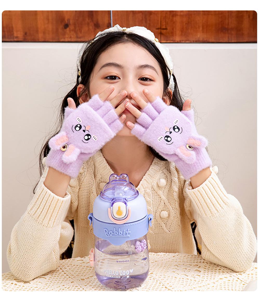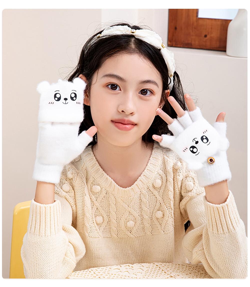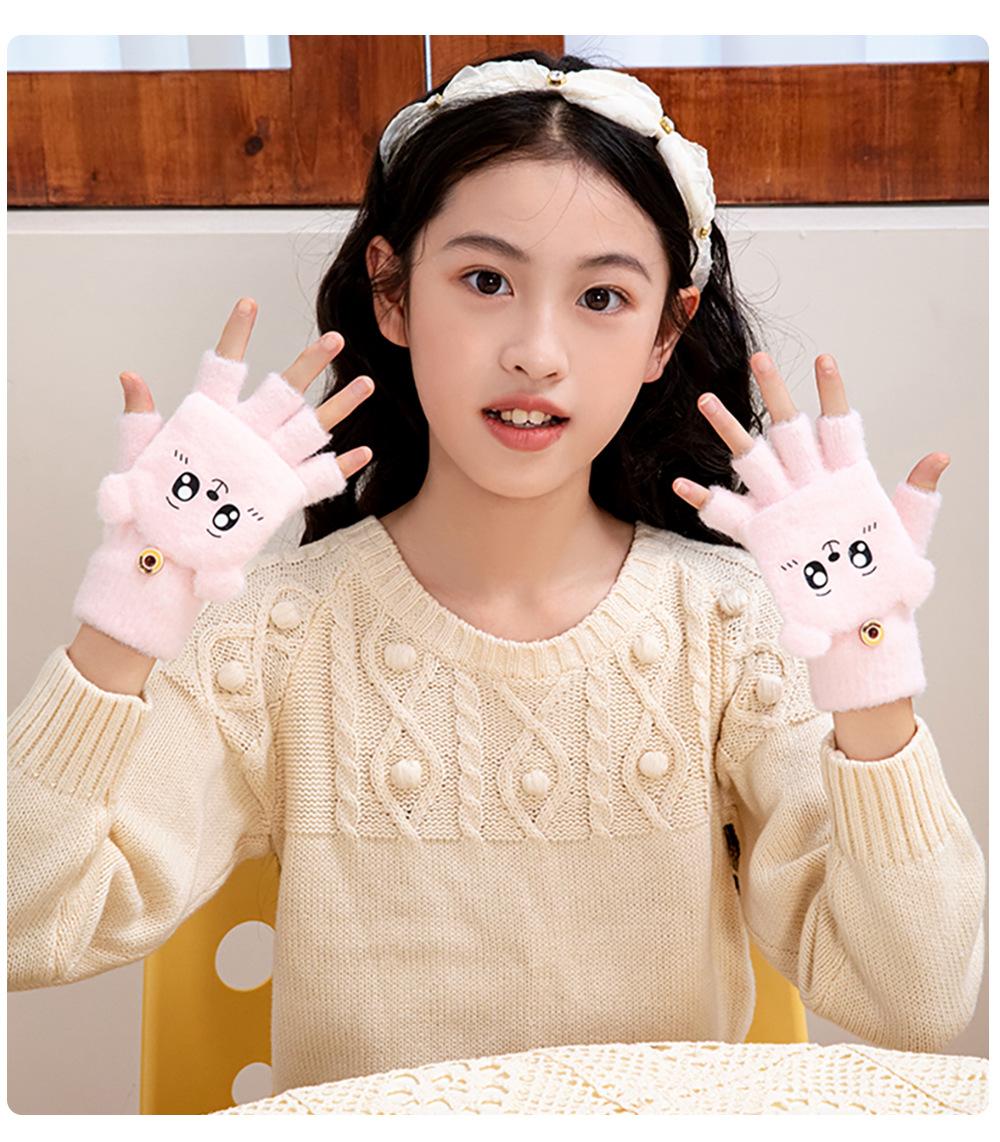 Guantes infantiles de otoño e invierno para niñas y bebés, bonitos, cálidos y gruesos, con cinco dedos abatibles para niños y estudiantes con medio dedo.