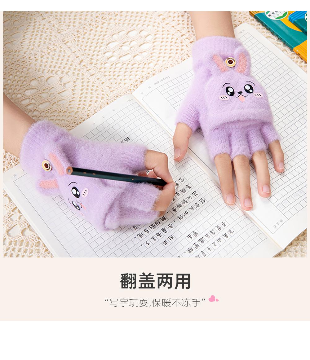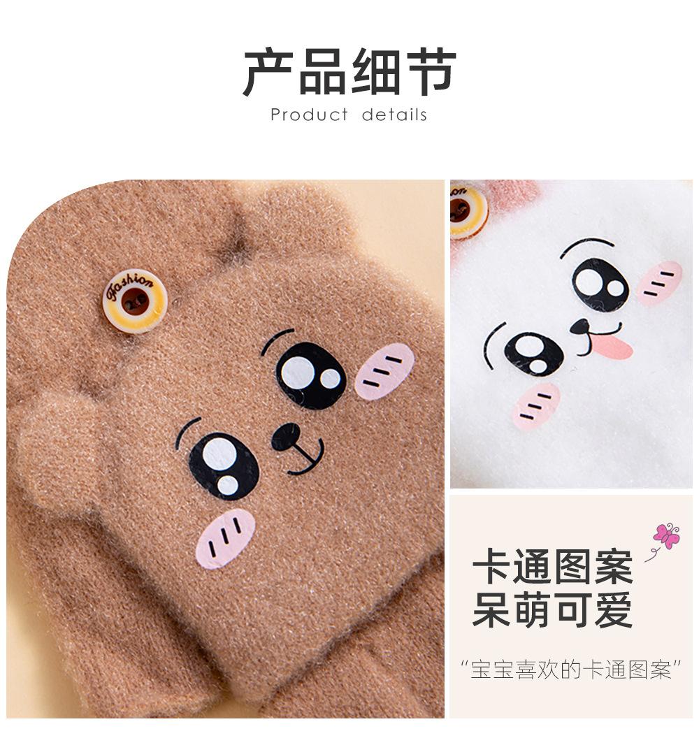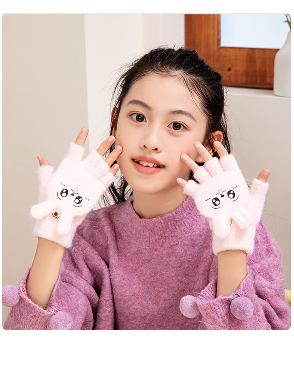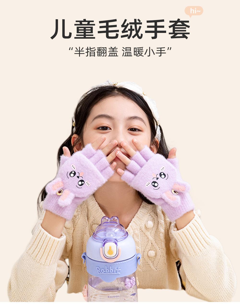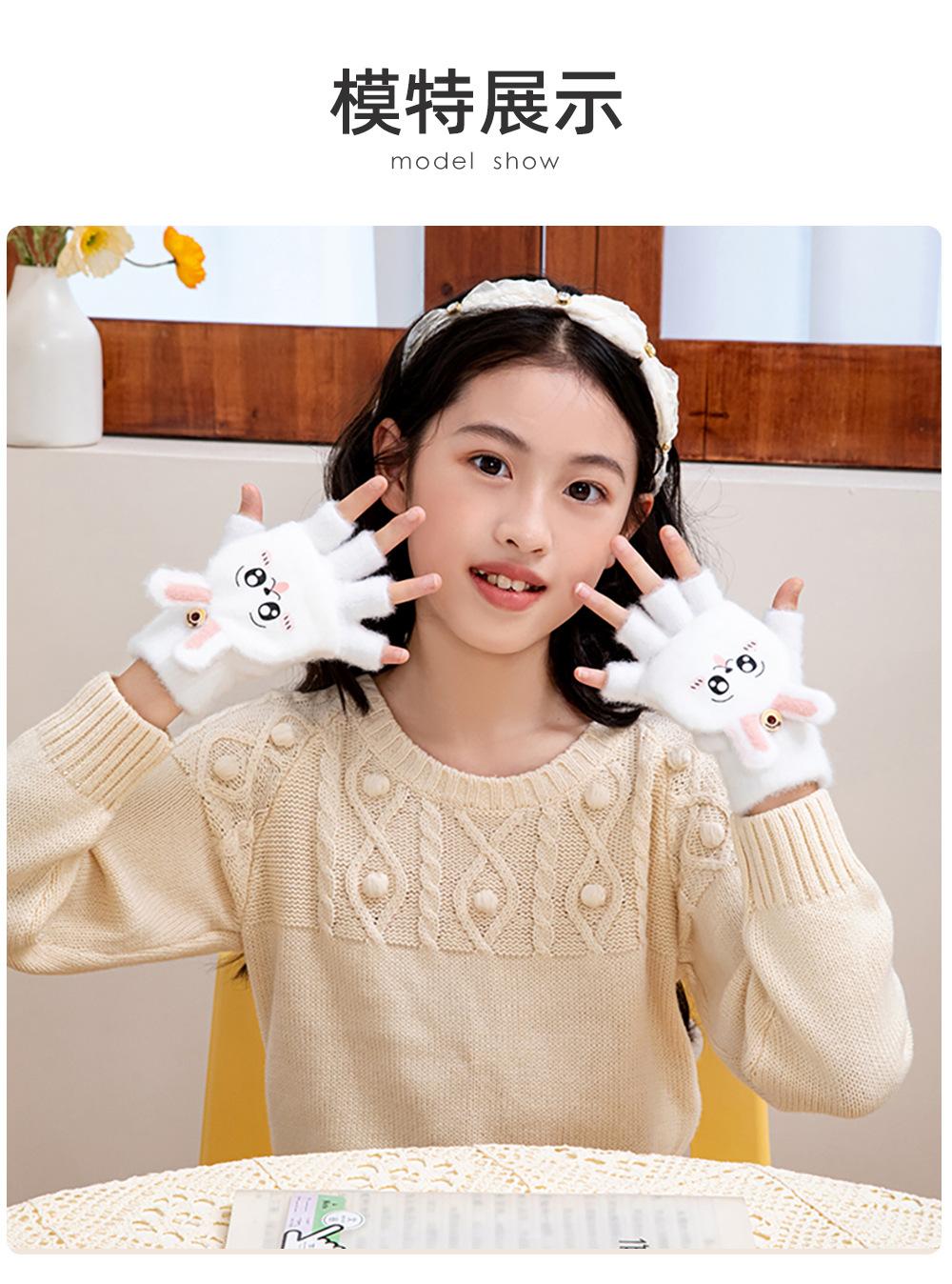 Guantes infantiles de otoño e invierno para niñas y bebés, bonitos, cálidos y gruesos, con cinco dedos abatibles para niños y estudiantes con medio dedo.