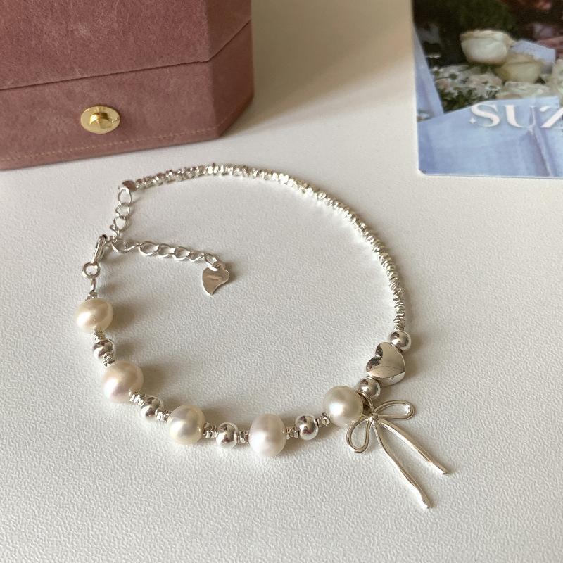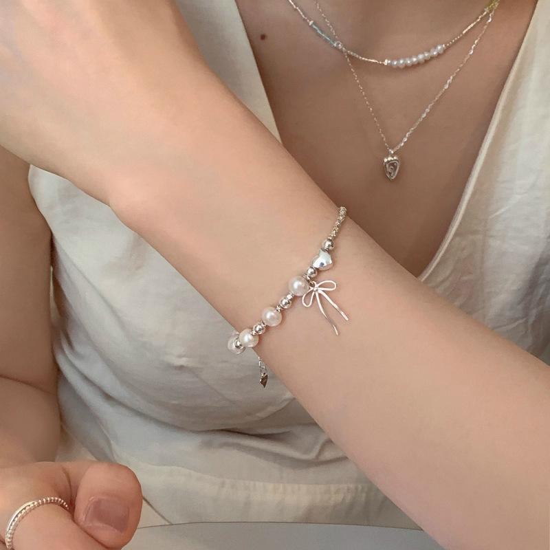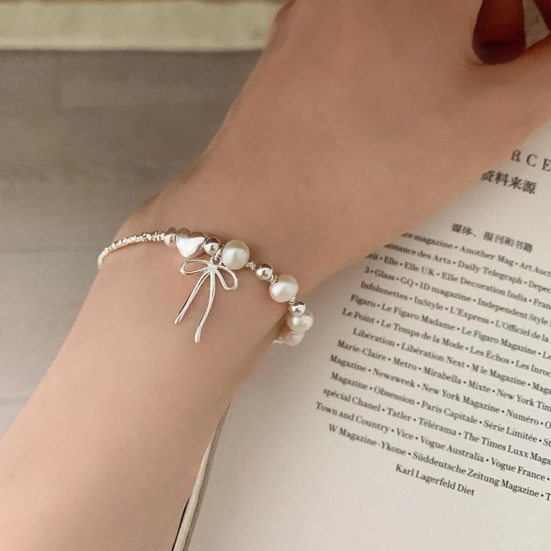 Plata Rota Nueva Llegada Lazo Puntada Perla Pulsera para Mujer Diseño Nicho Ins Simple Dulce Pulsera Combinable